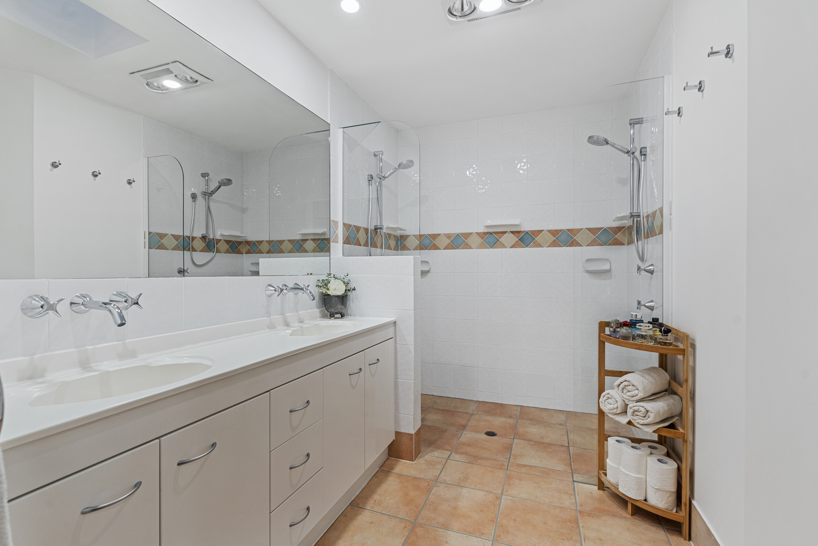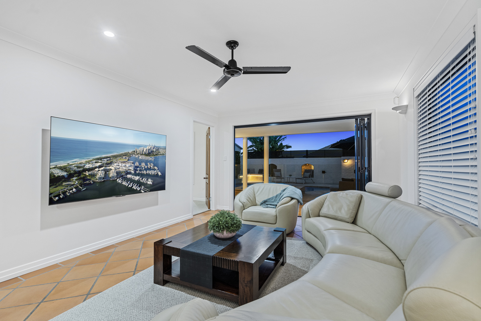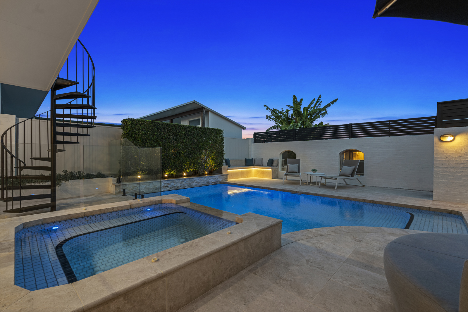 Upon entering, you are welcomed by an alfresco entrance reminiscent of a Spanish villa. The entrance level includes two bedrooms, a large bathroom with a corner bath, and a large rumpus area overlooking the fully tiled resort-style pool, and spa area. The outdoor area at 160 Carlton Terrace is truly spectacular, offering a serene retreat for relaxation and social gatherings.