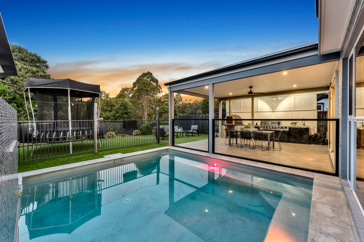 The backyard is a private oasis, with a good-sized block allowing ample space for kids to play or for hosting outdoor parties. The refreshing pool provides a respite from the summer heat and a focal point for relaxation and enjoyment.