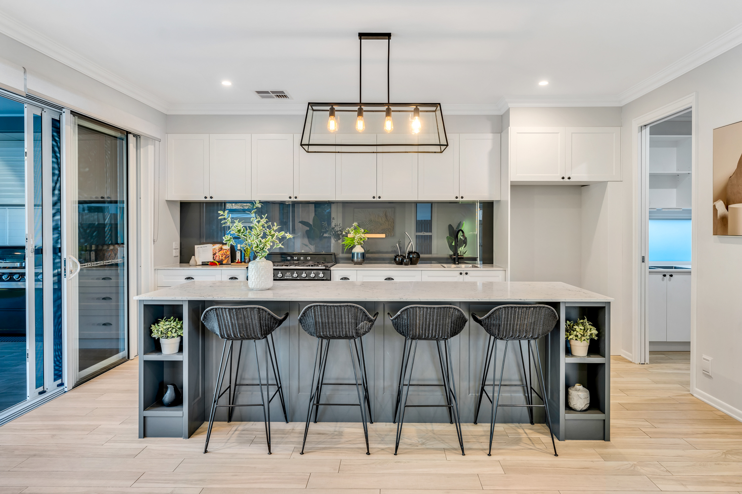 The kitchen itself is a chef’s delight, featuring top-of-the-line appliances and an expansive island for meal preparation. And what’s more, the outdoor kitchen is a delightful surprise, complete with a pizza oven, offering the perfect opportunity to savour delicious alfresco meals while overlooking the beautiful bush outlook.