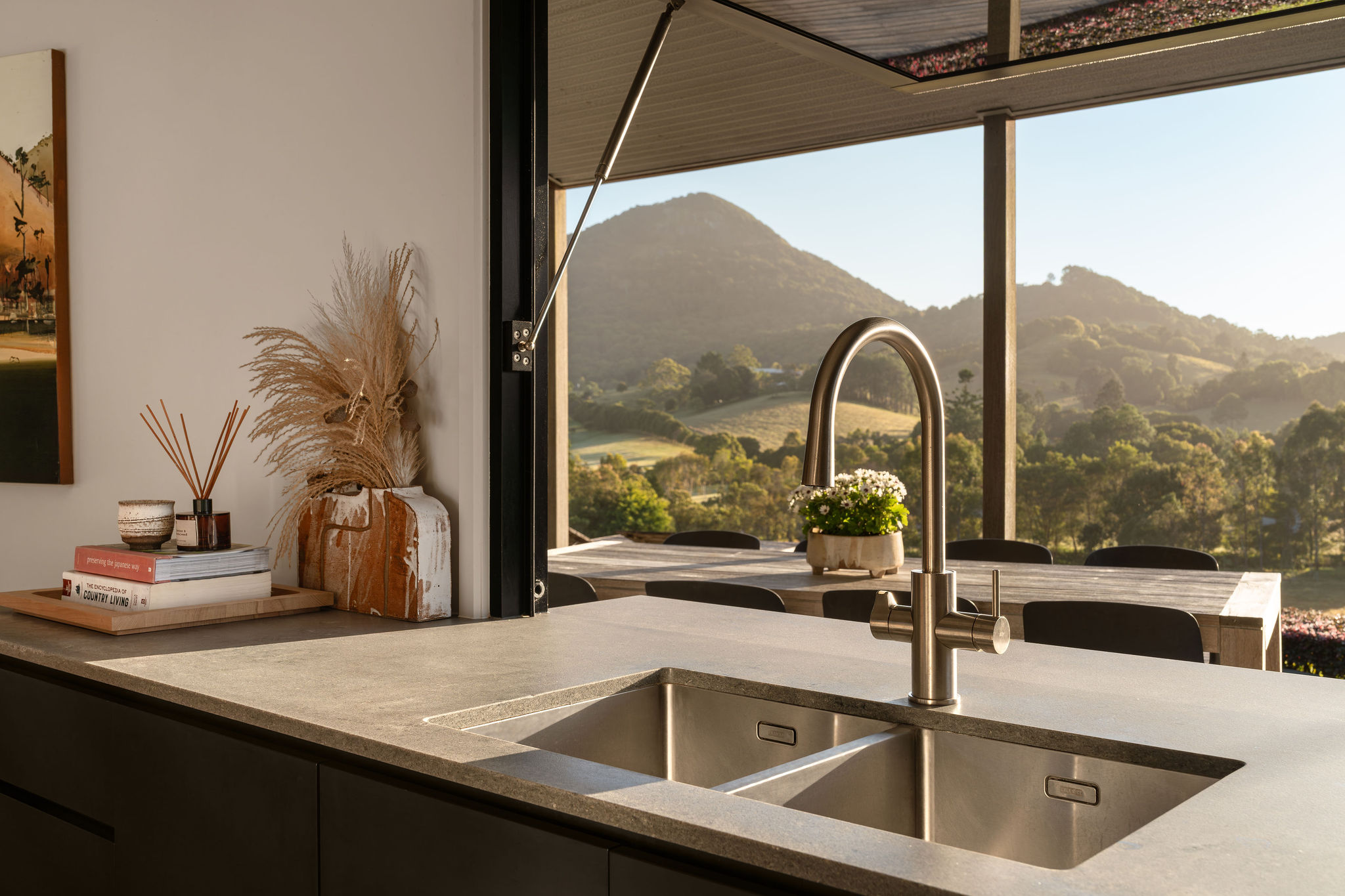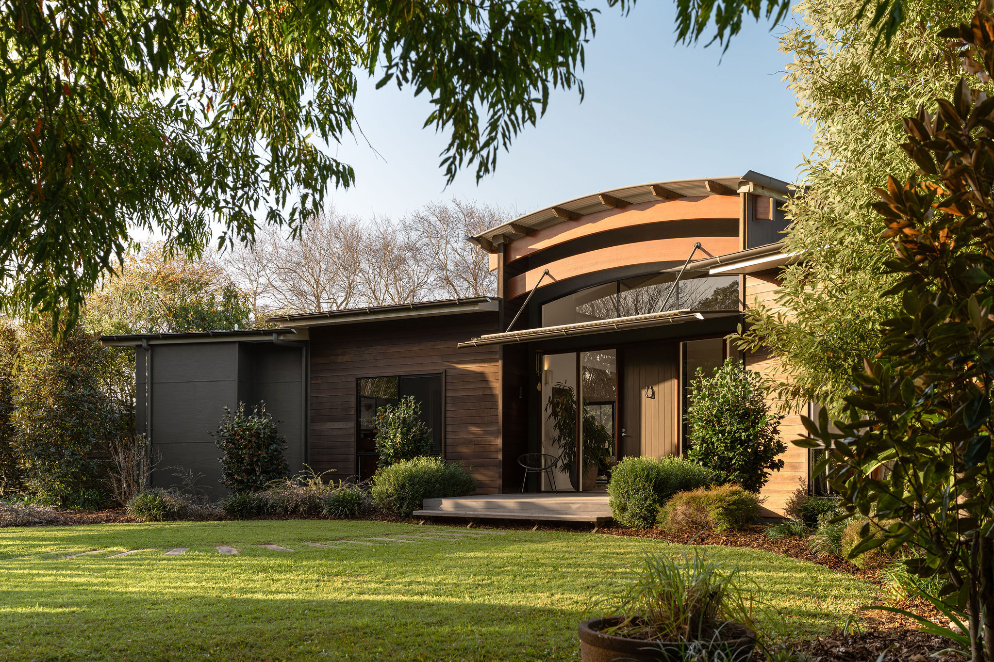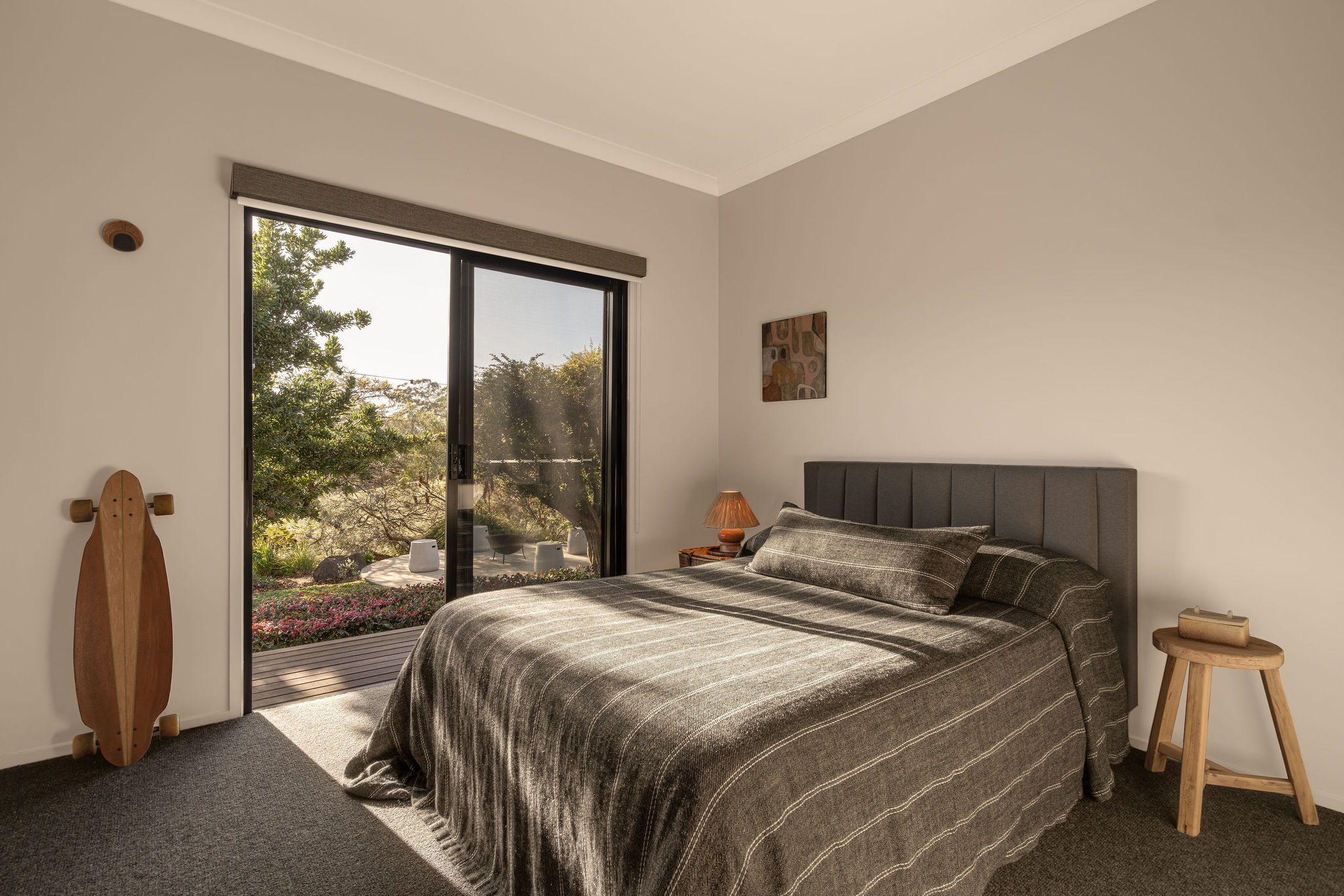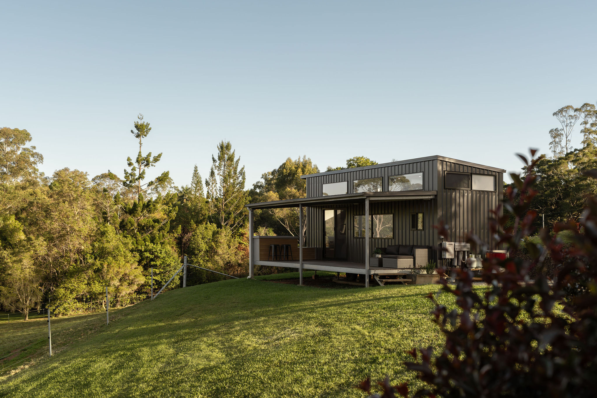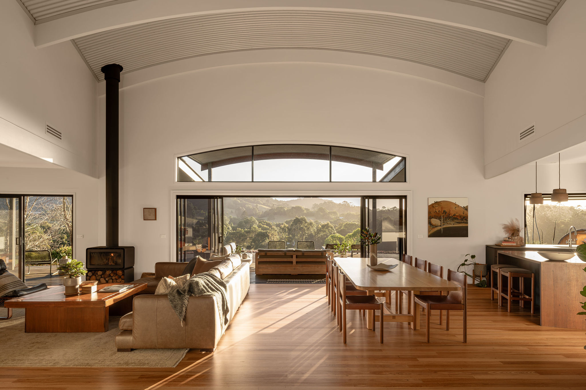 At its heart is a beautifully appointed four-bedroom architecturally designed home. Inspired by modern barn architecture and mid-century curves, this lightweight design is site and climate responsive. Constructed from steel, iron and timber and finished with solid blackbutt flooring, the home exudes warmth and craftsmanship. Recent renovations have endowed the main residence with freshness and refinement.