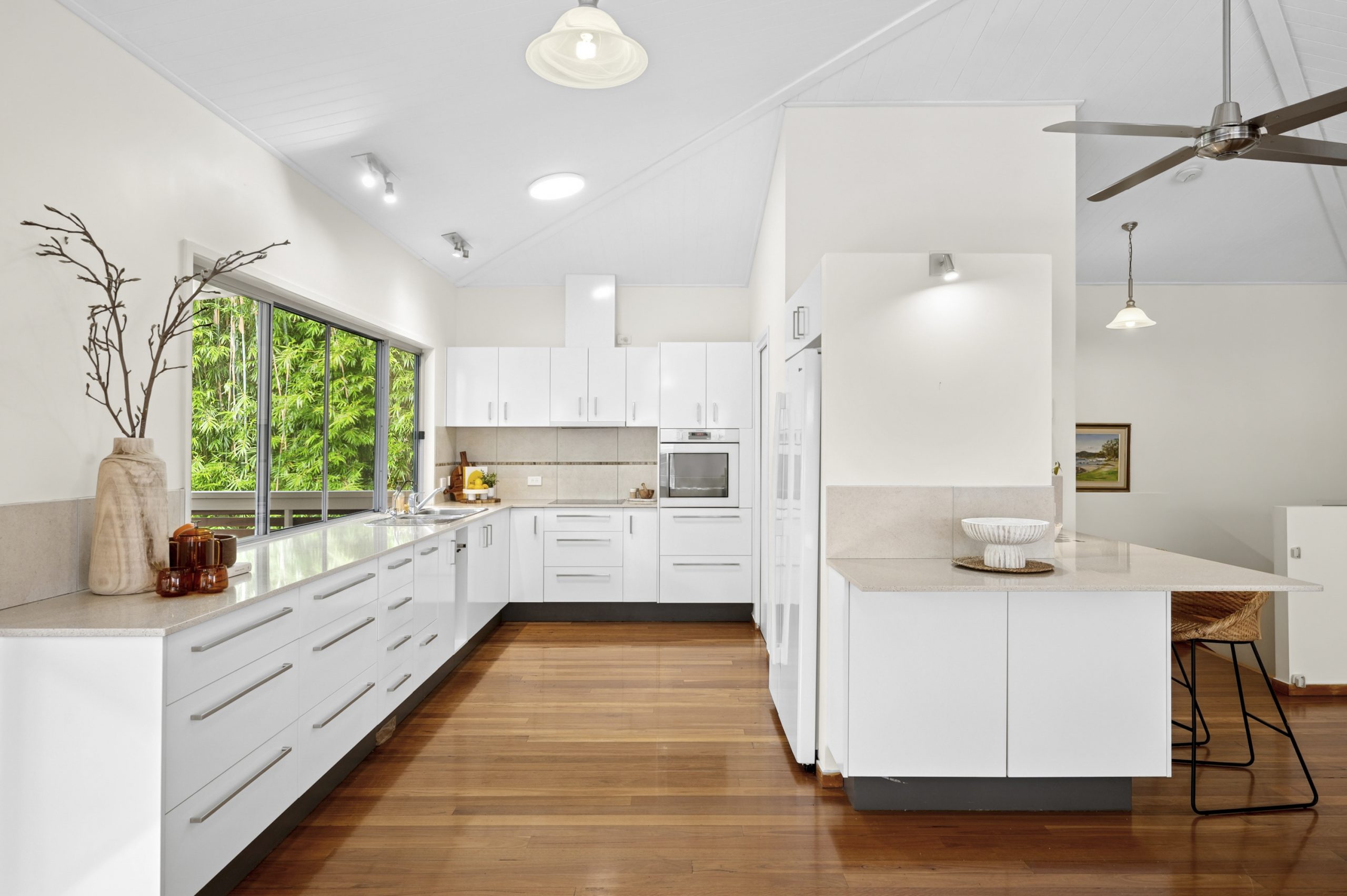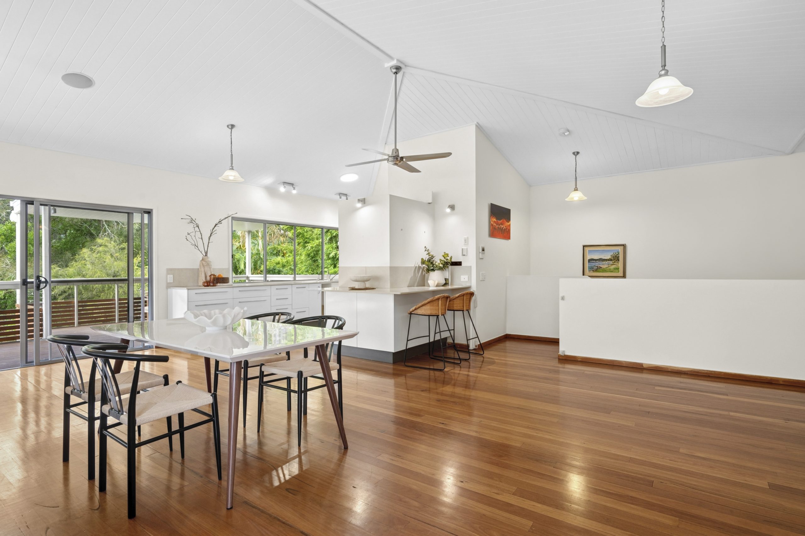 Soaring high ceilings and solid timber flooring throughout give this amazingly well maintained home appeal to a broad range of potential new owners. The open plan living and dining area blends seamlessly to a wonderful entertaining deck and the modern kitchen is complete with stone benchtops, walk in pantry and a multitude of storage options.