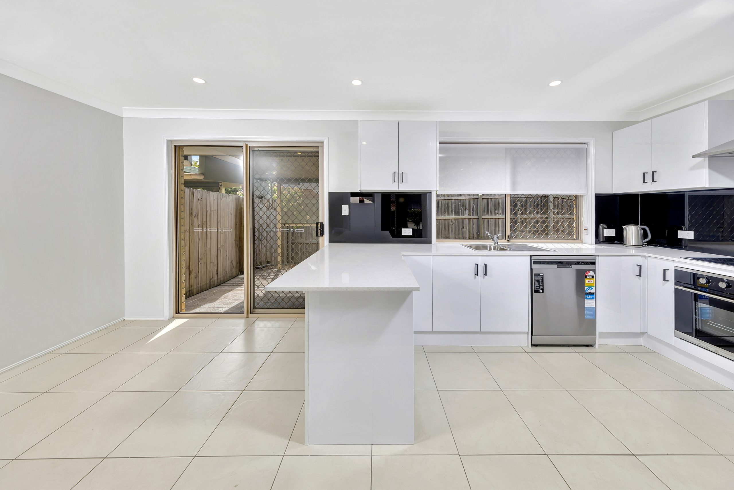 The large open living room leads into a modern kitchen and dining area flowing seamlessly into a private alfresco and low maintenance yard.