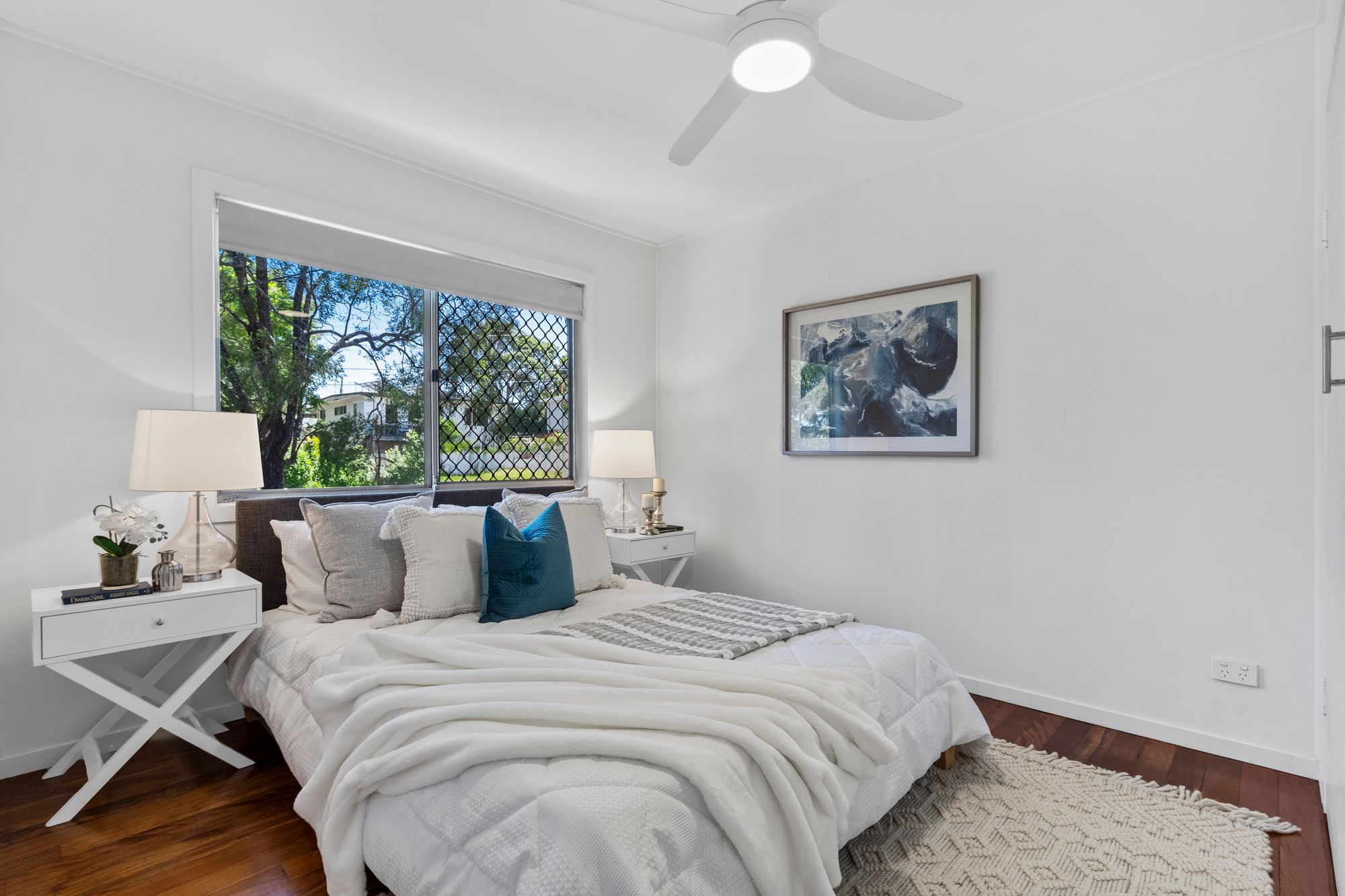 – Bedrooms & Bath: Three sizeable bedrooms with ceiling fans; serviced by a freshly renovated bathroom with modern tiling and a sleek shower cubicle.