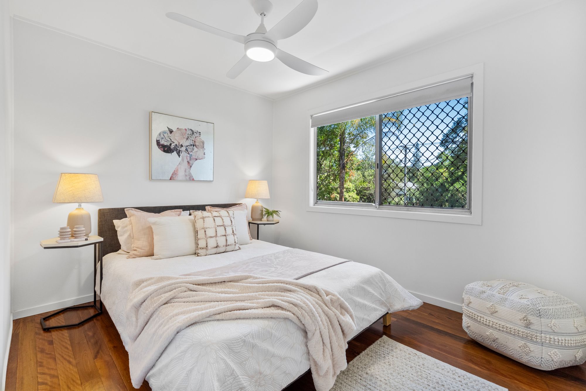 – Sizeable Bedrooms: Two bedrooms featuring ceiling fans and built-in robes with mirrored sliding doors.