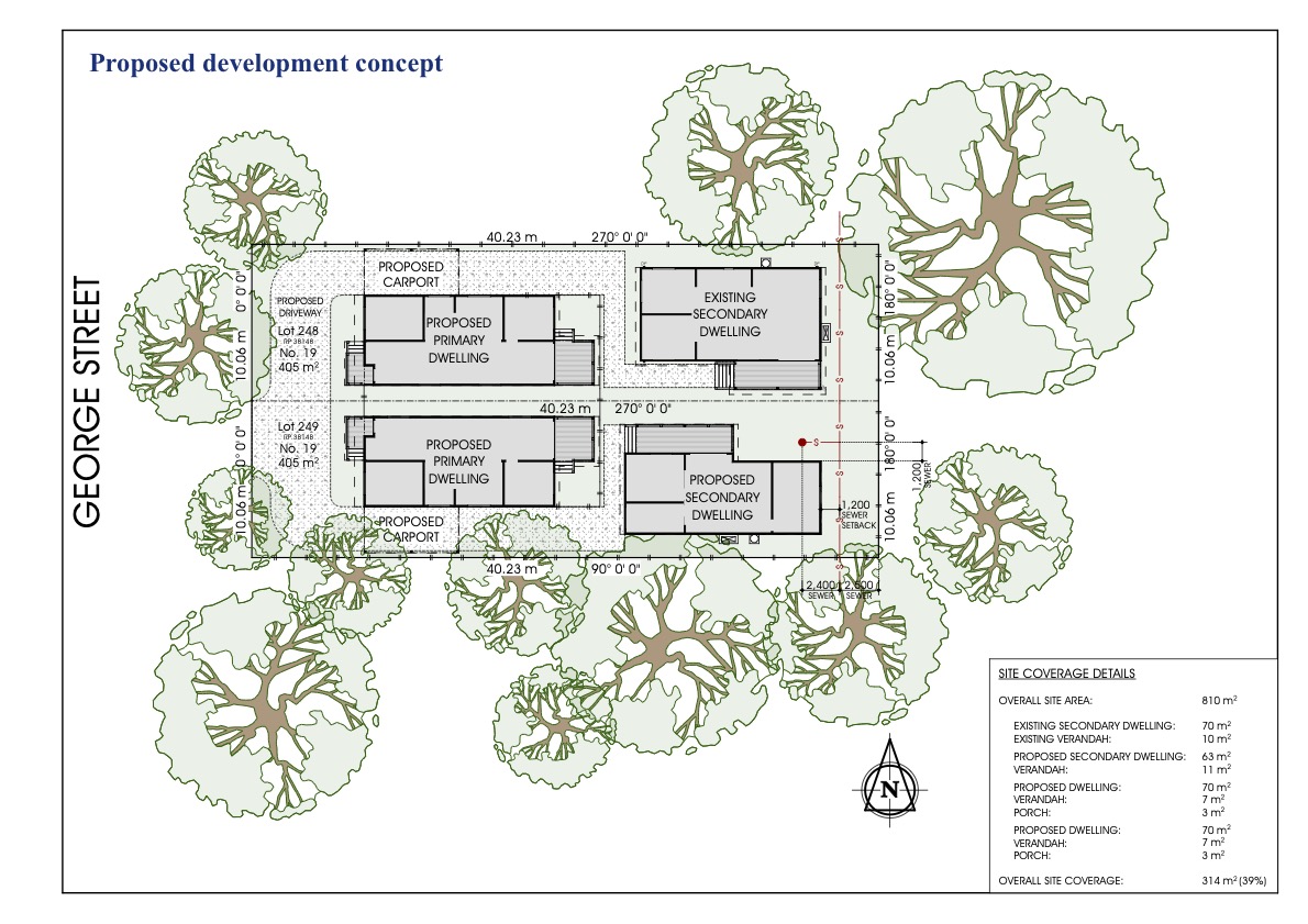 Option 2: Subdivide and further develop by adding additional dwellings to each lot (e.g., front house + rear granny flat on both) to quadruple your income potential.