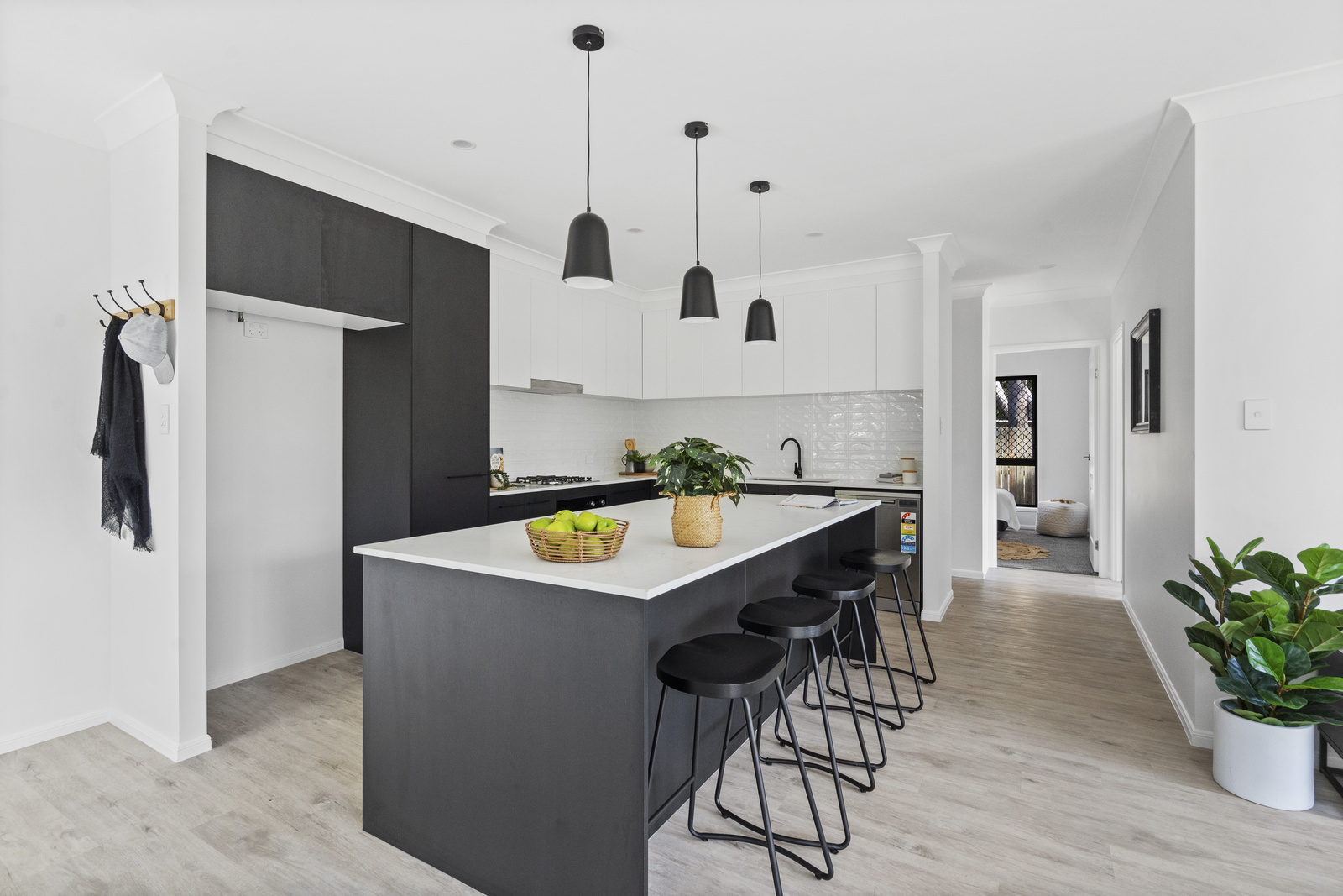 • Central kitchen with stunning stone benchtops, gas cooking, high quality appliances & heaps of cupboard space