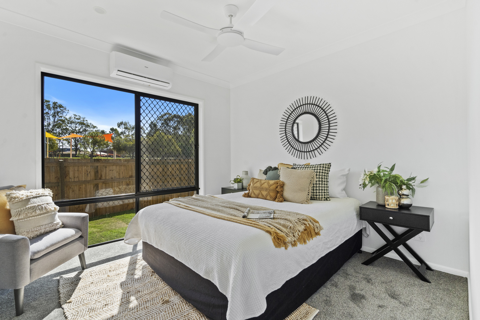 • Master bedroom with ensuite featuring an oversized shower, plus WIR (with built-in shelving) & air conditioning