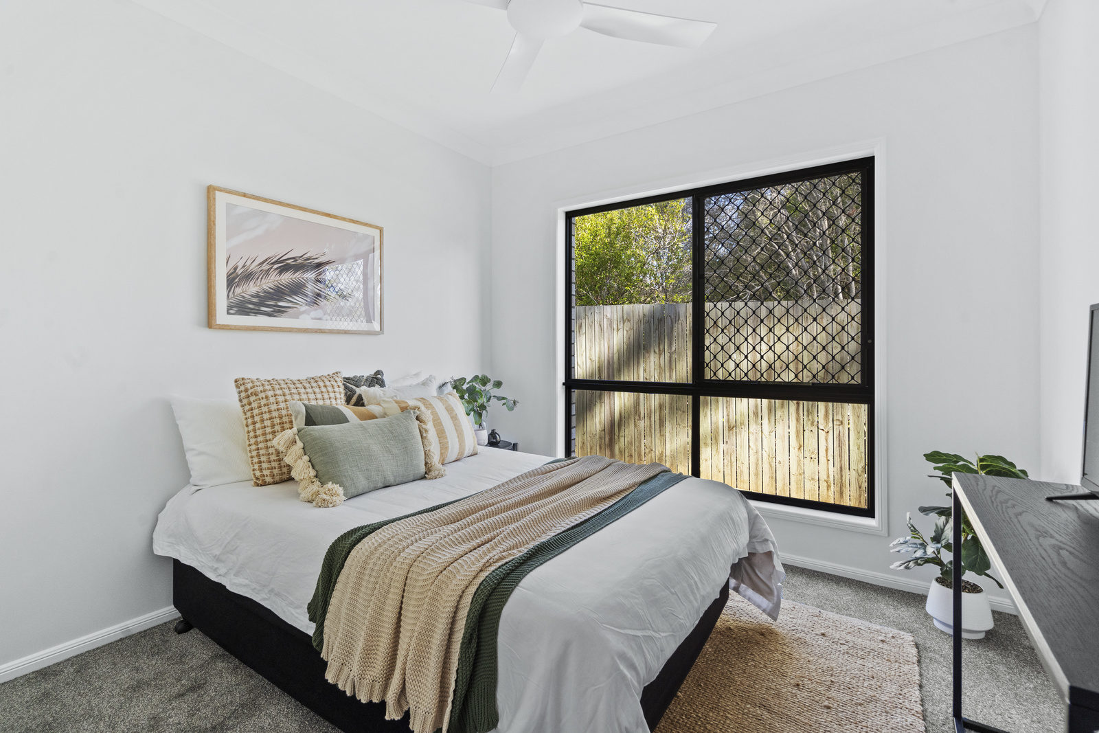 • Two additional good-size carpeted bedrooms, both with BIRs & ceiling fans