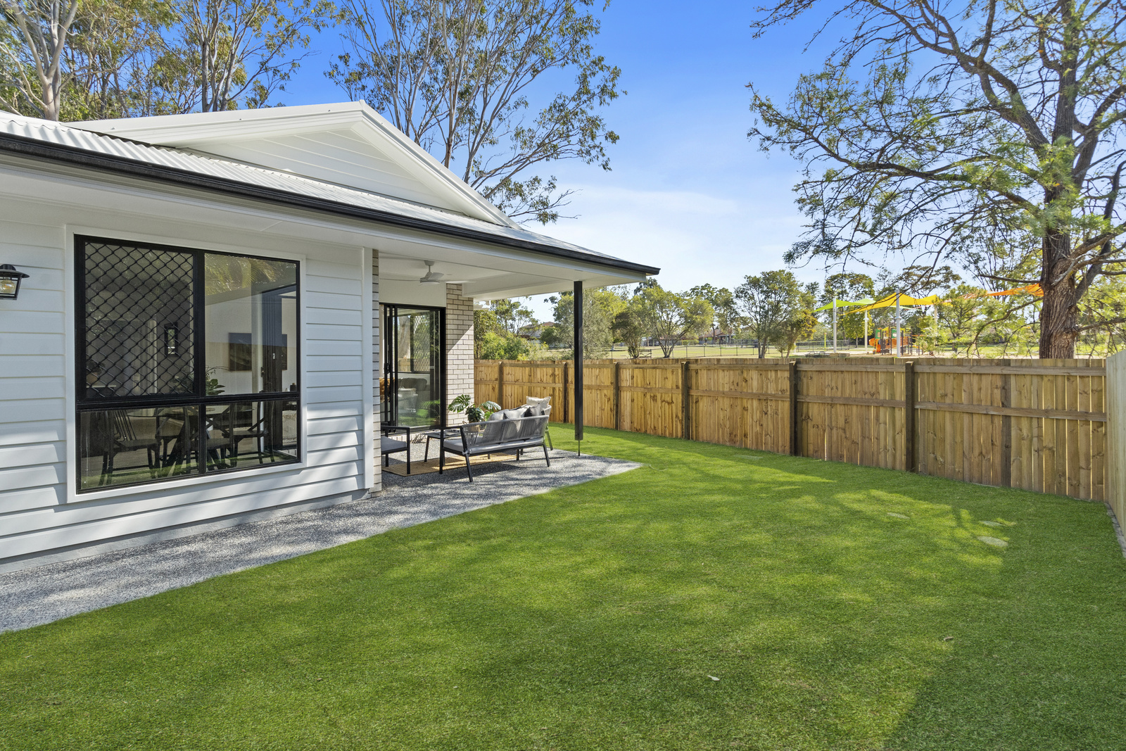 • Outdoor alfresco entertaining space overlooking private backyard & parklands