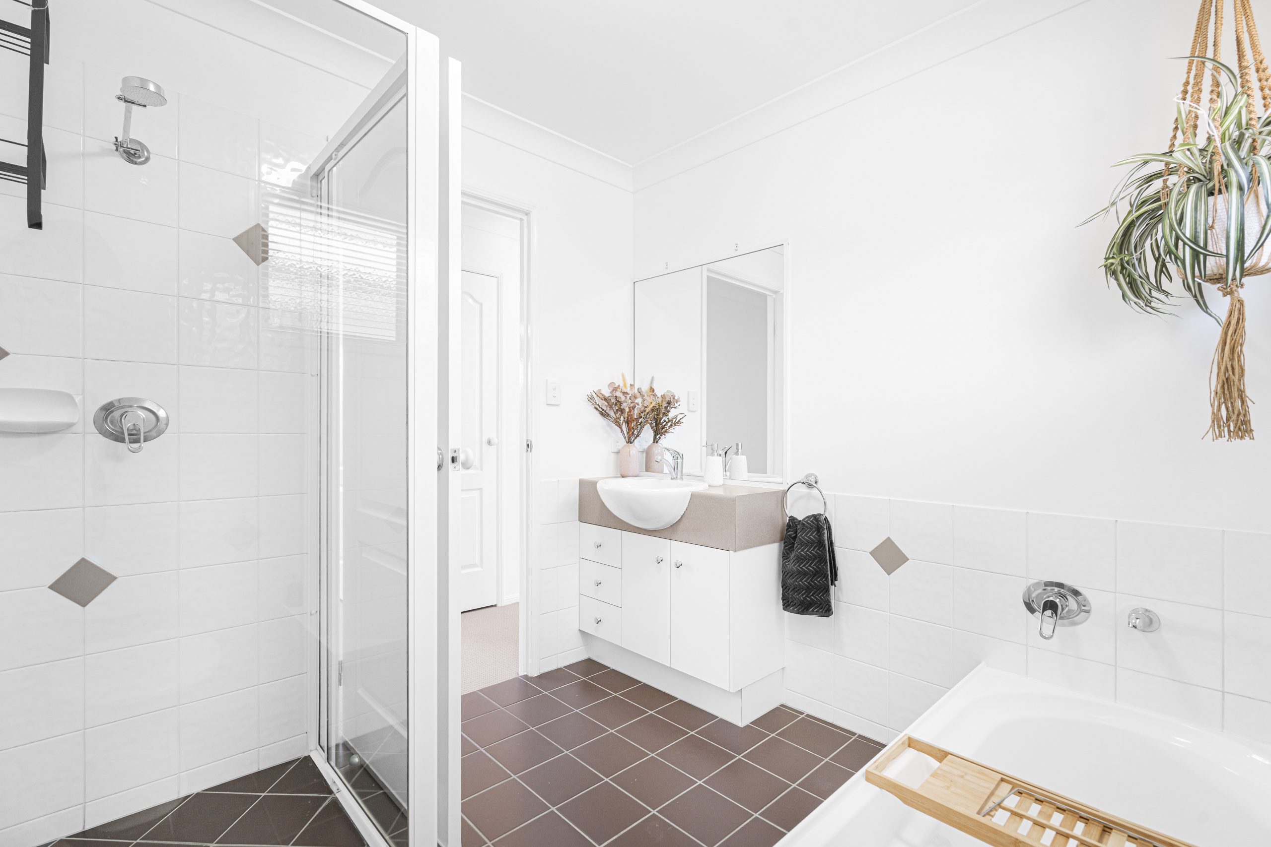 – Spacious family bathroom with a separate bath and shower.