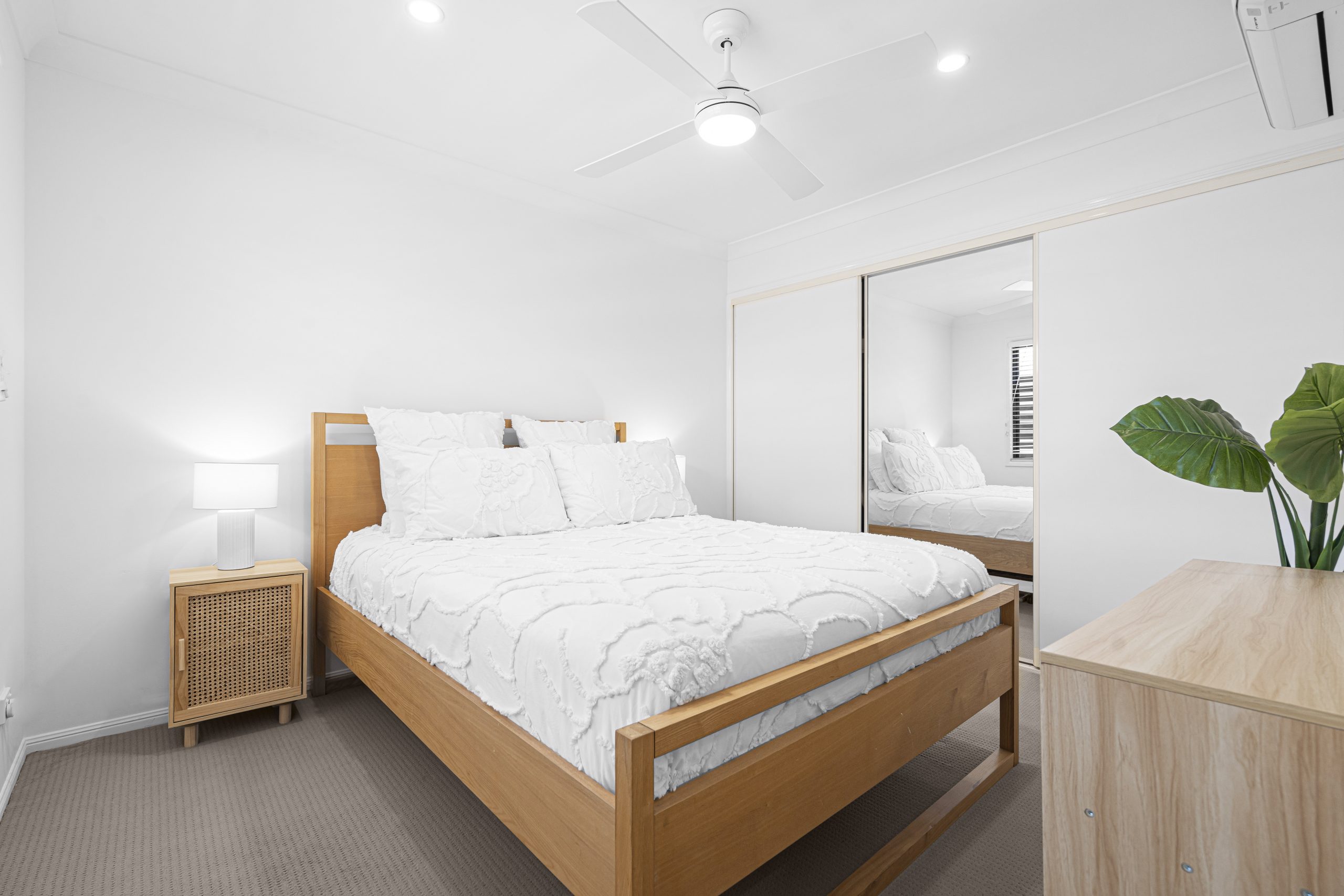 Three generously sized bedrooms are equipped with ceiling fans, air conditioning and built-in wardrobes. The master suite boasts extra generous proportions, an expansive ensuite and a private balcony – the ideal retreat at the end of the day.
