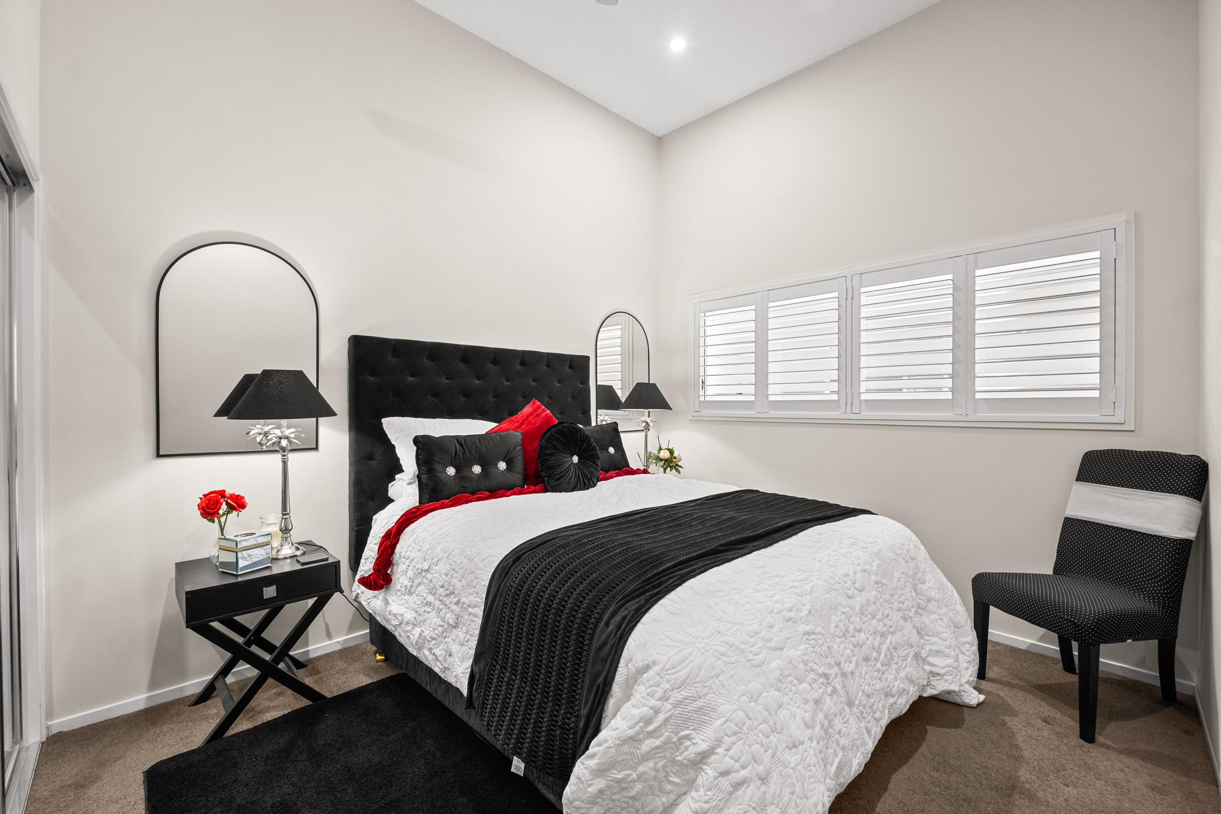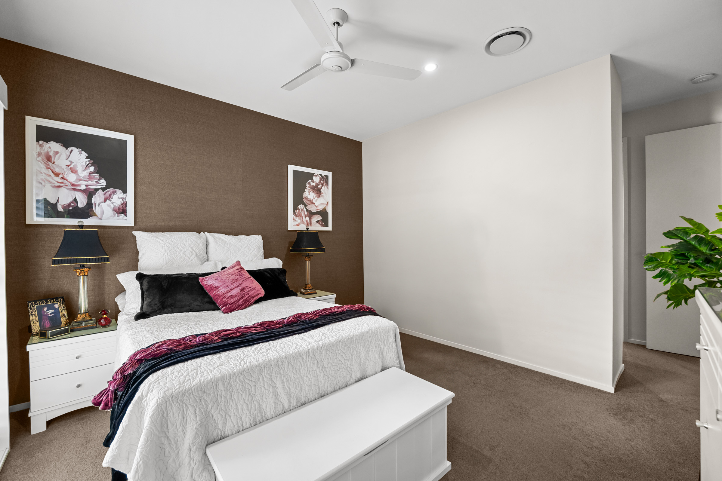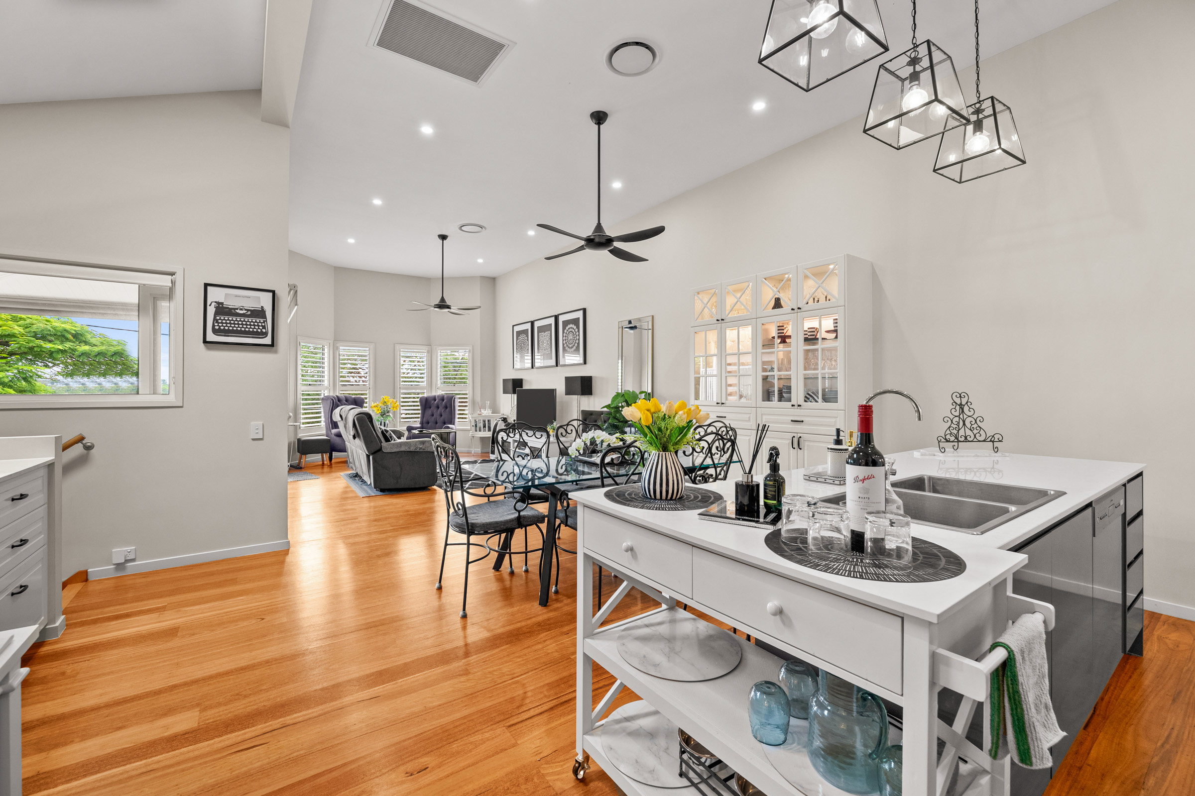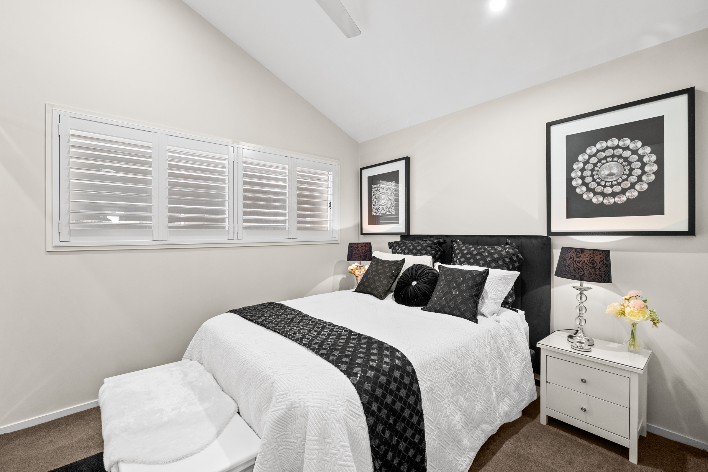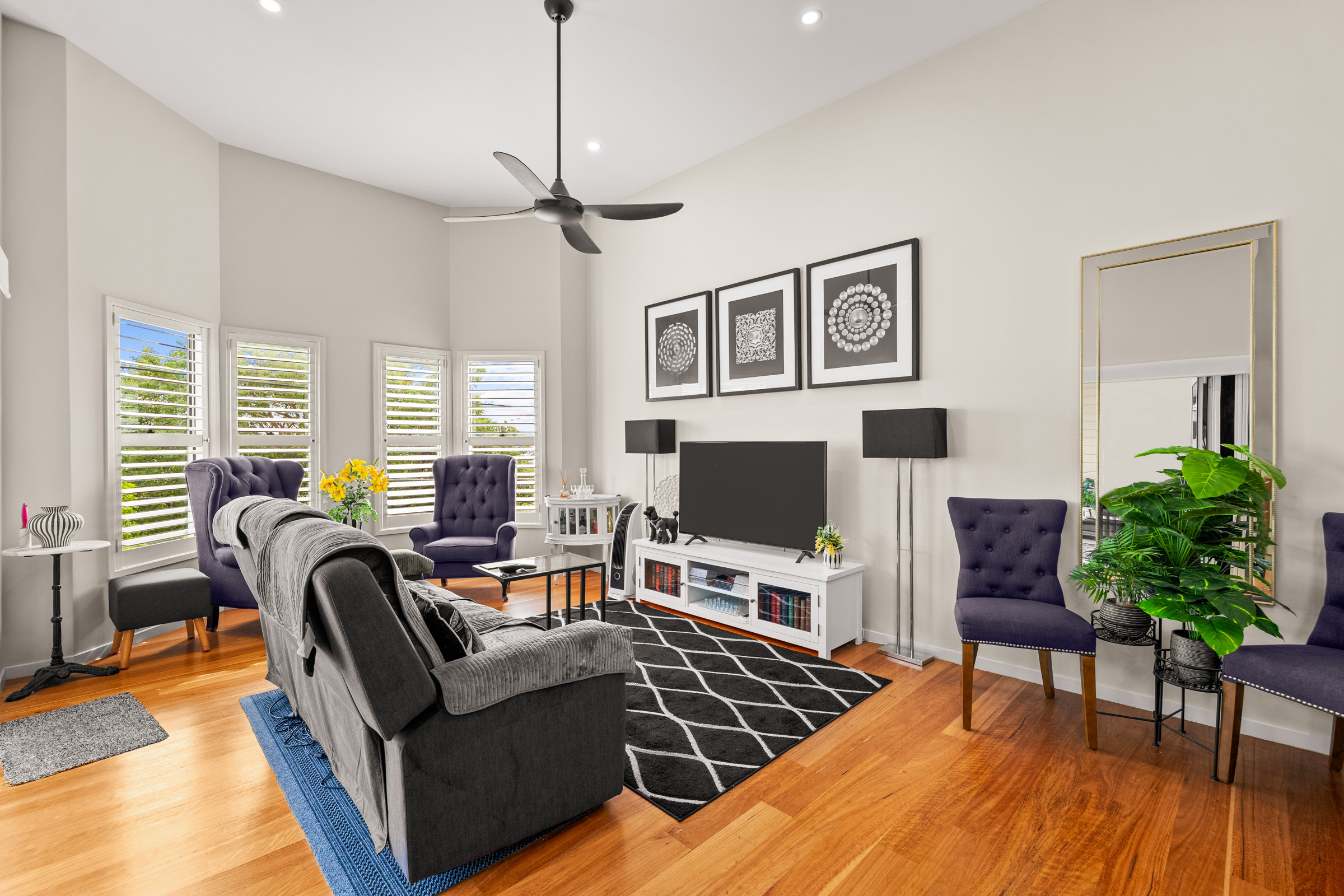 – Ceiling fans and plantation shutters throughout