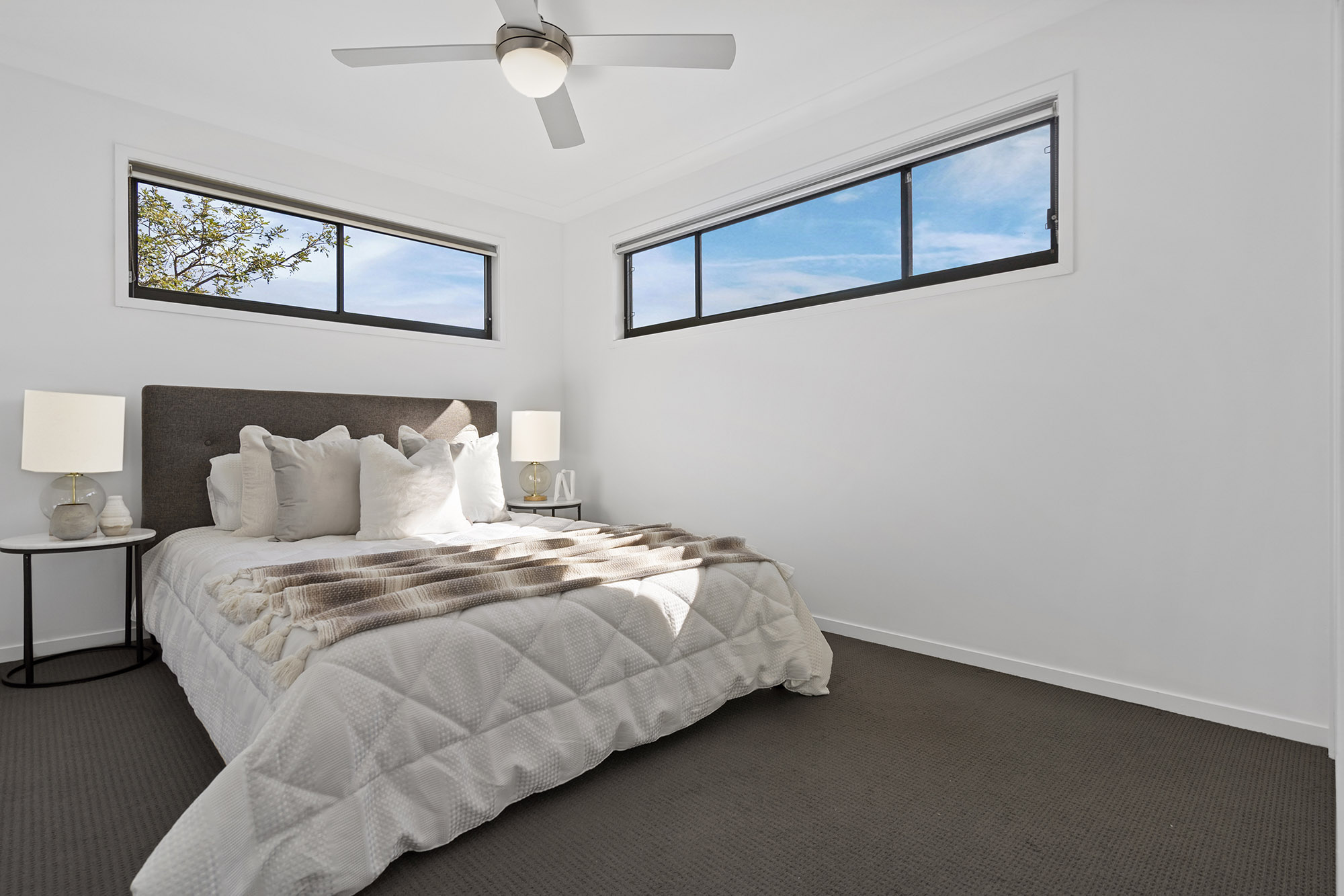 The thoughtfully designed layout offers a sanctuary-like separation between the three bedrooms, with an ensuite and a main bathroom located upstairs. These peaceful retreats, carpeted throughout, provide a haven for rest and rejuvenation, ensuring you experience unparalleled tranquillity.