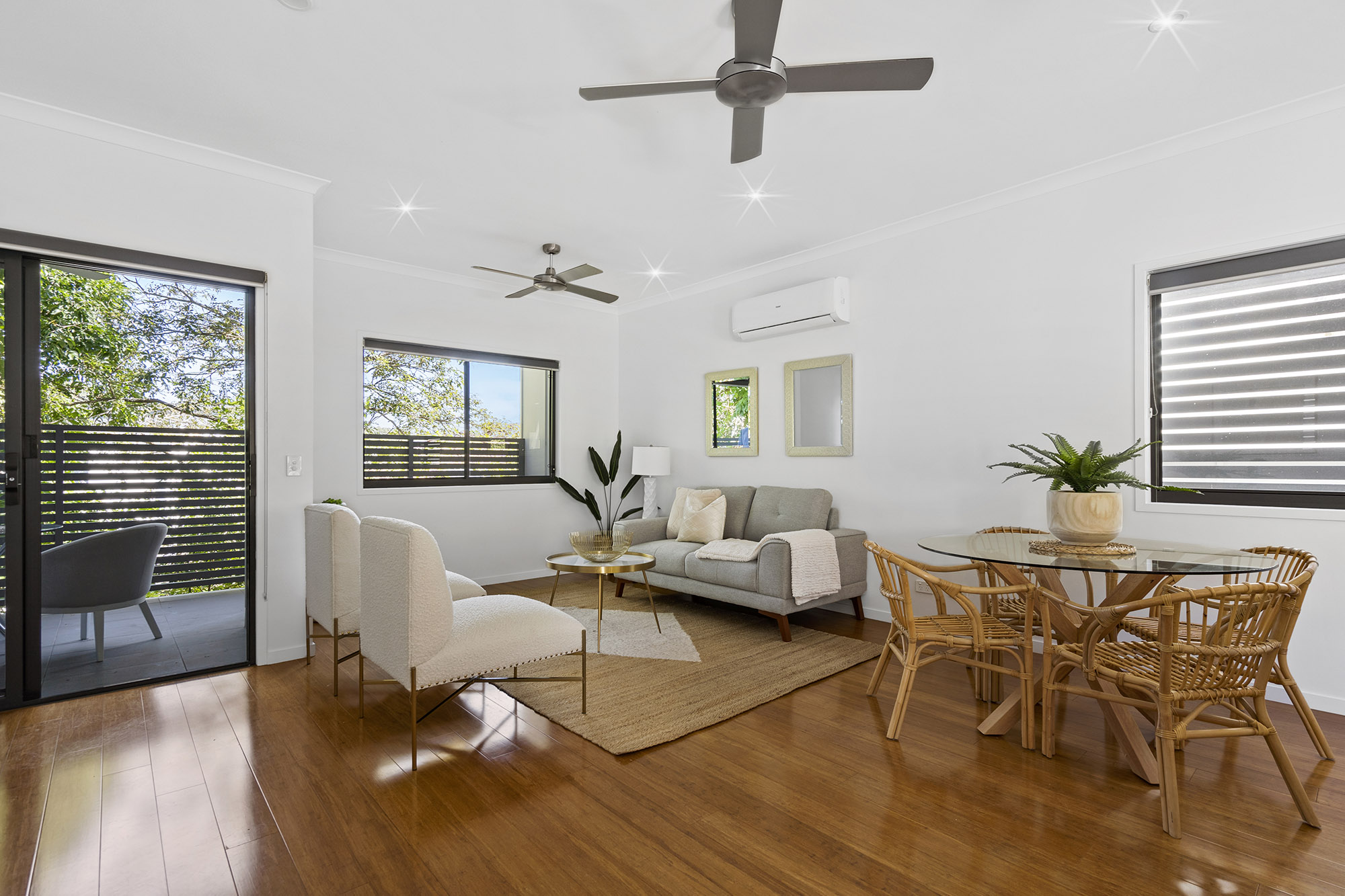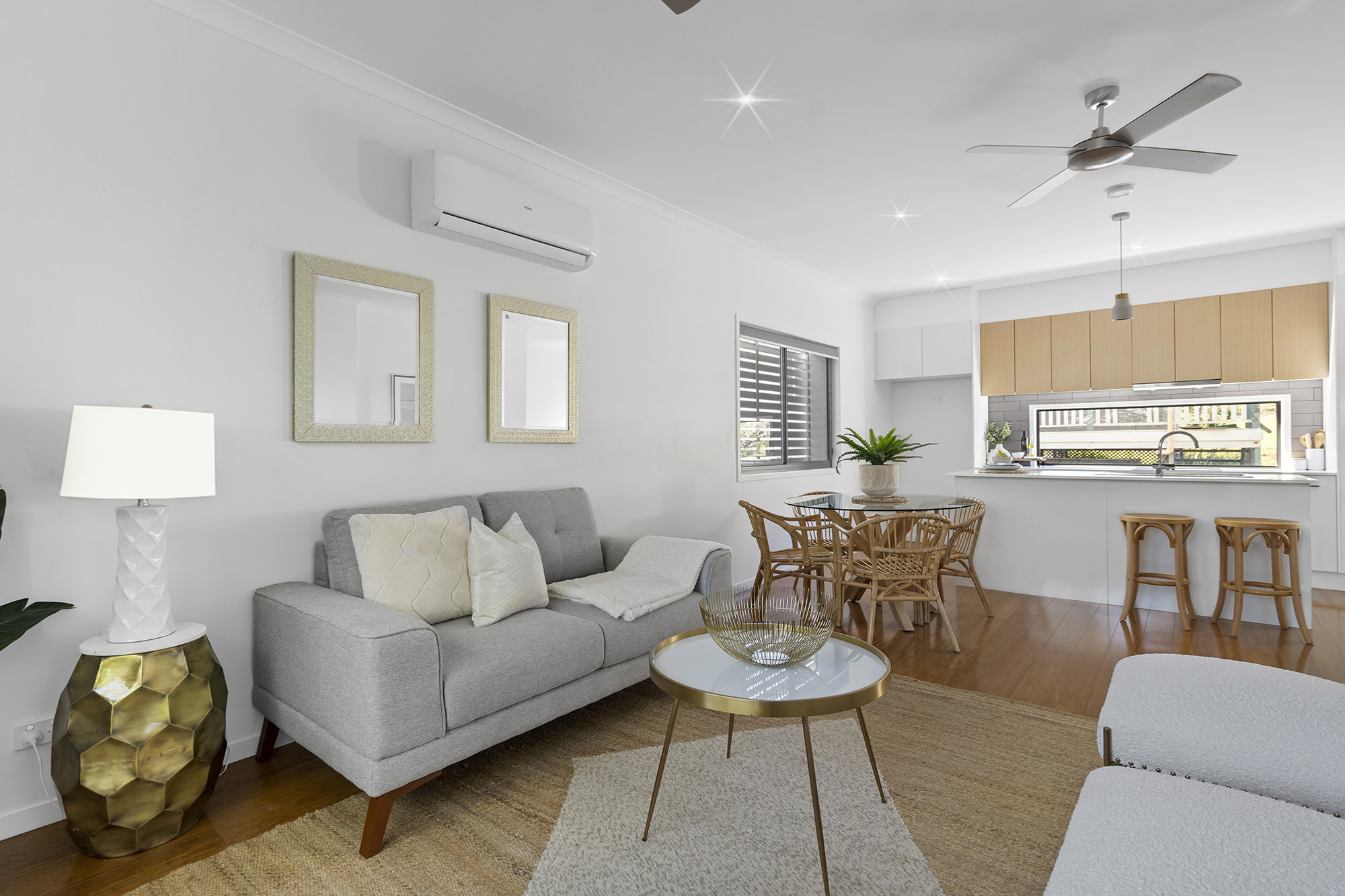 Upon arrival, a remote-controlled garage, laundry facilities, a powder room, and an external yard greet you on the ground level. Ascend to the second floor and prepare to be mesmerised by the expansive main living, kitchen, and dining area-a space that seamlessly blends elegance, functionality, and modernity. Adorned with floating timber floors, a covered rear patio with captivating views of Mount Gravatt, and a contemporary kitchen featuring top-of-the-line Smeg appliances, this area serves as the pinnacle of the property’s allure. The zoned air conditioning ensures optimal comfort, allowing you to entertain in style within this generously proportioned space.