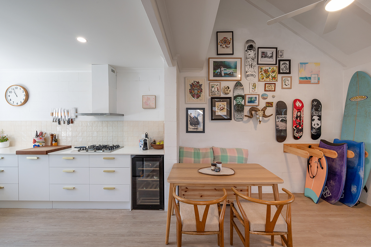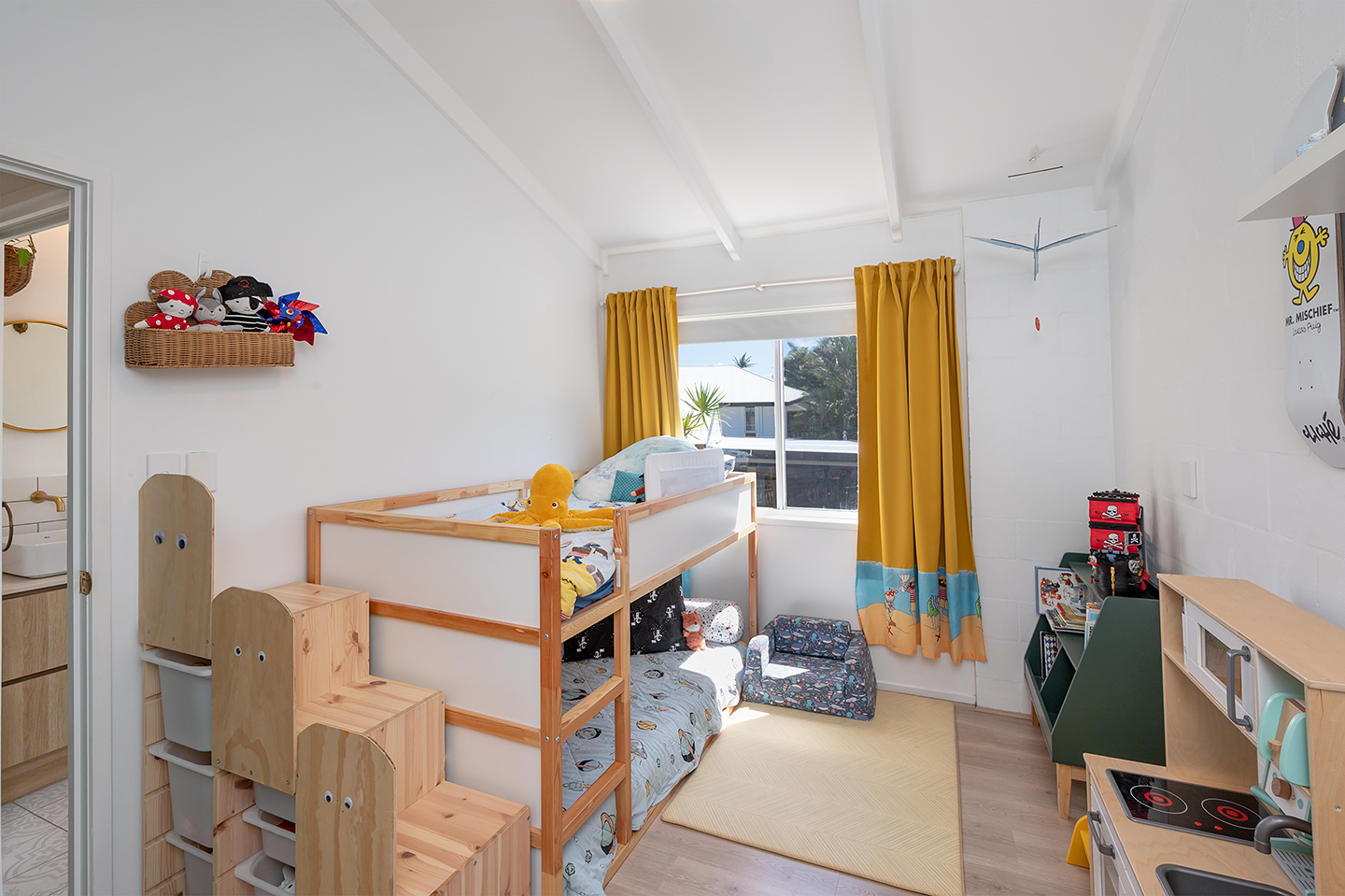 Air-conditioning: In both the kitchen-dining area and the master bedroom, plus fans in all main rooms.