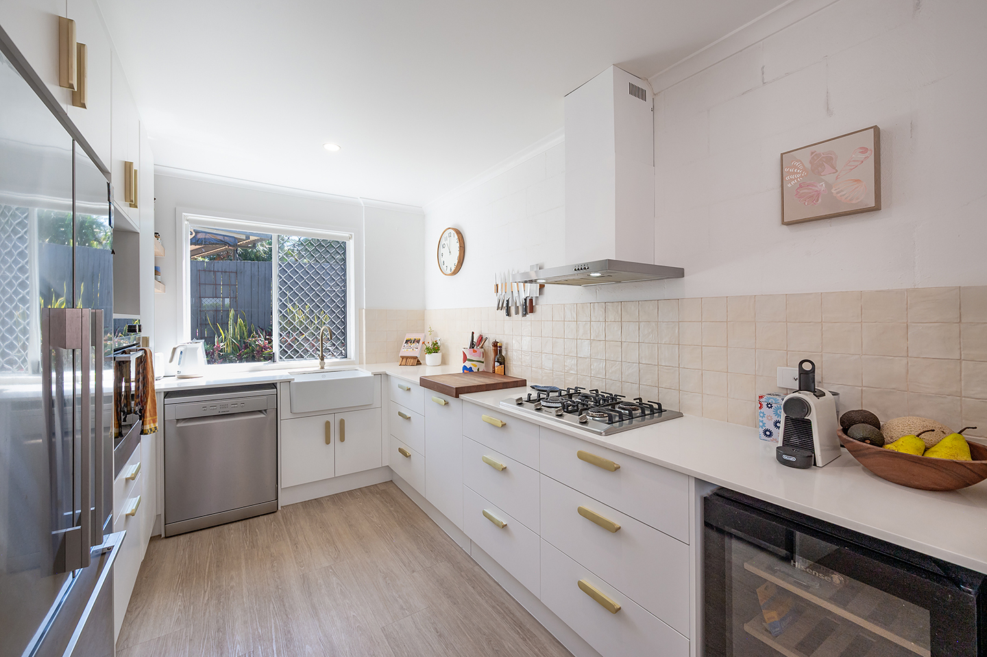 Spacious Kitchen: Quality appliances, including a Miele gas cooktop, Fisher & Paykel electric oven, and custom-built cabinets.