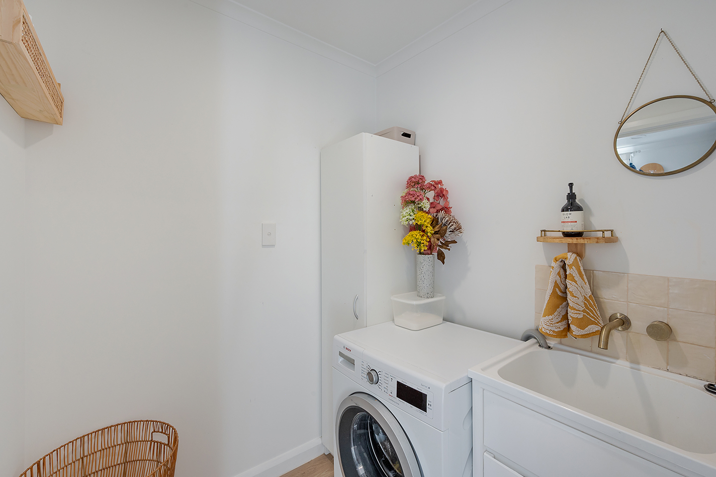 Separate Laundry: Conveniently located downstairs with easy access to the clothesline in the fenced back court.