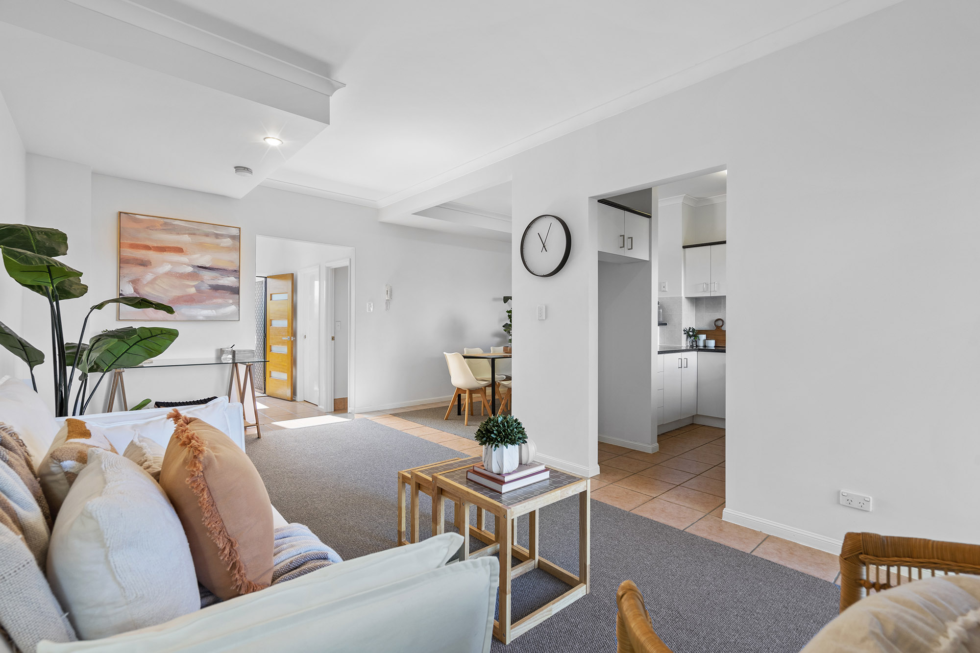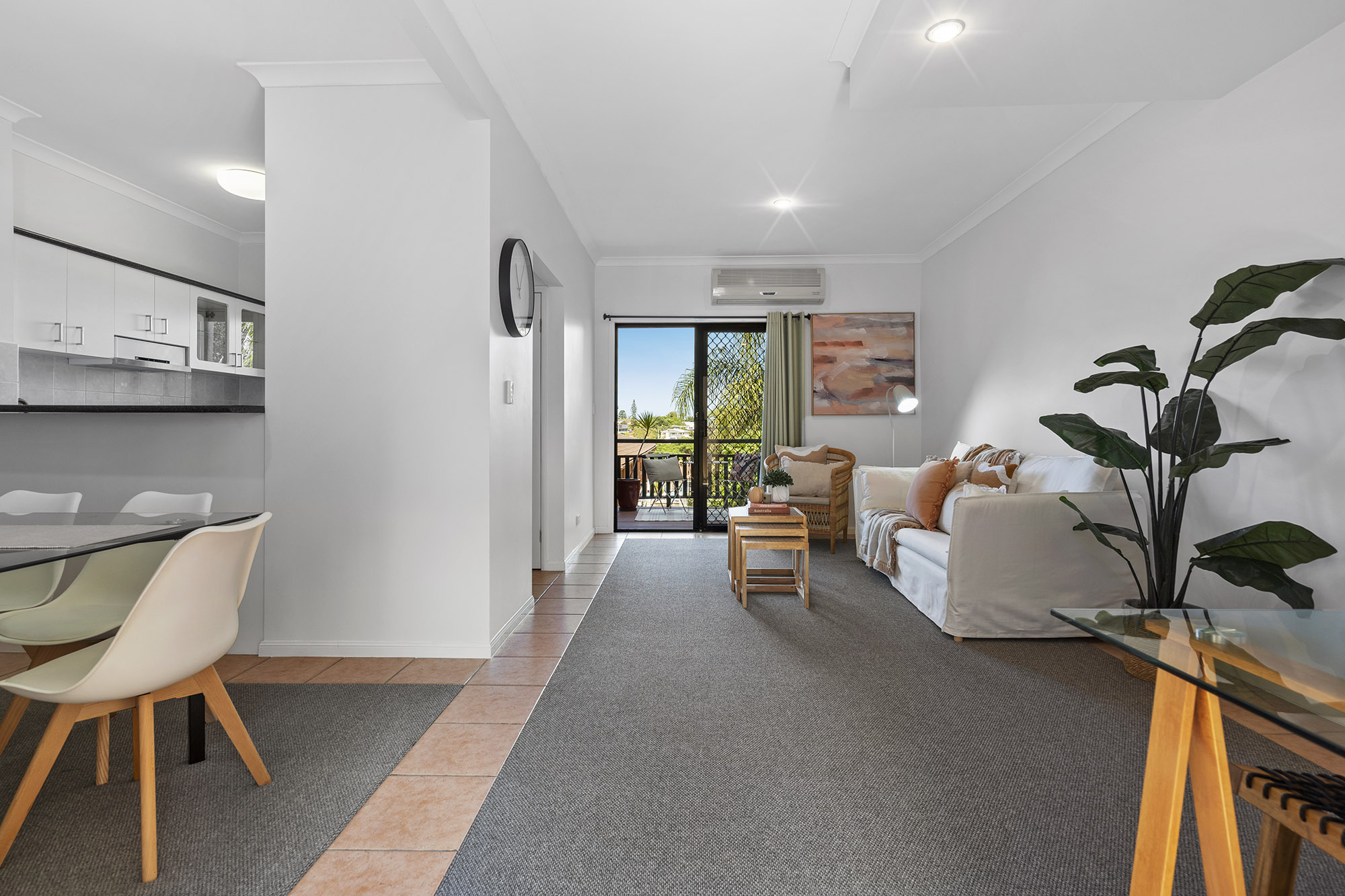 Inspect to discover spacious downstairs living with a separate lounge and dining space, new carpet, a modern colour scheme and an abundance of natural light throughout. The practical kitchen features ample space and a dishwasher while the elevated position captures a constant breeze for year-round comfort.