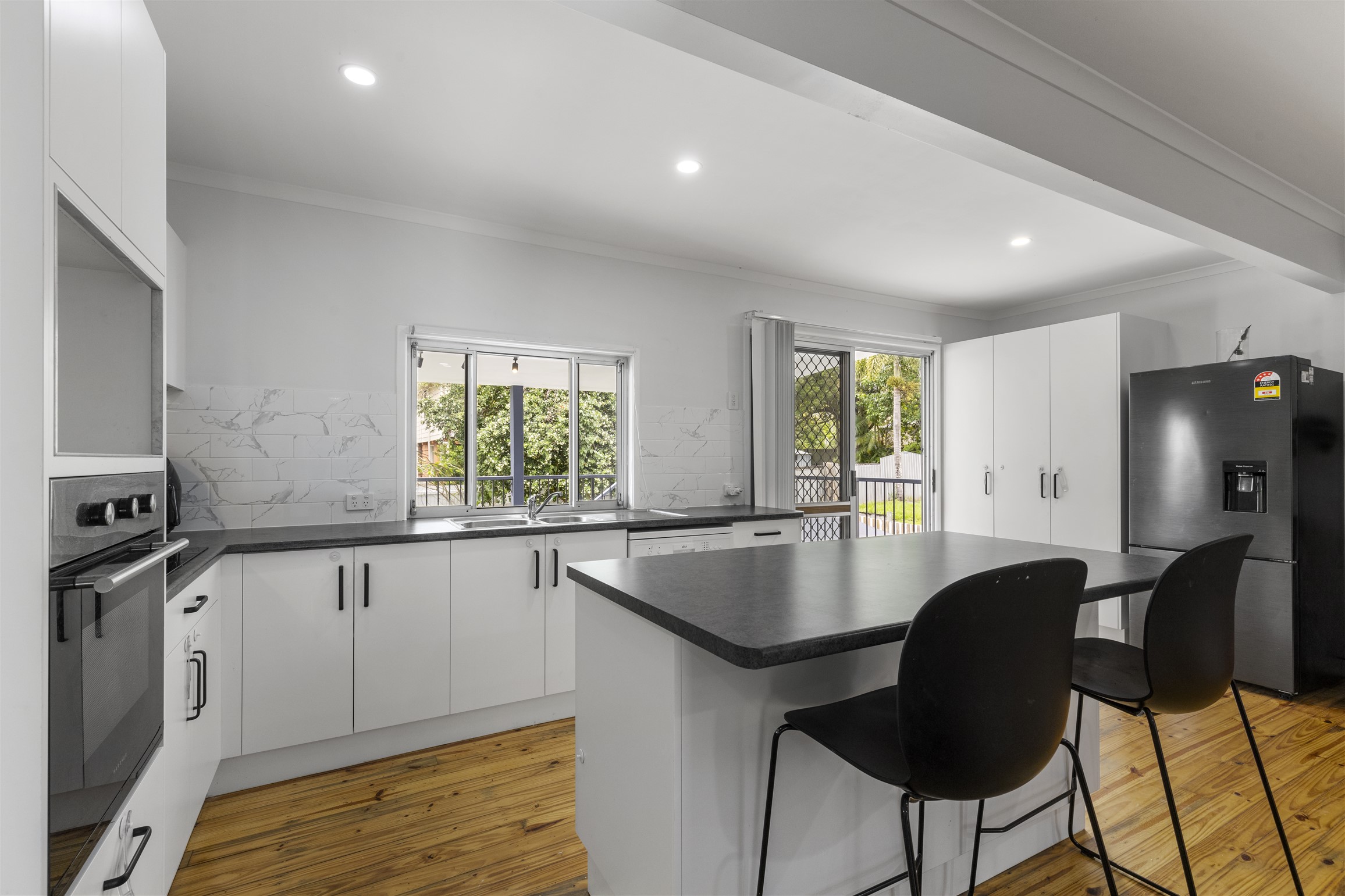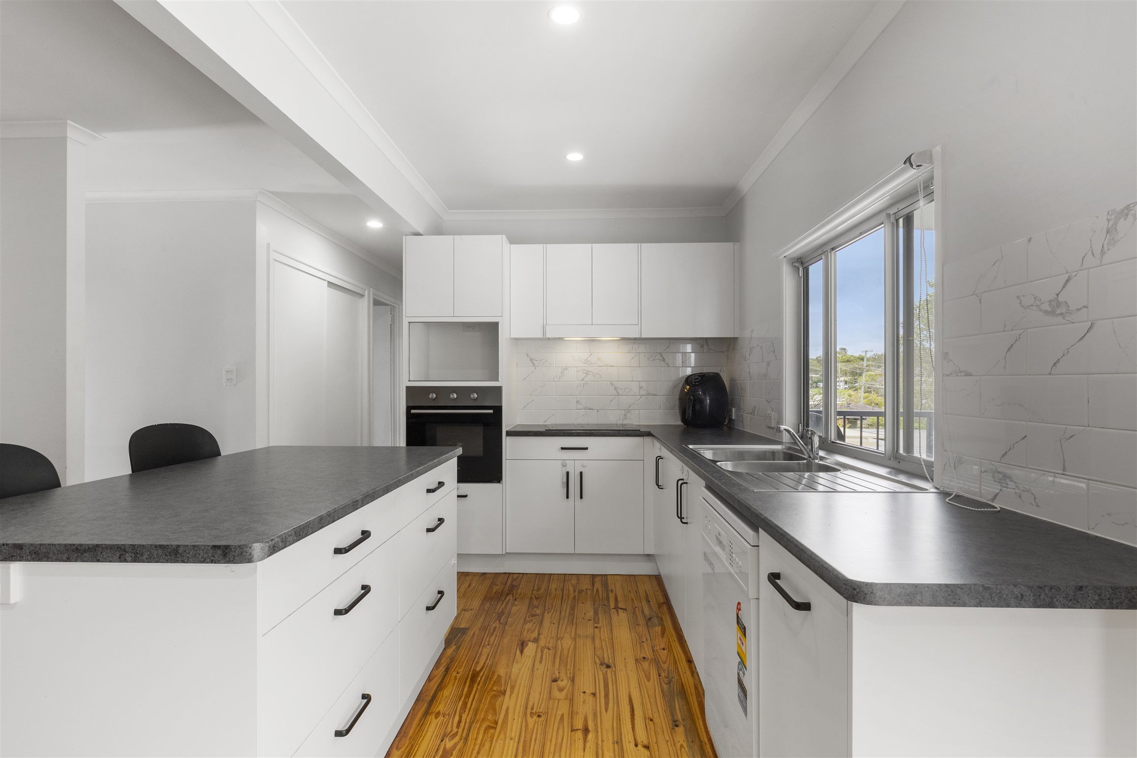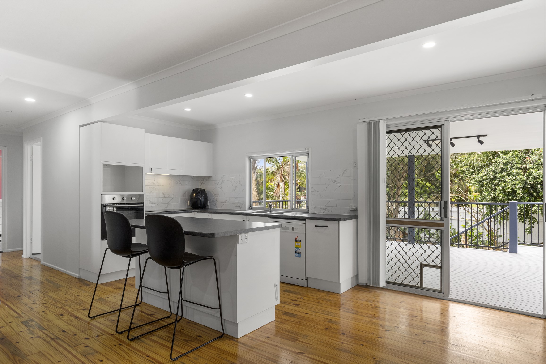 • Modern kitchen with good cupboard space and breakfast bar