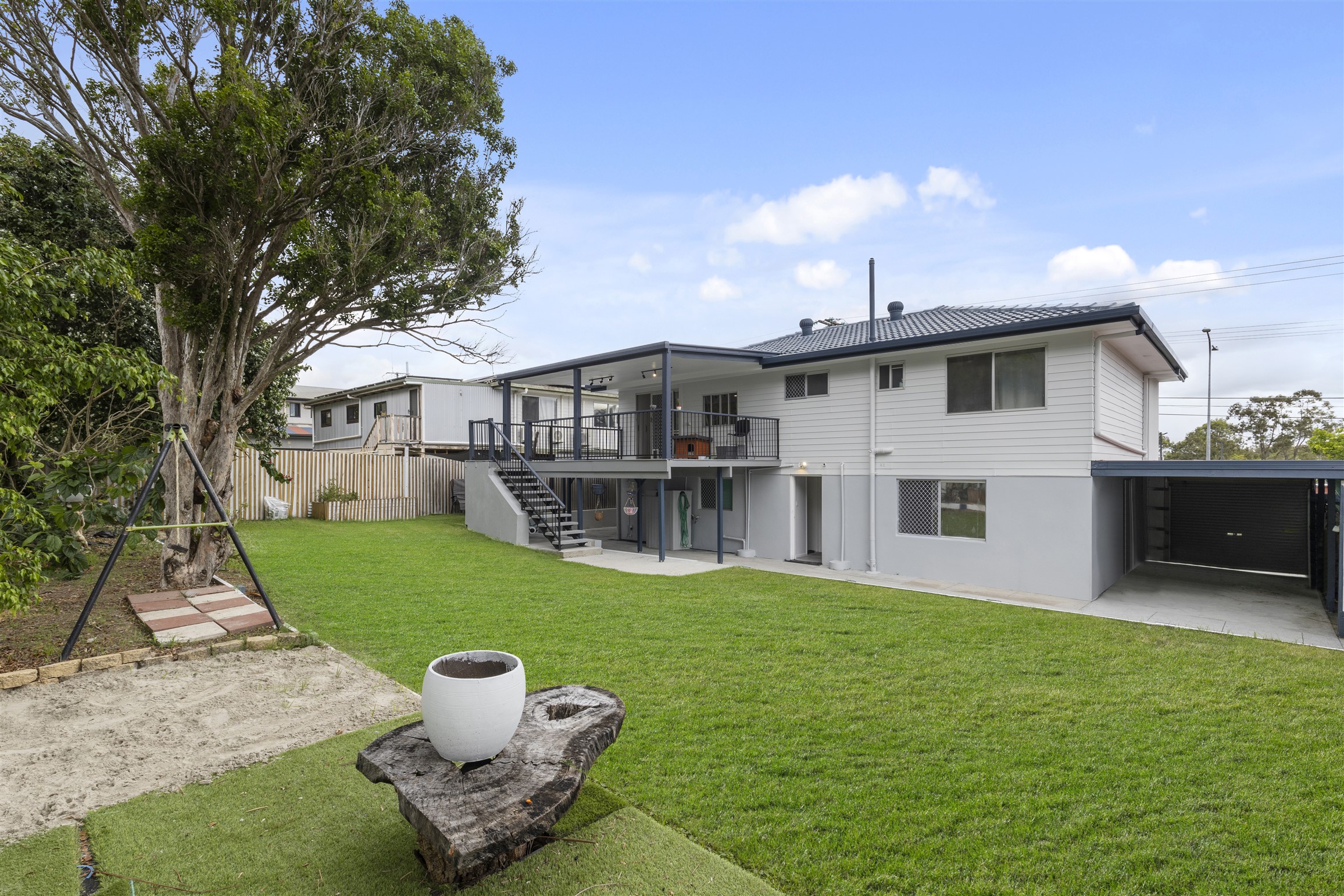 Substantaily renovated and updated over recent years both inside and out, this deceptively large 3 bedroom home presents many exiting options for both owner occupiers and investors alike. Positioned on a family friendly 622m2 with fantastic back yard space for the kids and pets to play at large. All bedrooms are located on the upper level with the big ticket items of the kitchen and bathroom both tatefully updated. The A/c open plan living and dining areas ease out to the expansive rear deck taking in sweeping treelined views via a North/East aspect. Although not legal height under, huge space is provided including a family room, home office, media room and combined laundry and 2nd bathoom. For any tradies, recreational vehicle enthusiast or just simply the need for extra car space, up to 6 cars can be housed comfortably off-street, possibly more, plus a single carport.
