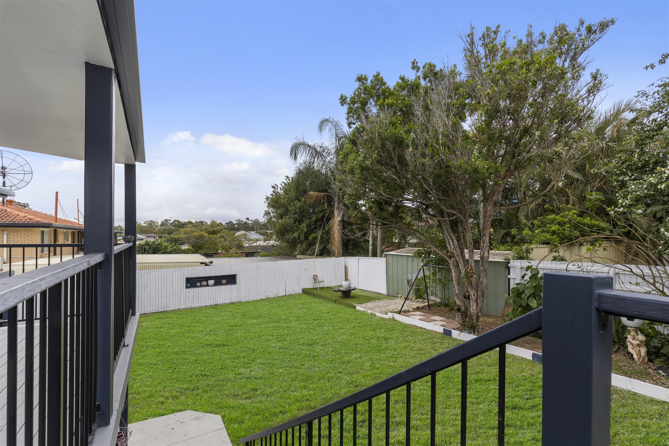 • Expansive rear deck with sweeping outlook overseeing the desirable backyard