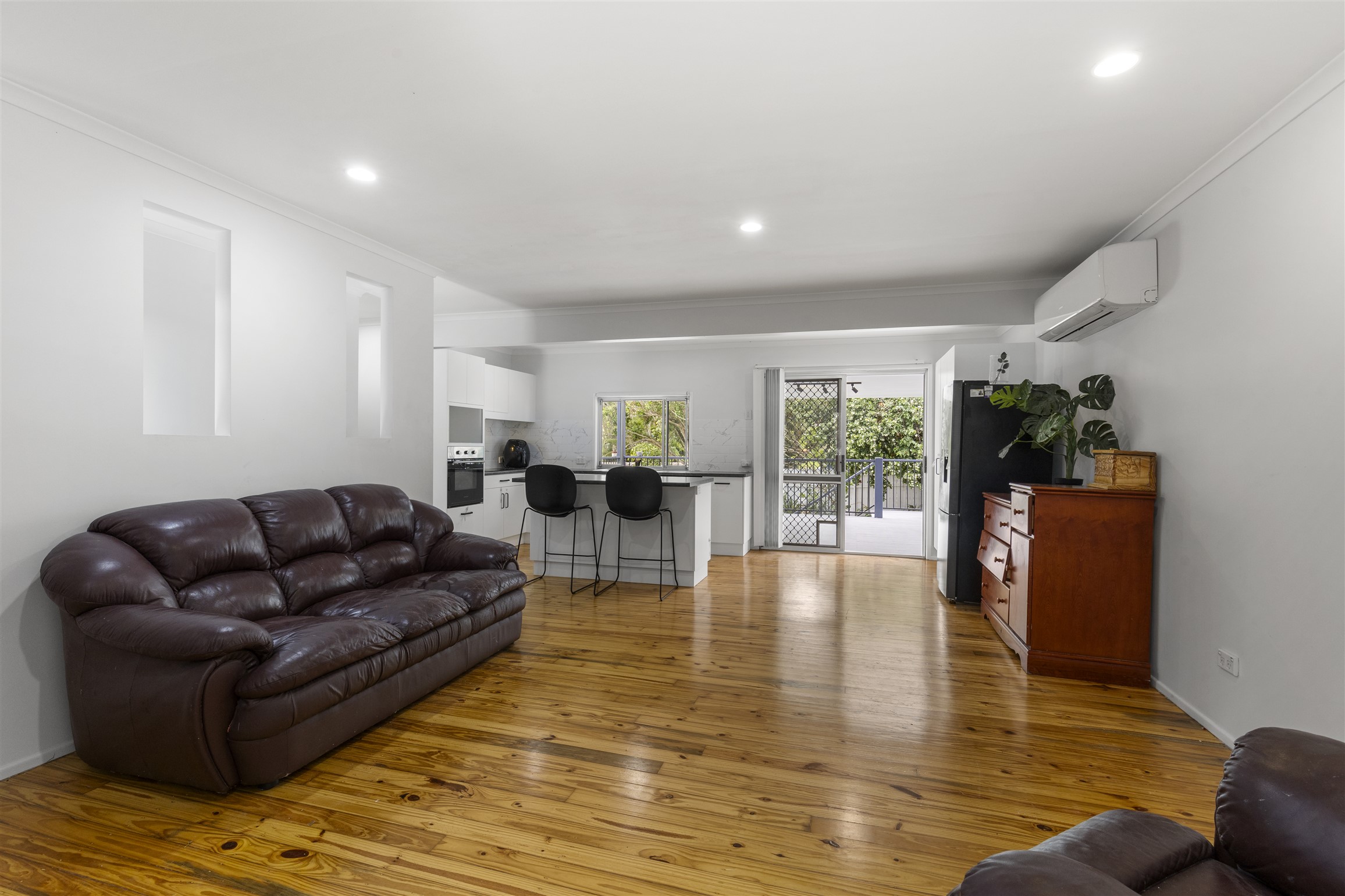 • Open plan living, dining and kitchen areas with A/c