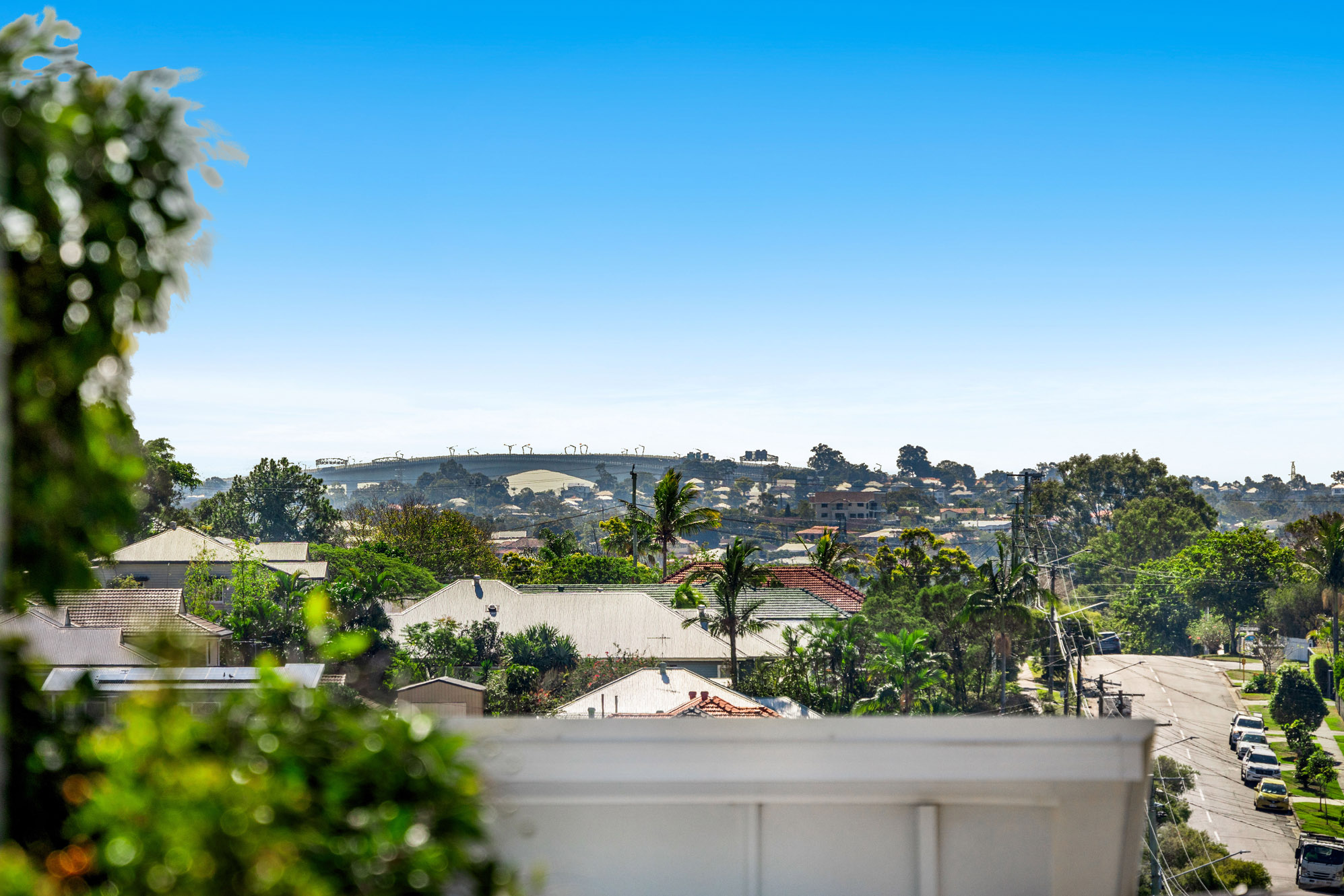 Proudly elevated, taking in a dynamic panorama of over 180 degree views, this solid 3 bedroom postwar home on a desirable 647m2 offers wonderful potential. Light-filled with superb breezes throughout, encapsulating views from East to West taking in the Gateway and CBD glimpses from many vantage points to be further enhanced through development. With many exciting options on offer, land bank and invest, modernise the existing home which offers a a quality base or remove and build your dream home. Also given its close proximity to local shops, it may present a potential block split option though check with the local council or town planner.