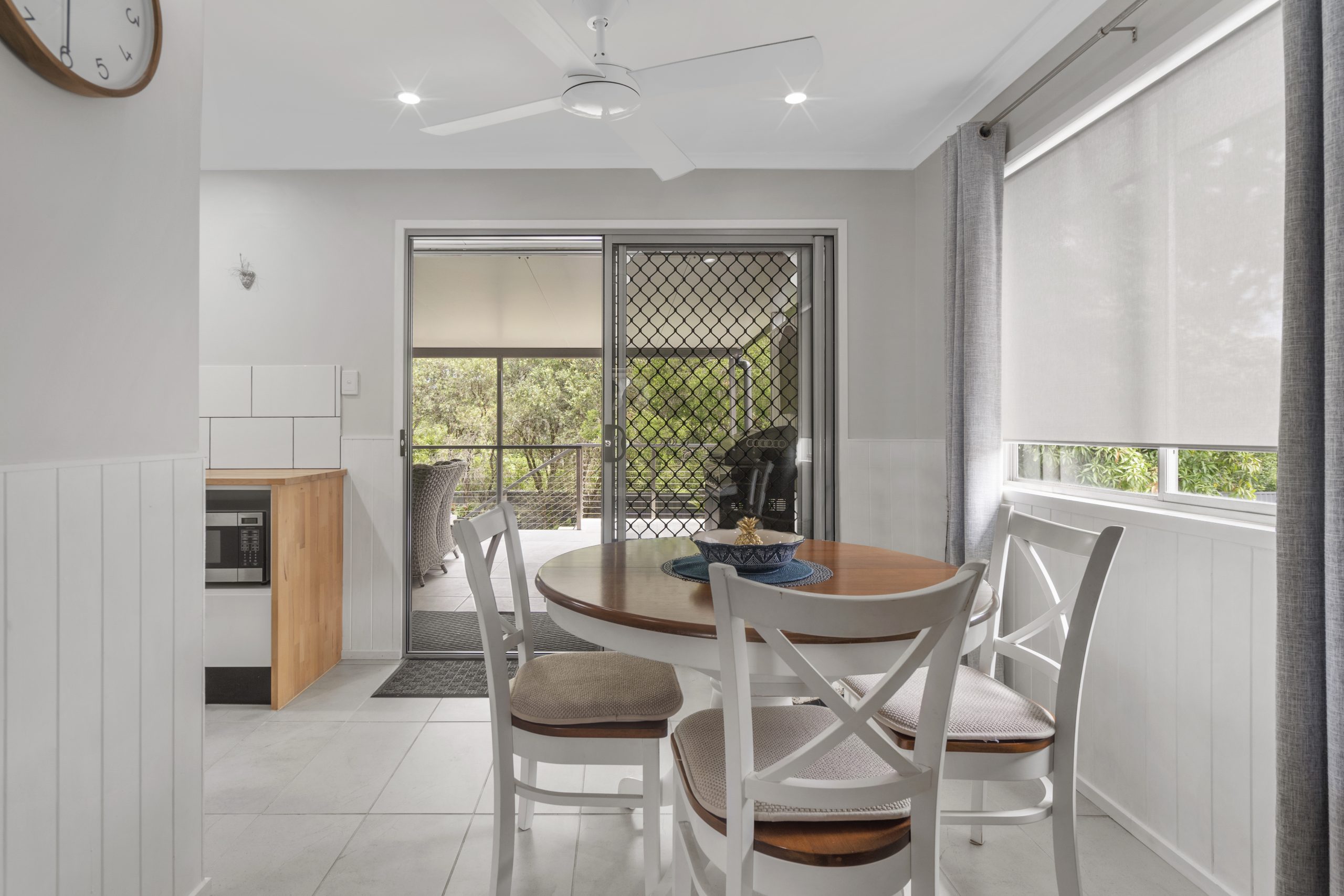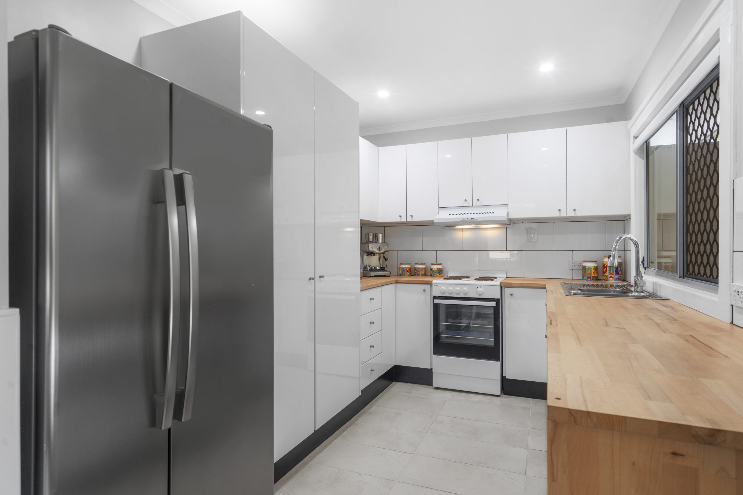 The heart of this home lies within its gleaming high-gloss kitchen, adorned with rich timber benchtops and offering an abundance of storage space. Equipped with modern appliances including an electric oven, hot plate, and dishwasher, this culinary haven is poised to become the focal point of family gatherings. Step outside onto the sprawling undercover deck, where overlooking meticulously manicured gardens await, beckoning you to unwind in serenity.