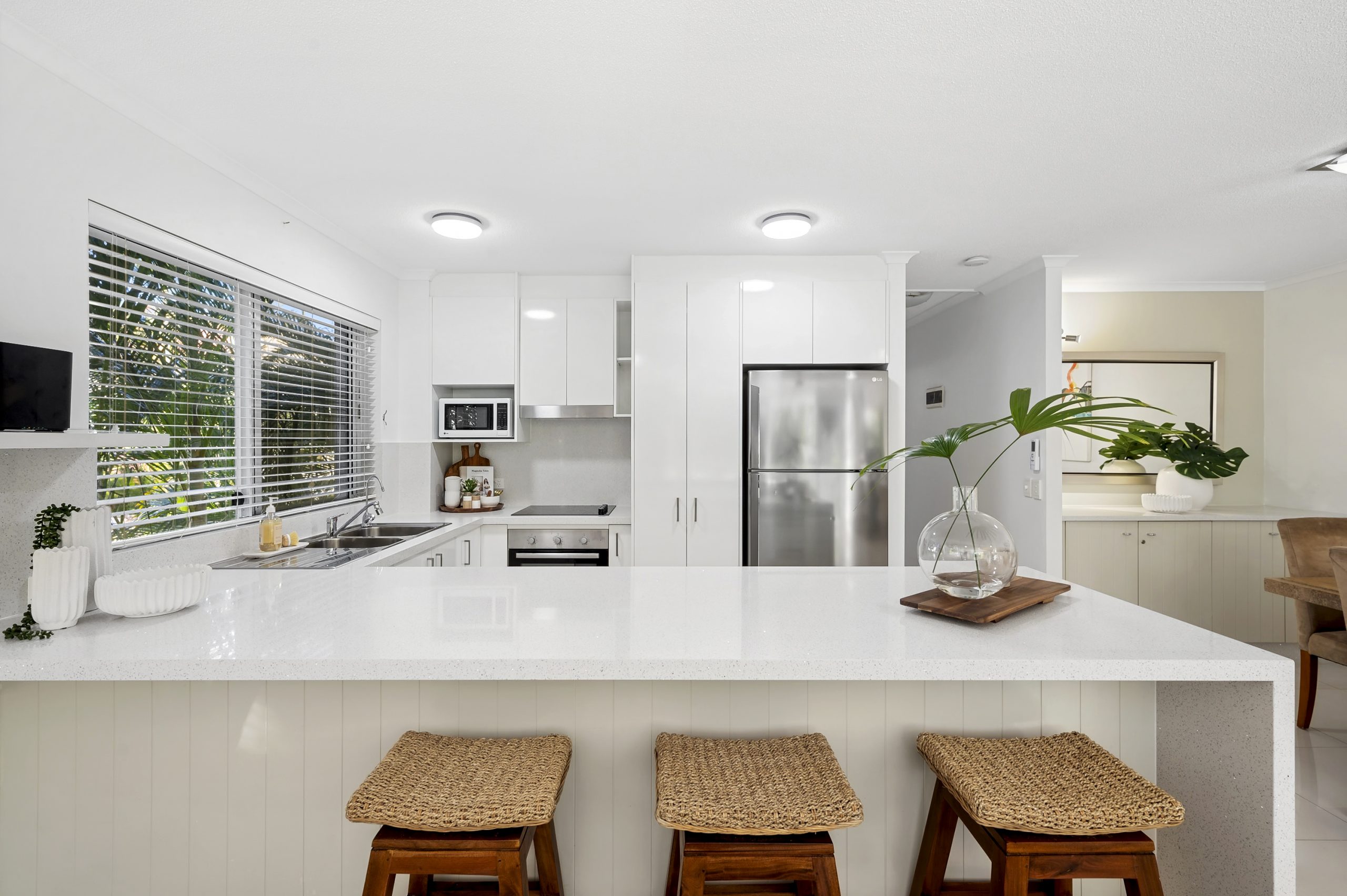 This spacious and private single level apartment is nestled at the end of the stunning resort complex enjoying an enviable corner position. This modern apartment has been renovated with a neutral palette offering timeless appeal for its new owners. The kitchen with its granite top and glass white cabinetry encompasses a breakfast bar and is adjacent to the expansive verandah with a desirable northerly aspect. With tropical landscaped gardens, impeccable resort facilities and a picture-perfect view of one of the three sparkling resort pools, you will feel like every day is a holiday.