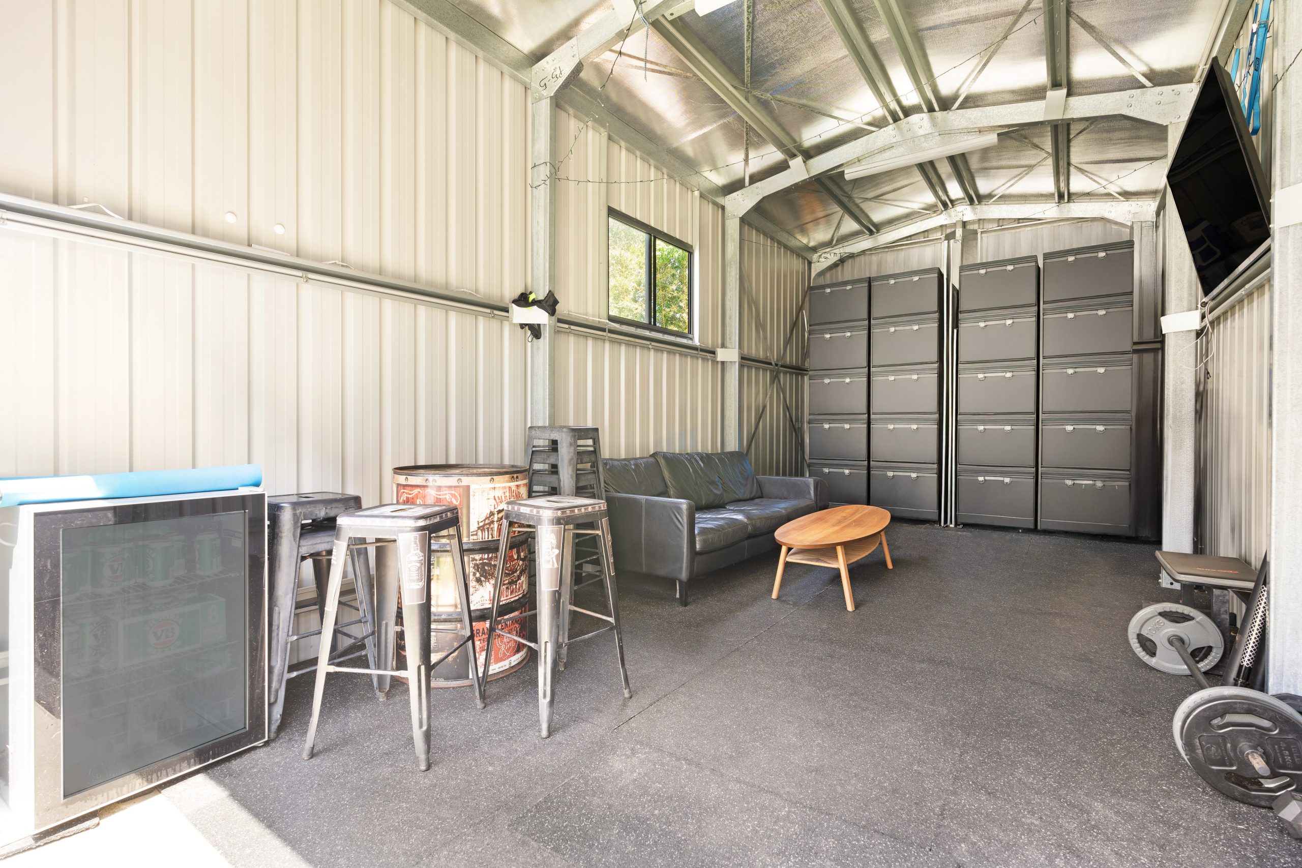 Large shed, fully powered with soft floor matting for a versatile secondary space