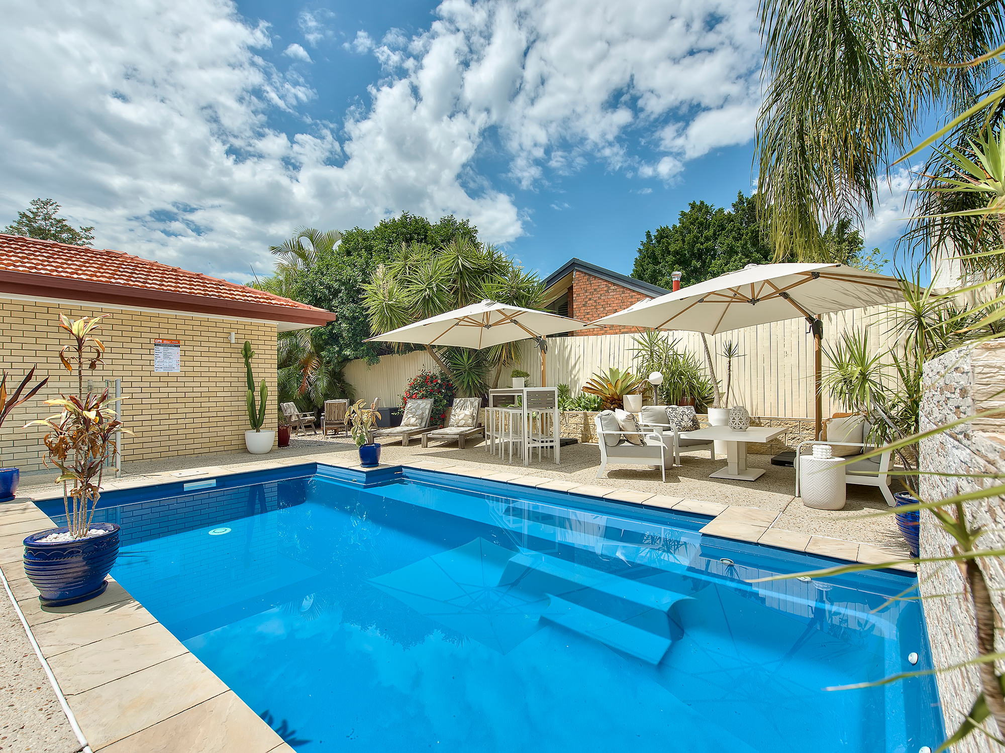 Four built-in bedrooms provide comfortable retreats for growing families, with the privately positioned master bedroom featuring air-conditioning and a peaceful outlook over the swimming pool. Serving the home in style, the central family bathroom is impeccably appointed with floor-to-ceiling tiling and excellent storage. Additional features include a separate laundry, ceiling fans, a double remote garage and dual off-street parking.