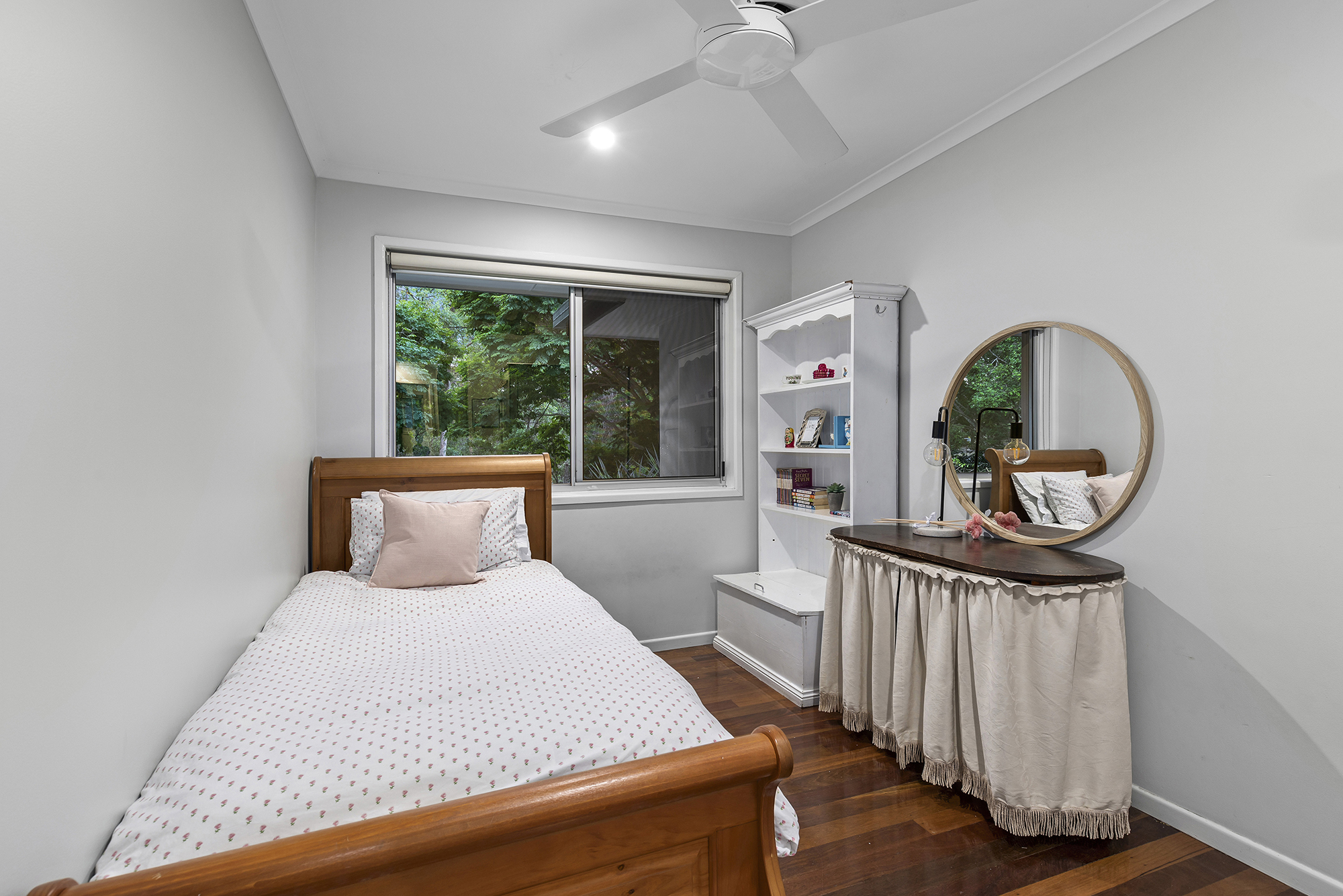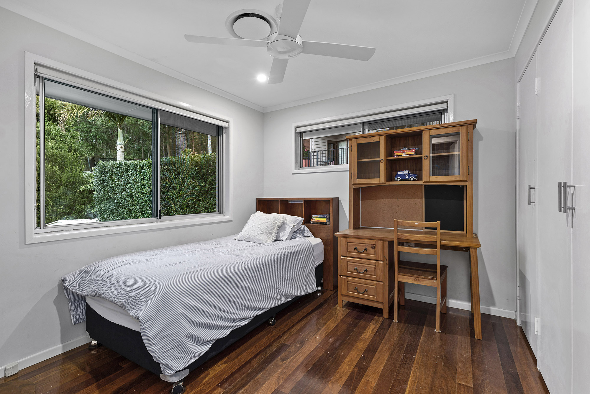 Nestled on an elevated, north-facing 612m2 block, this property has picturesque views and an enhanced sense of privacy. The backyard is an entertainer’s delight, featuring an inviting al fresco area, complete with a built-in BBQ, and a generously-sized in-ground mineral pool equipped with an Enviroswim system, ensuring crystal-clear water for your ultimate enjoyment. This area is perfect for hosting gatherings and children with its lush grassed area and built-in trampoline.