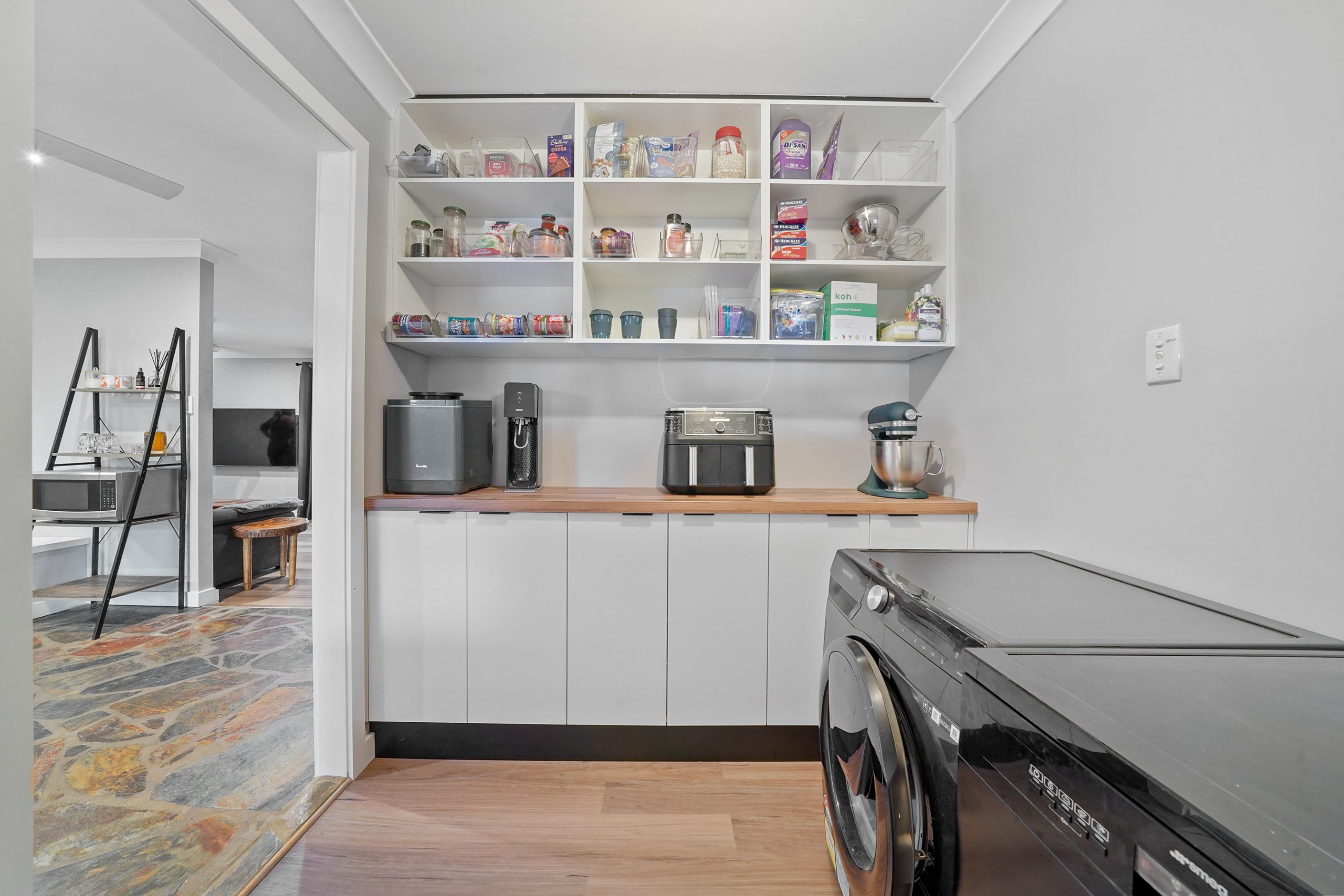 • Walk-in butler’s pantry combined with laundry featuring hybrid timber floors