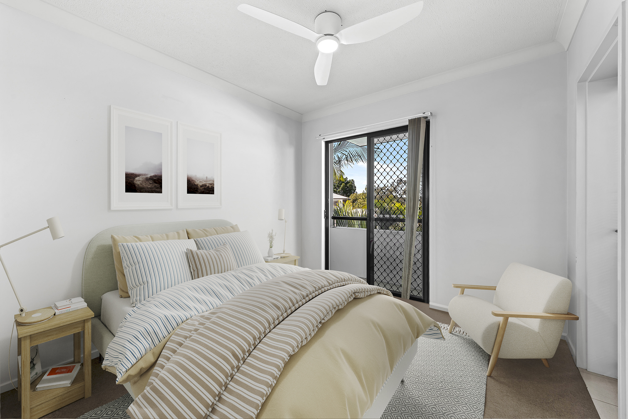 Upon entering you are greeted by a generous air-conditioned open plan living space which flows out to one of two balconies. A perfect spot for a relaxing morning read or an afternoon of entertaining. The main bedroom includes a walk-in robe and ensuite. The second bedroom includes built in robes, a ceiling fan plus access to the second balcony on the eastern side with views to the pool. The main bathroom contains a double vanity and shower over bath. The well-appointed kitchen with ample cabinetry also has access to the eastern side balcony.
