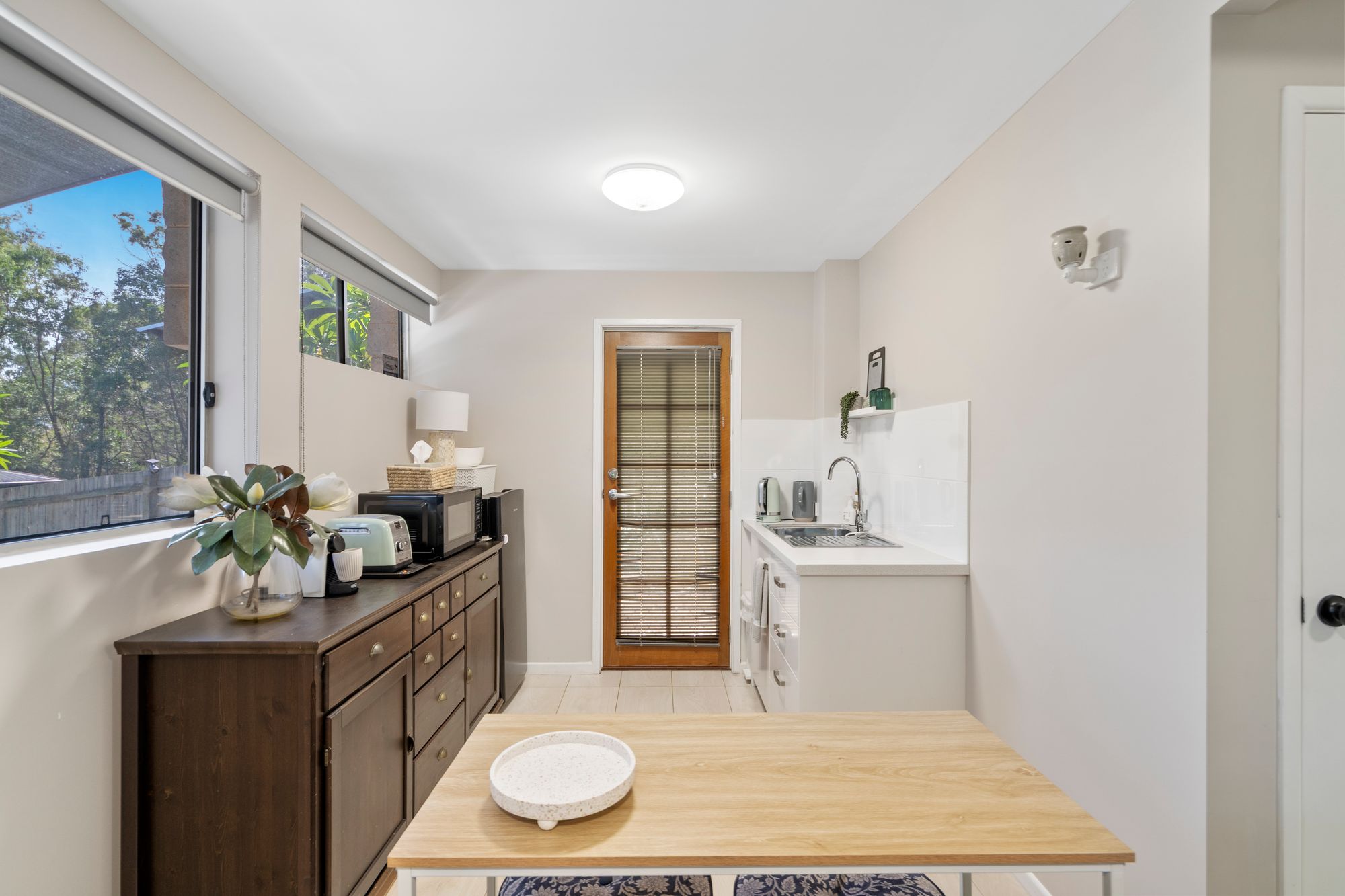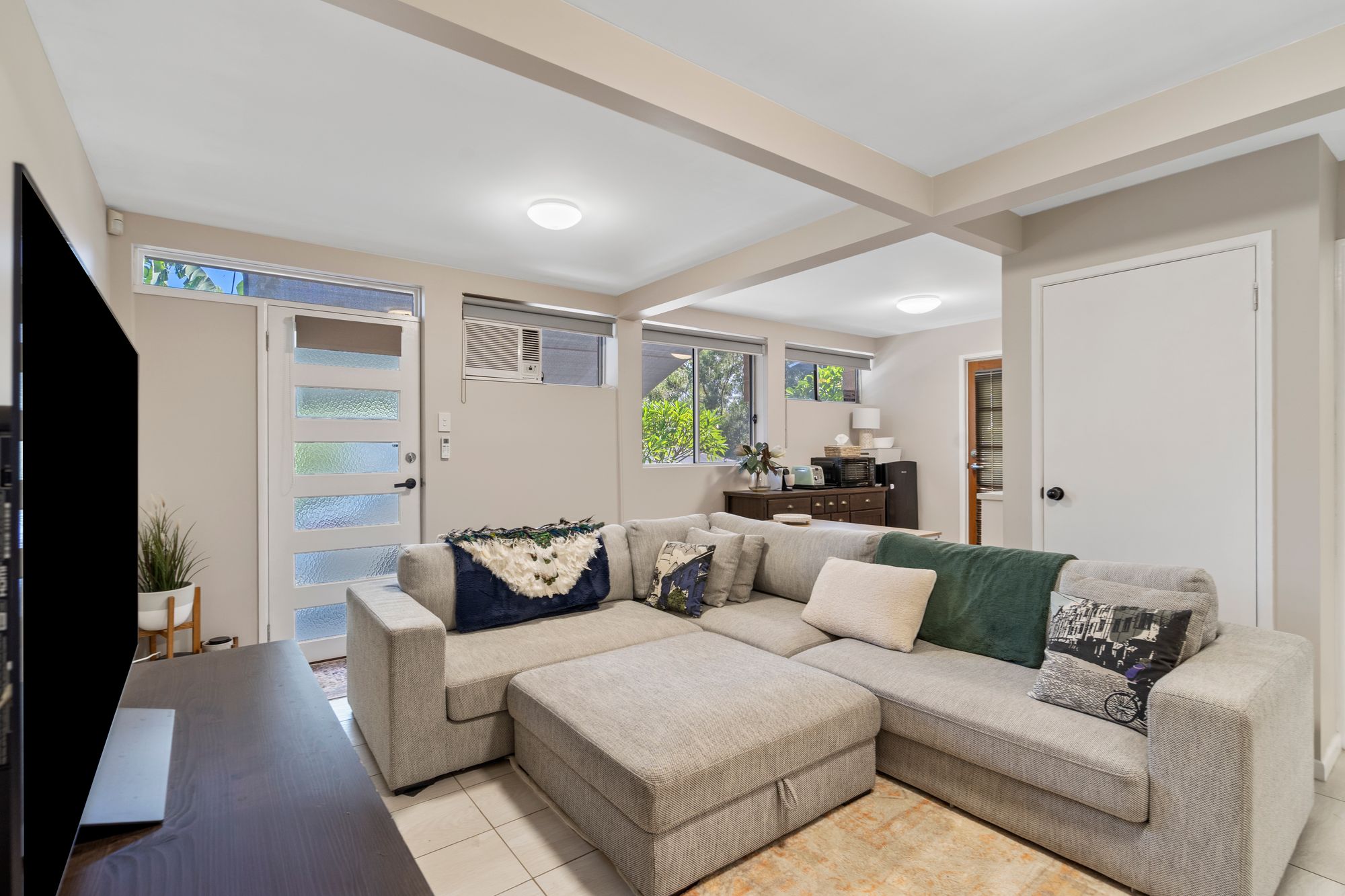 * Living & Dining: A secondary lounge and dining area featuring tiled flooring and air-conditioning.