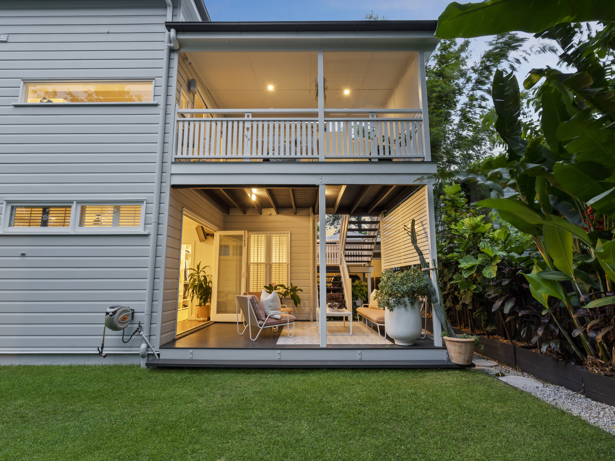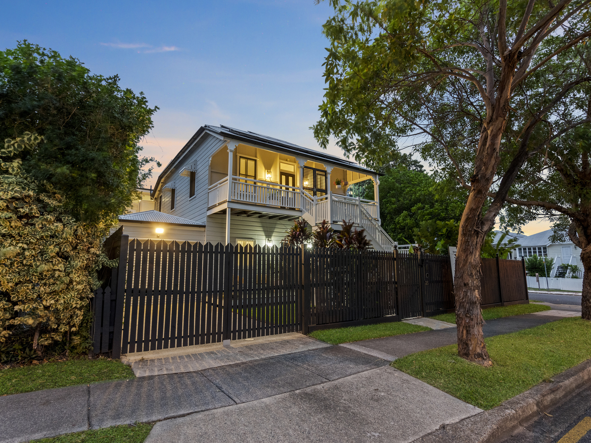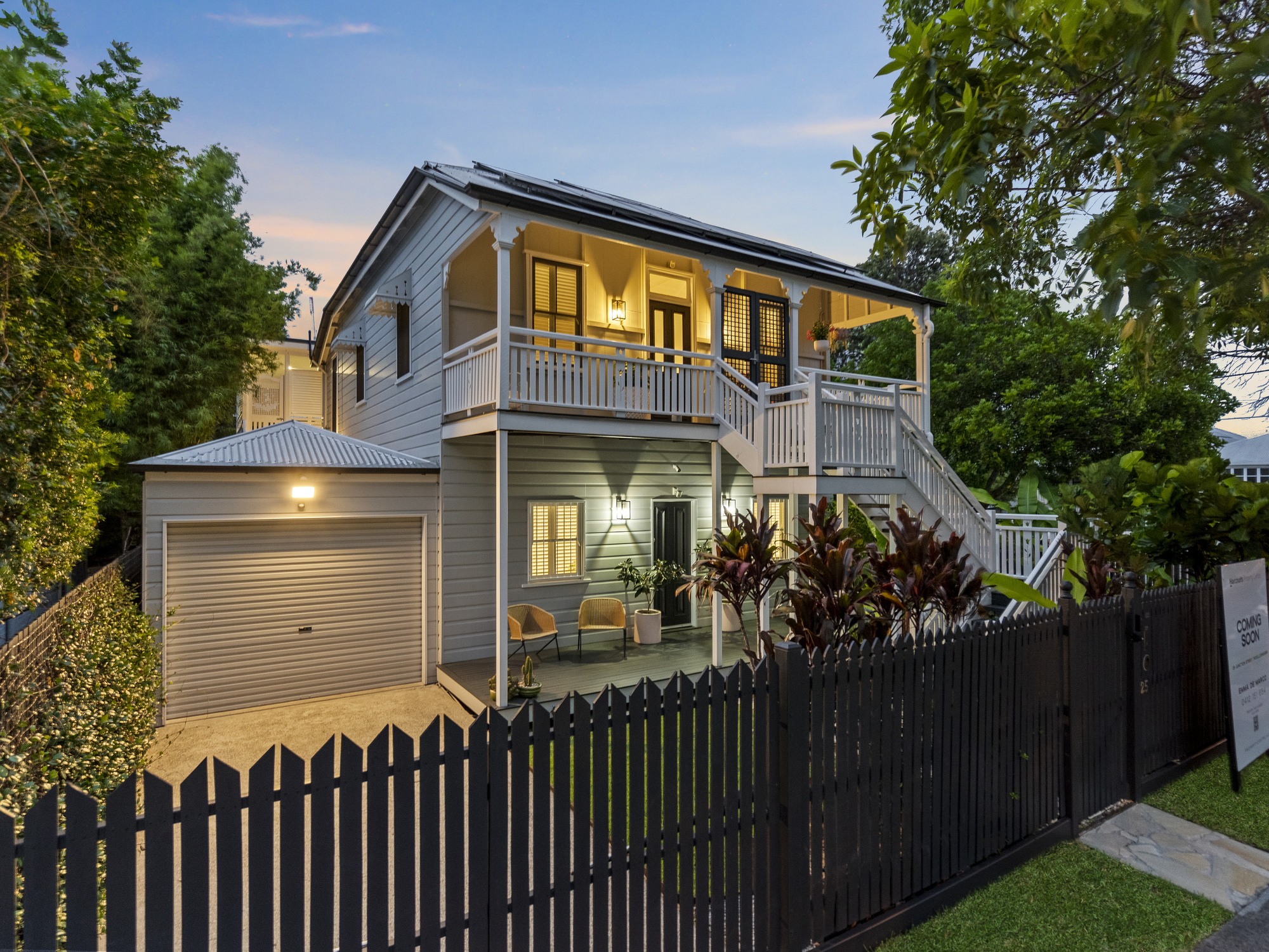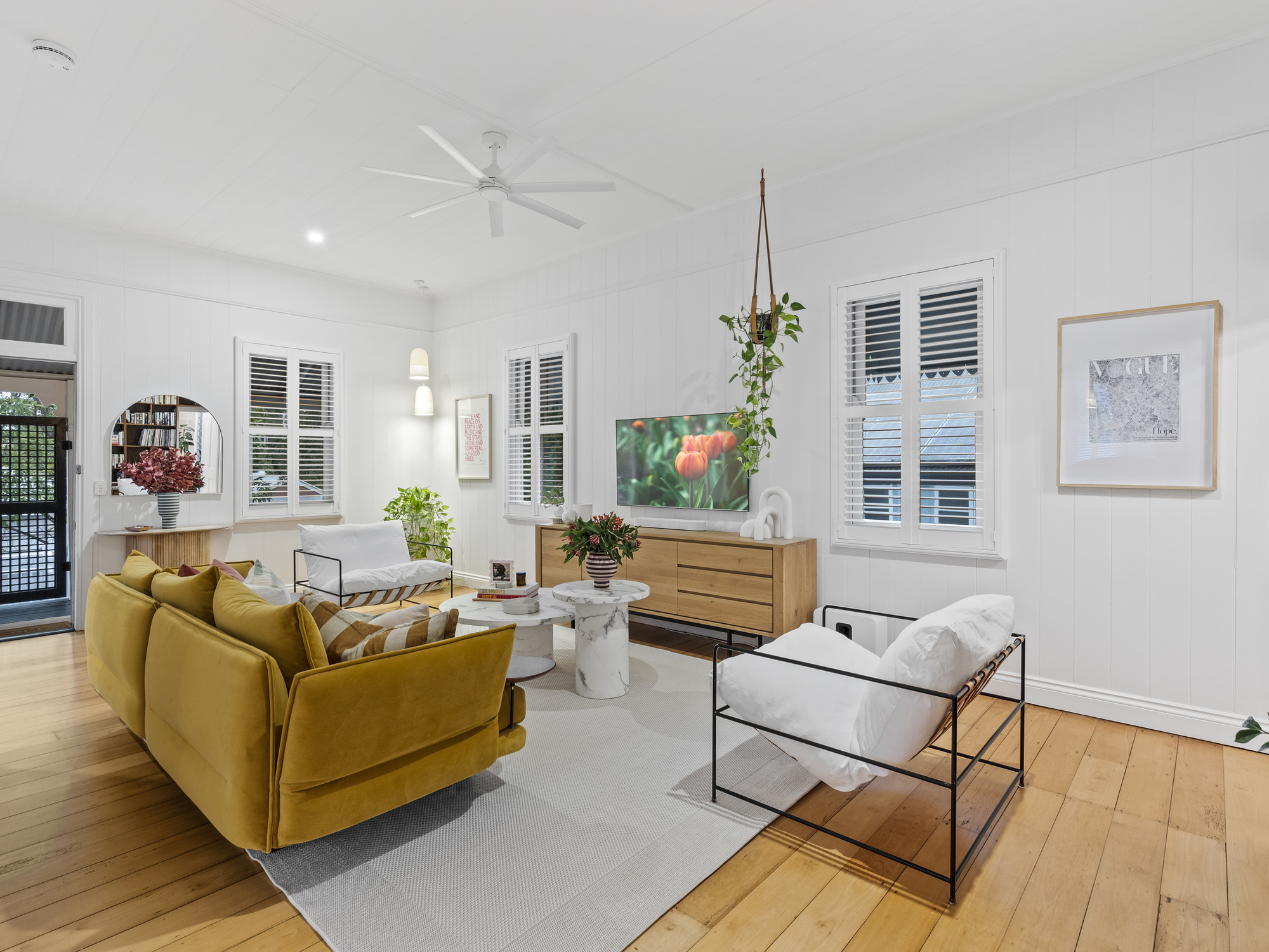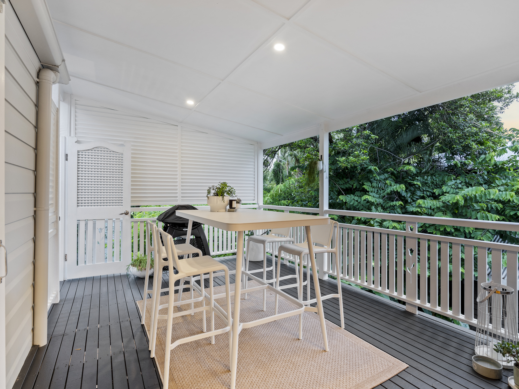 Behind its classic weatherboard façade this flawlessly presented interwar Queenslander blends heritage warmth with contemporary comfort across two thoughtfully renovated levels. Fully raised and built under, the residence offers rare flexibility with a generously proportioned fourth bedroom/retreat providing endless possibilities for a dual living option, private studio, cinema room or a home business space (STCA). Character design elements shine throughout, including wide timber flooring, ornate breezeways, high ceilings and VJ walls, all paired with the benefits of a flood-free block and beautifully landscaped low maintenance tropical surrounds.