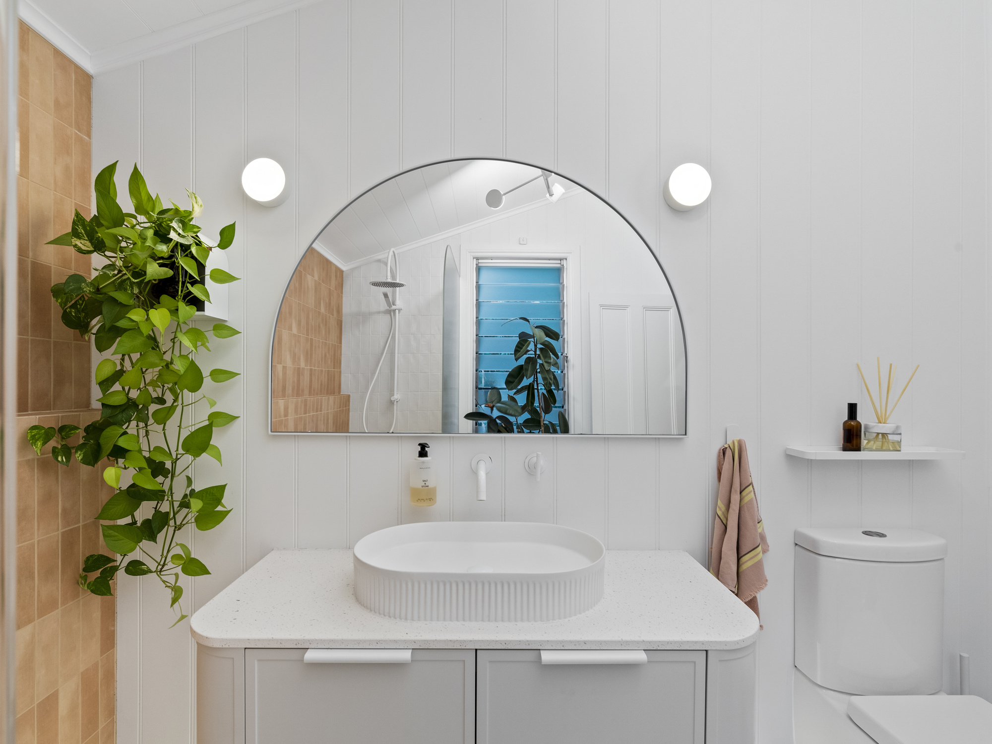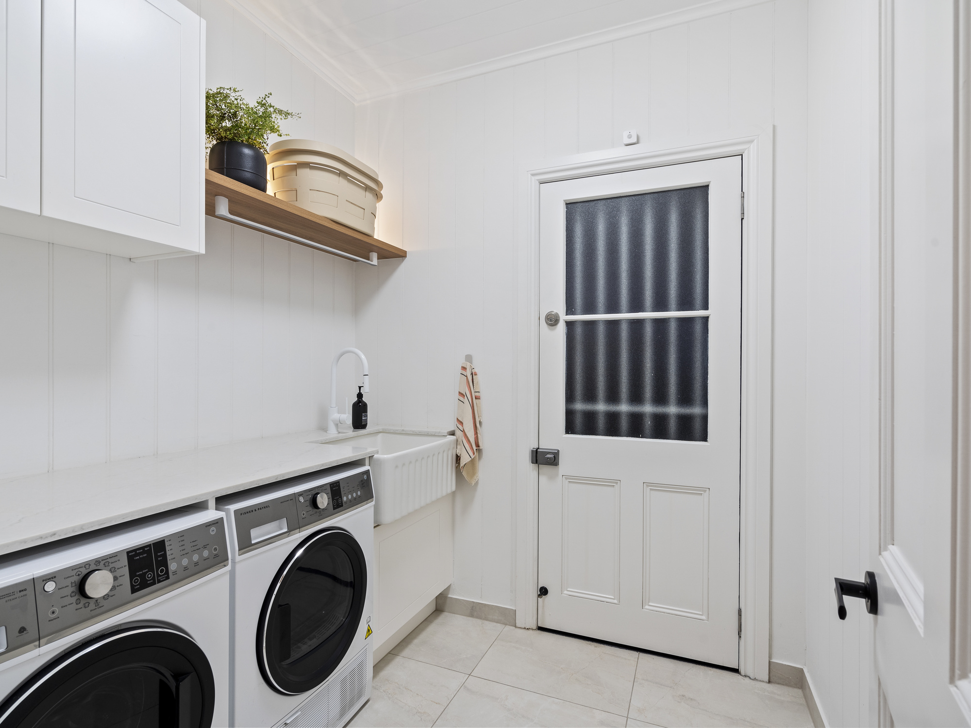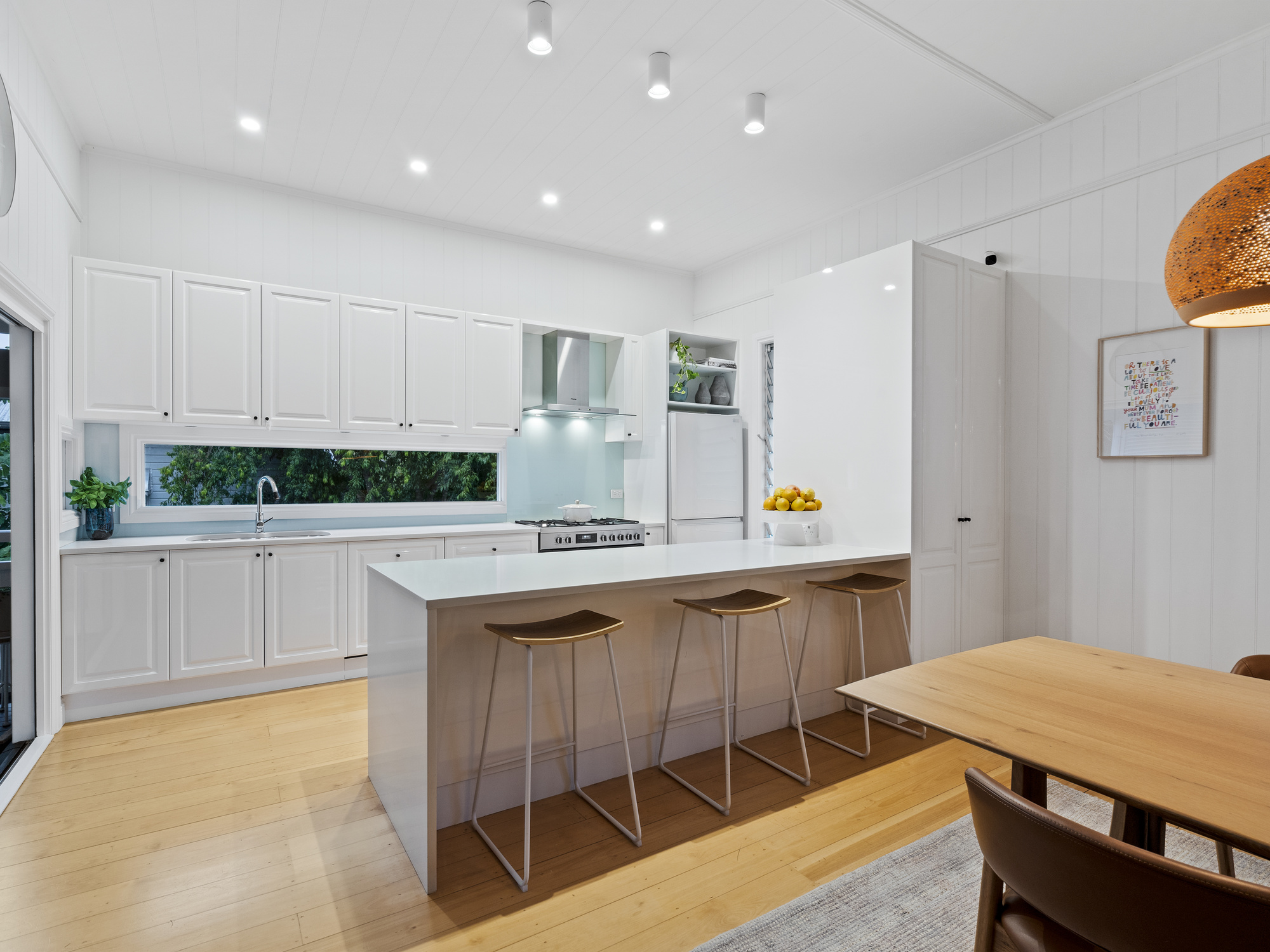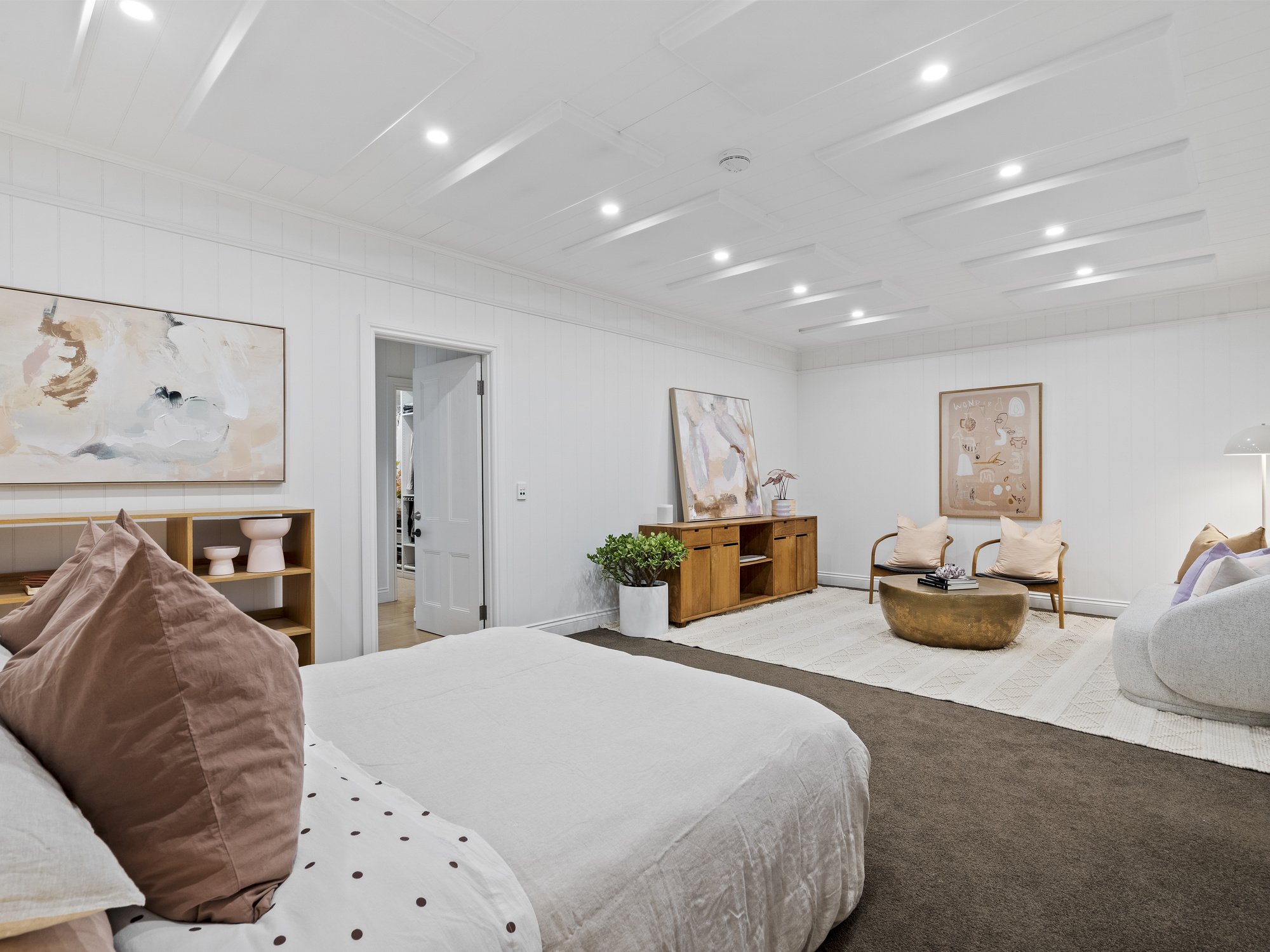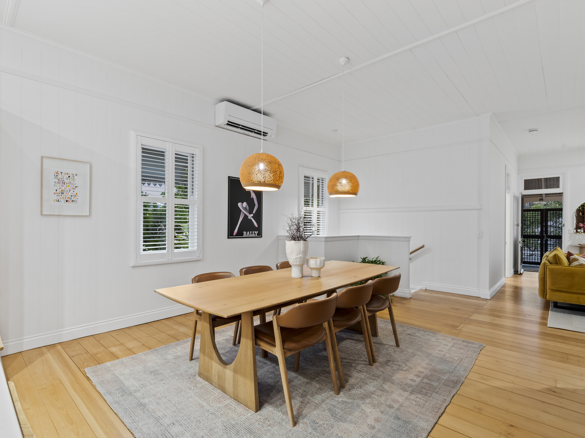 Behind its classic weatherboard façade this flawlessly presented interwar Queenslander blends heritage warmth with contemporary comfort across two thoughtfully renovated levels. Fully raised and built under, the residence offers rare flexibility with a generously proportioned fourth bedroom/retreat providing endless possibilities for a dual living option, private studio, cinema room or a home business space (STCA). Character design elements shine throughout, including wide timber flooring, ornate breezeways, high ceilings and VJ walls, all paired with the benefits of a flood-free block and beautifully landscaped low maintenance tropical surrounds.