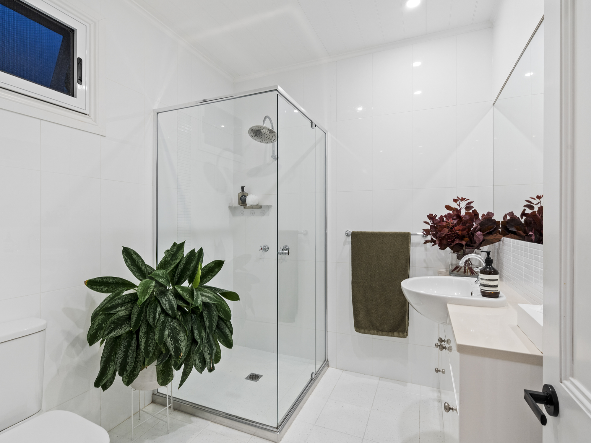 The front verandah leads to a bright open-plan living and dining zone anchored by a striking custom-built bookcase. The traditionally styled kitchen has a wealth of storage and is superbly appointed with quality appliances including a brand new extra wide freestanding oven with gas cooktop. Step through wide bifold doors to a side deck with a calming leafy outlook – perfect for relaxing or gathering with guests. The downstairs master suite features a walk-through robe, stylish ensuite and direct access to the private deck and gardens. New privacy screens to both upper and lower decks, a 6-camera security system and secure off street parking for 4 vehicles ensure both peace and practicality.
