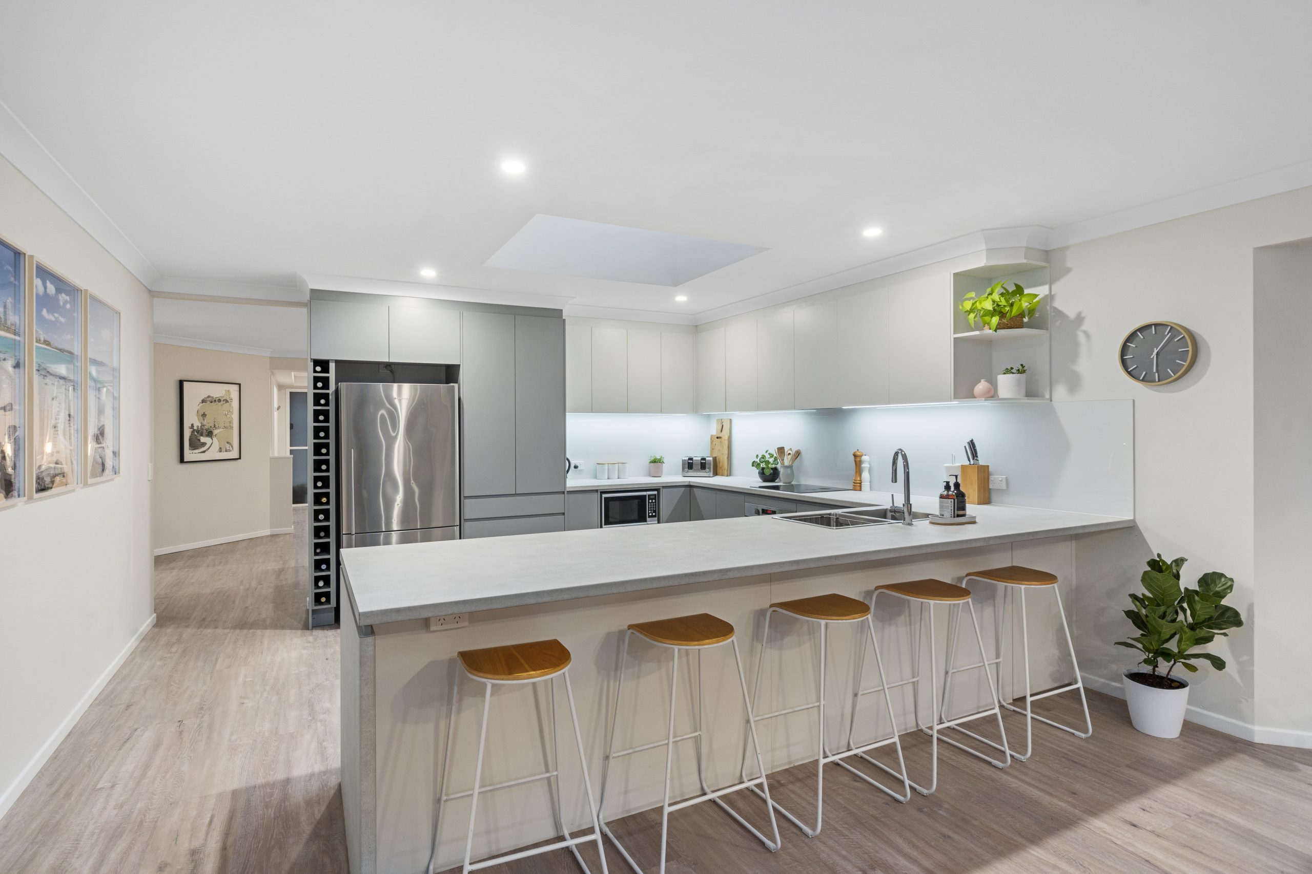 With plenty of natural light and a spacious, open planned layout, you’ll love coming home to this peaceful and inviting oasis. Contributing to the light filled spaces internally is the stunning new floorboards, bright LED light fixtures & skylights found throughout the home.