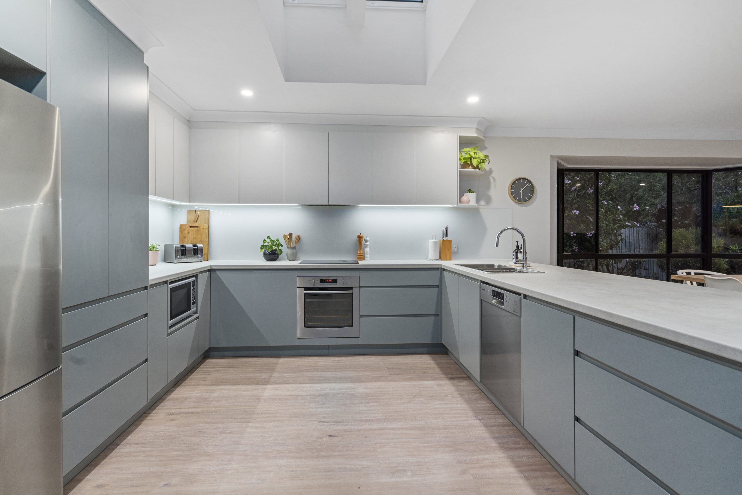 The exceptional kitchen space has been recently updated, incorporating integrated stainless-steel appliances, sleek cabinetry, benchtops and splashbacks, whilst ensuring that there will be no shortage of storage or bench space.