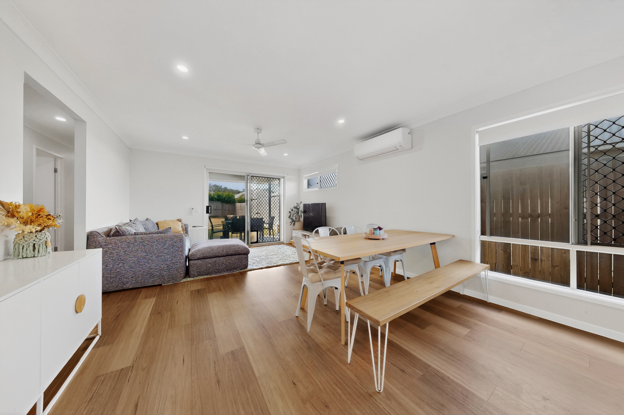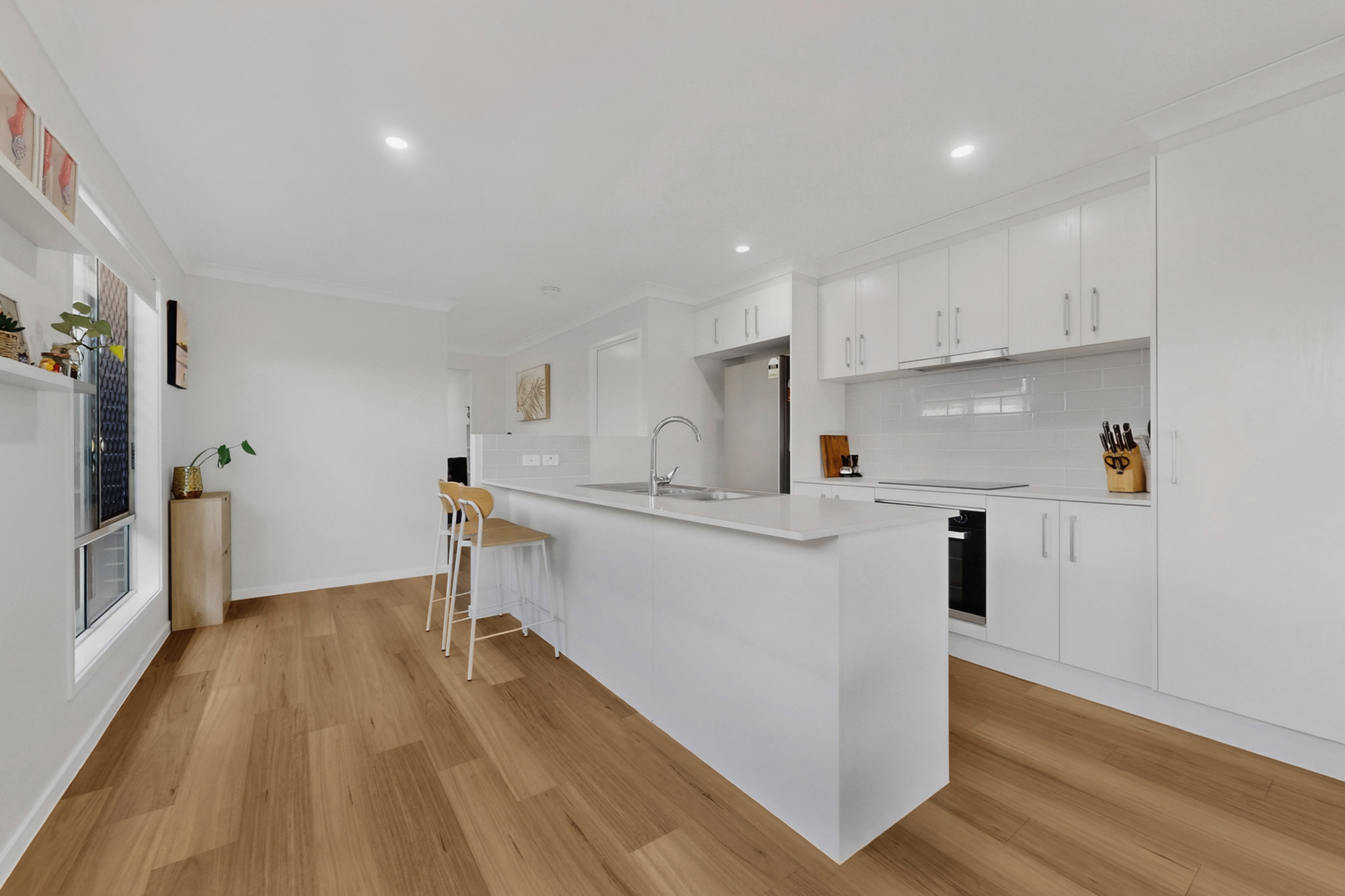 Step inside to discover a light-filled open-plan living and dining area, complete with air conditioning to keep you comfortable year-round. The well-appointed kitchen is designed for everyday ease, featuring a sleek glass electric cooktop, underbench oven, and dishwasher-perfect for effortless meal preparation and entertaining.