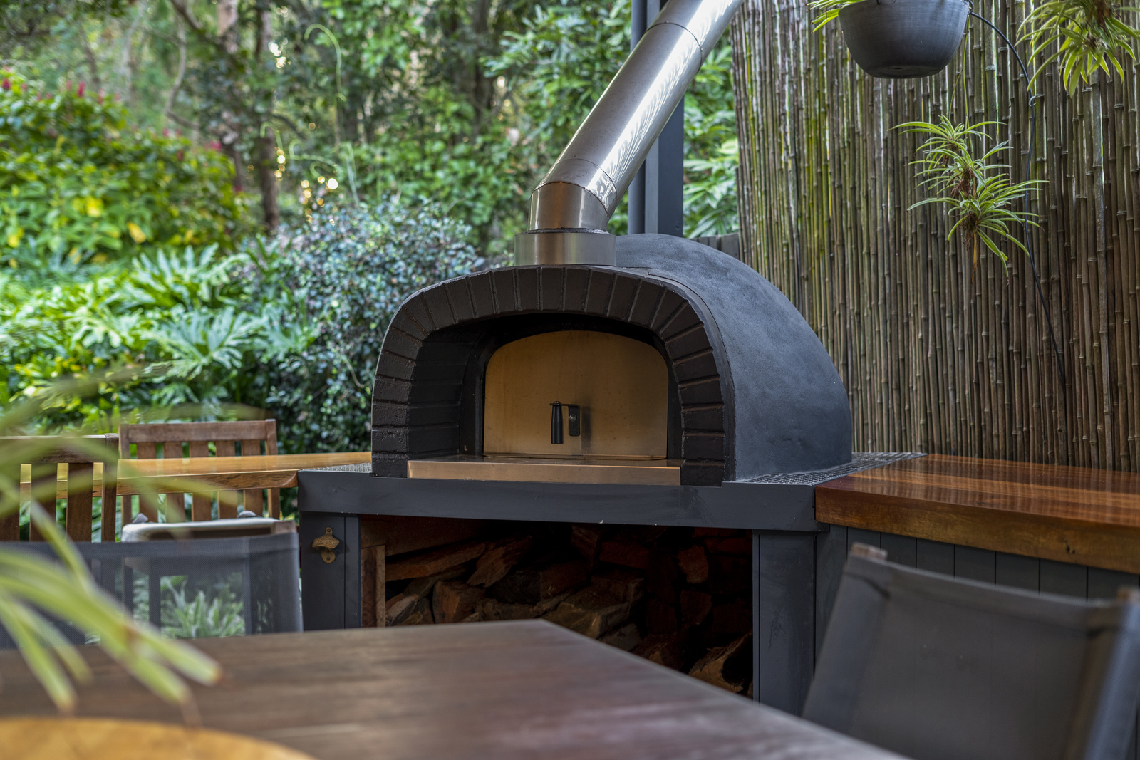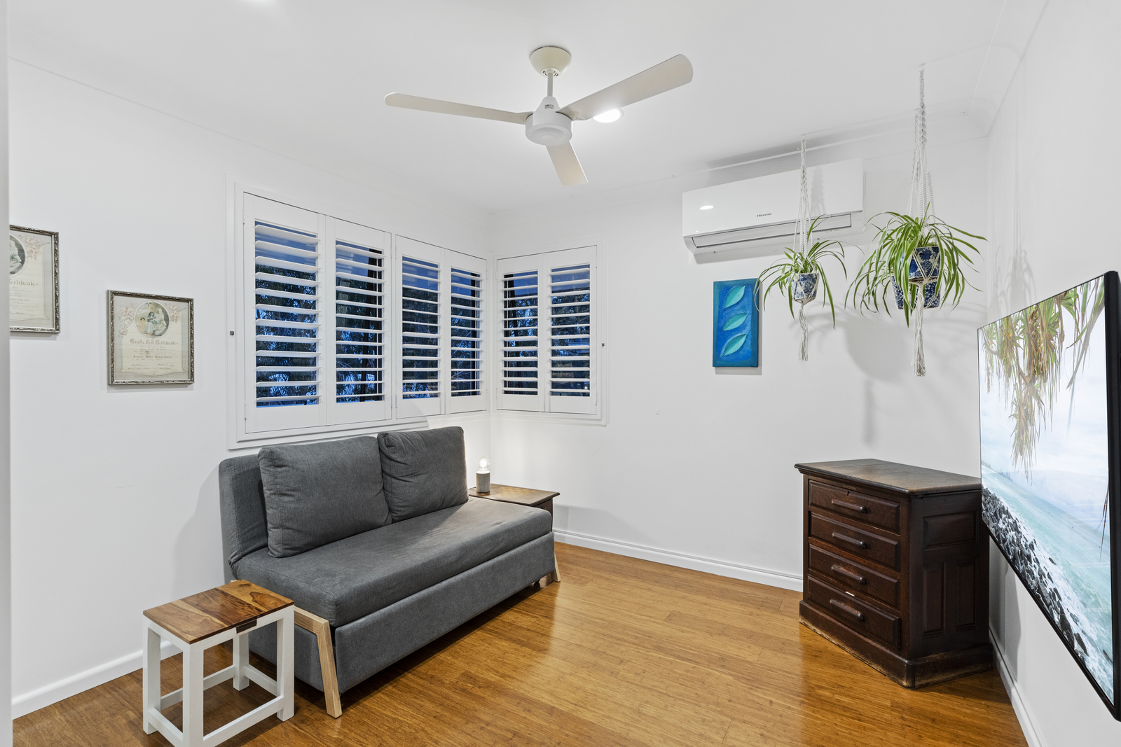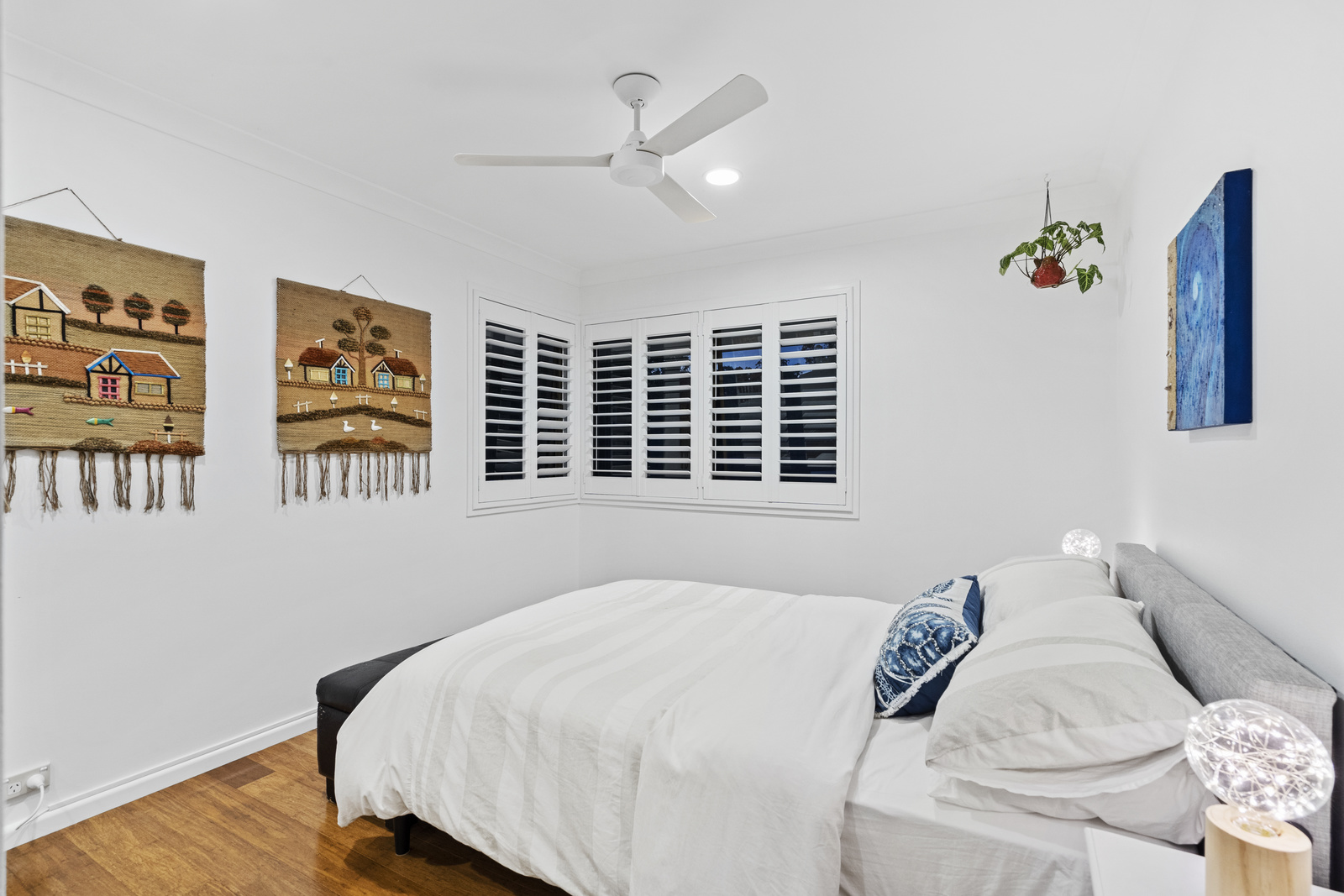 Throughout the home, plantation shutters and louvre windows invite soft breezes and dappled light, adding a touch of timeless style and enhancing the sense of connection with the gardens outside.