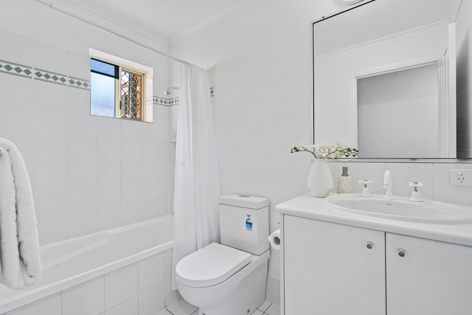 Three bedrooms complete the layout of this apartment – the generous master suite is spacious and inviting featuring a walk-in robe private en-suite and air conditioning for comfort. Of the two additional bedrooms, one features air conditioning while both have built-in robes and ceiling fans and are serviced by the family bathroom.