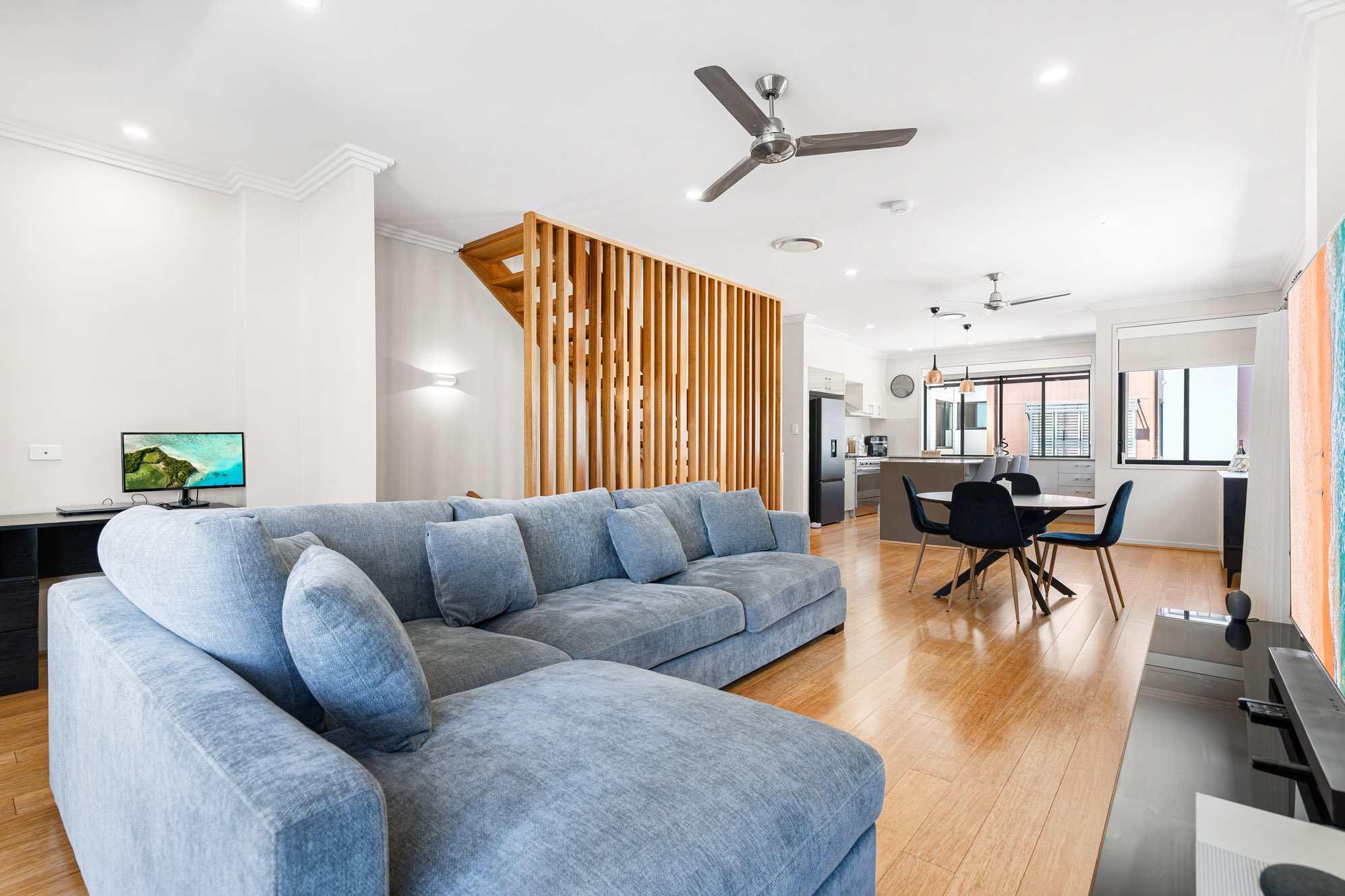 • Expansive open plan living and dining zone with high-quality flooring, designer lighting and a dedicated study nook