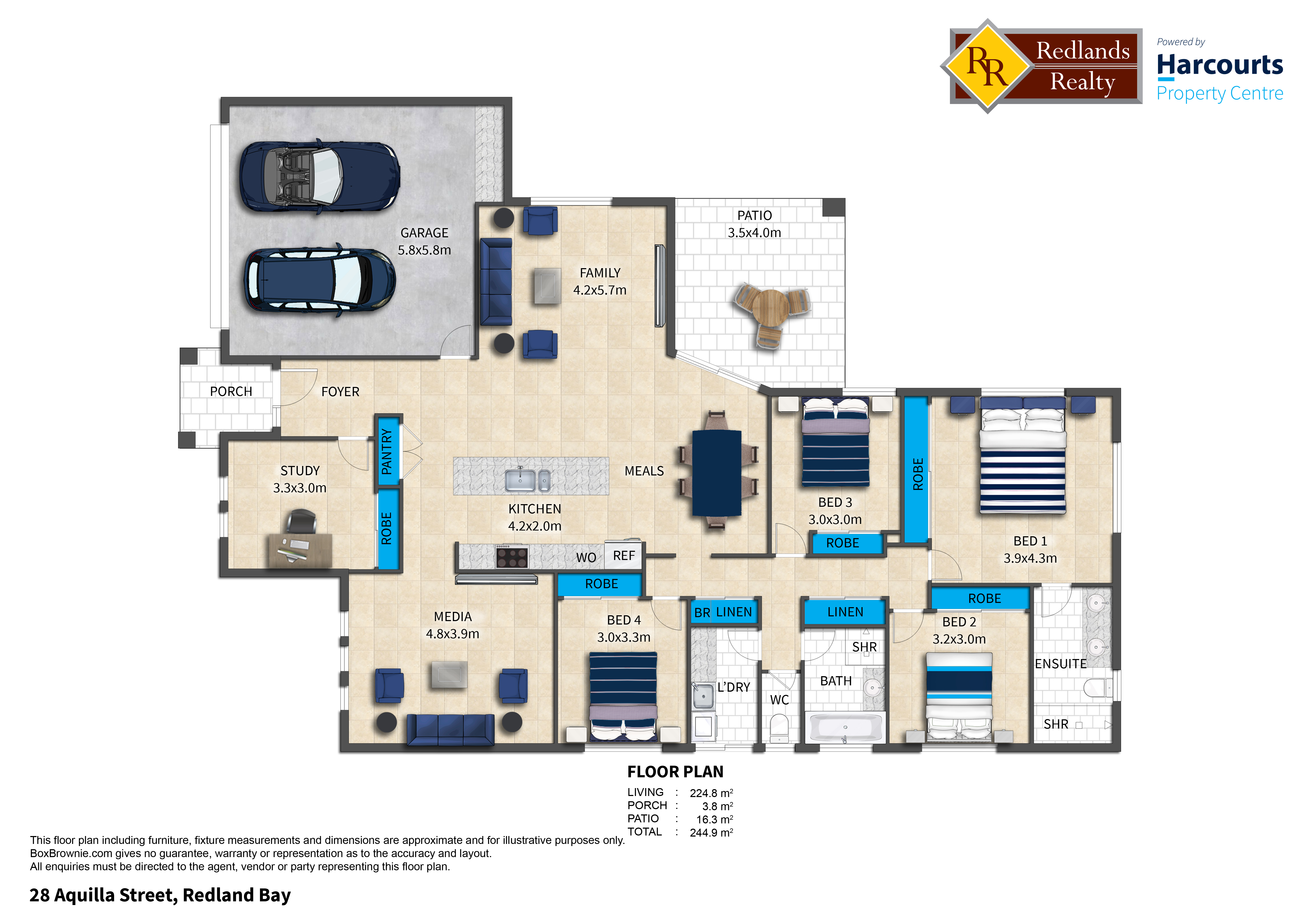 Featuring open planned informal living which open out onto a covered outdoor area plus a seperate media room, the home offers plenty of space for the family to get together or get away from each other. The home boasts ducted a/c, allowing you to escape the summer heat.