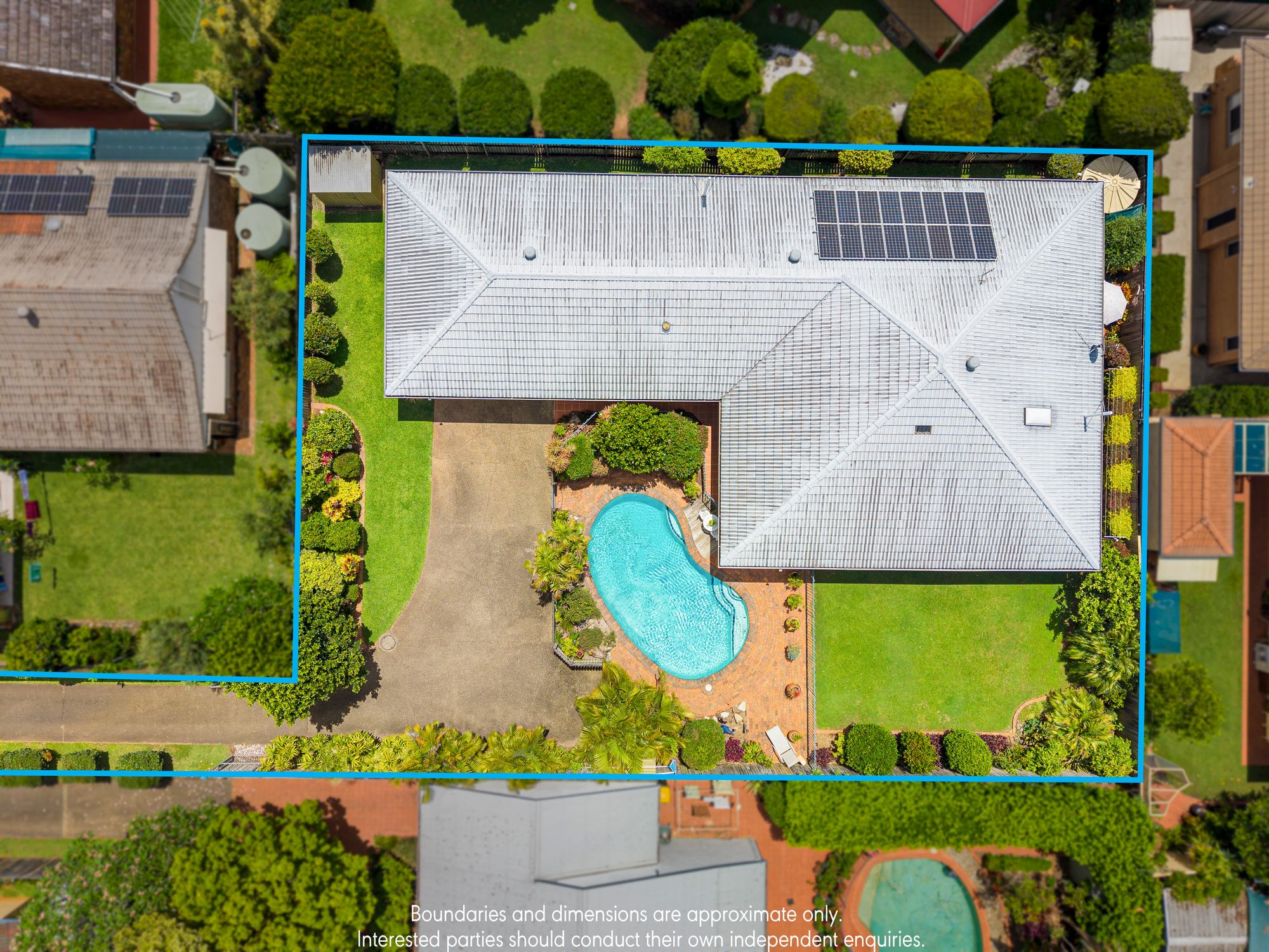 • New electric hot water system, Solar electricity system with 16-panels of 2.5 KW, 1000-litre water tank, and a garden shed.