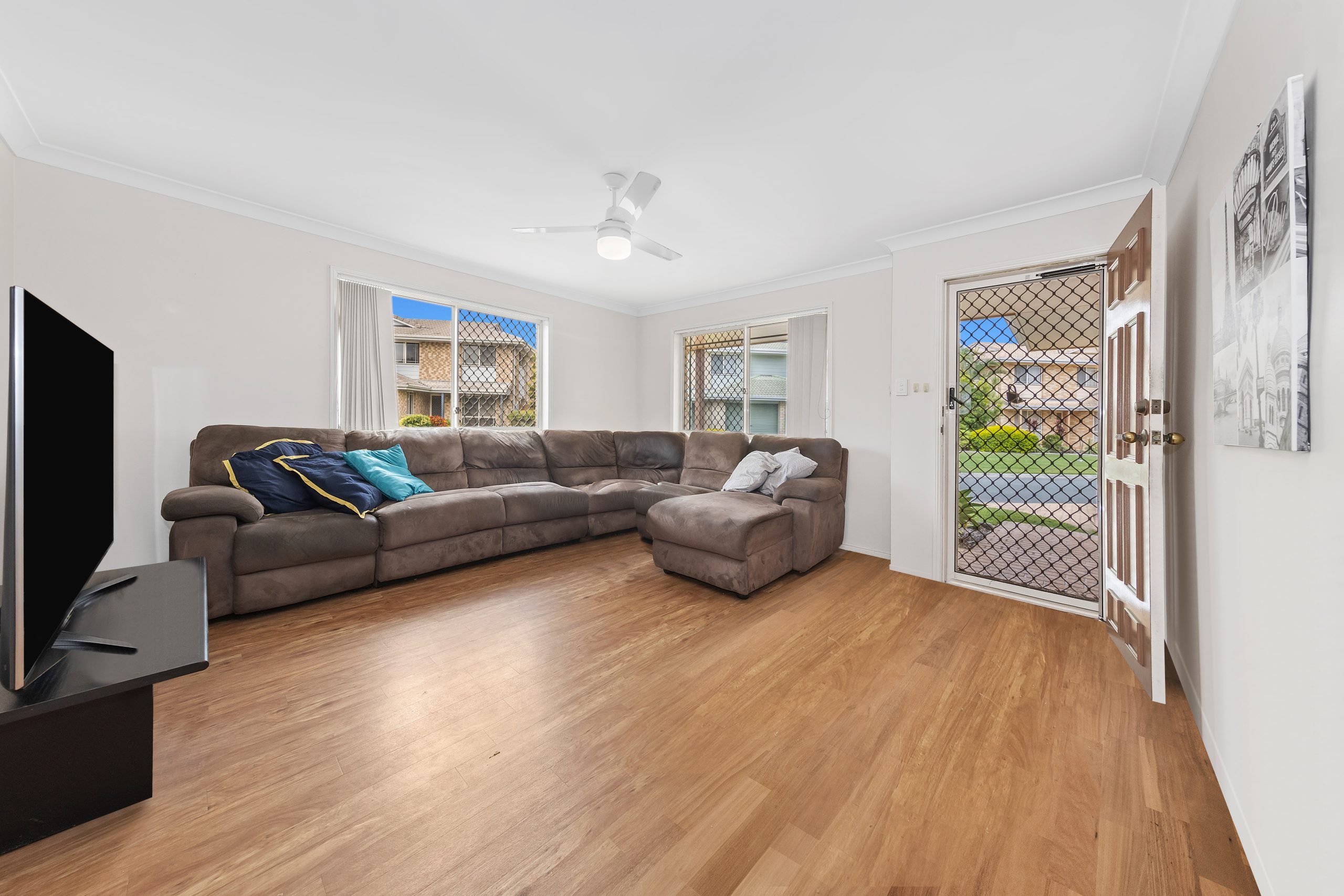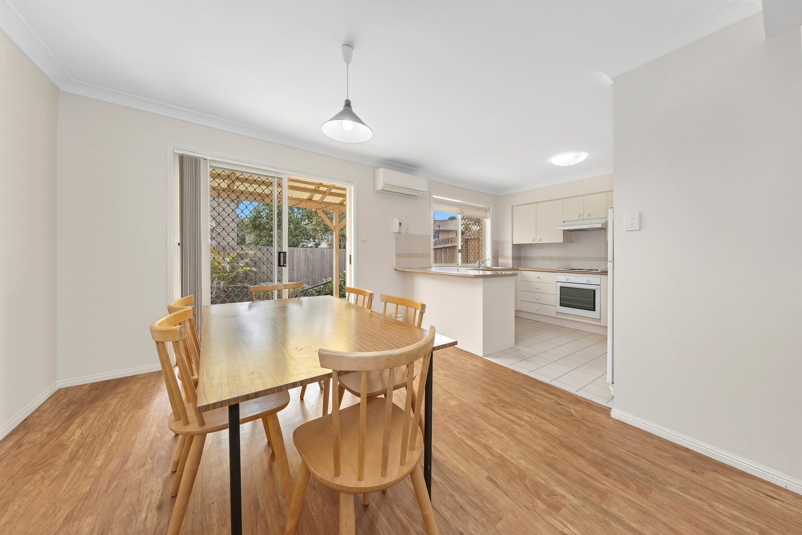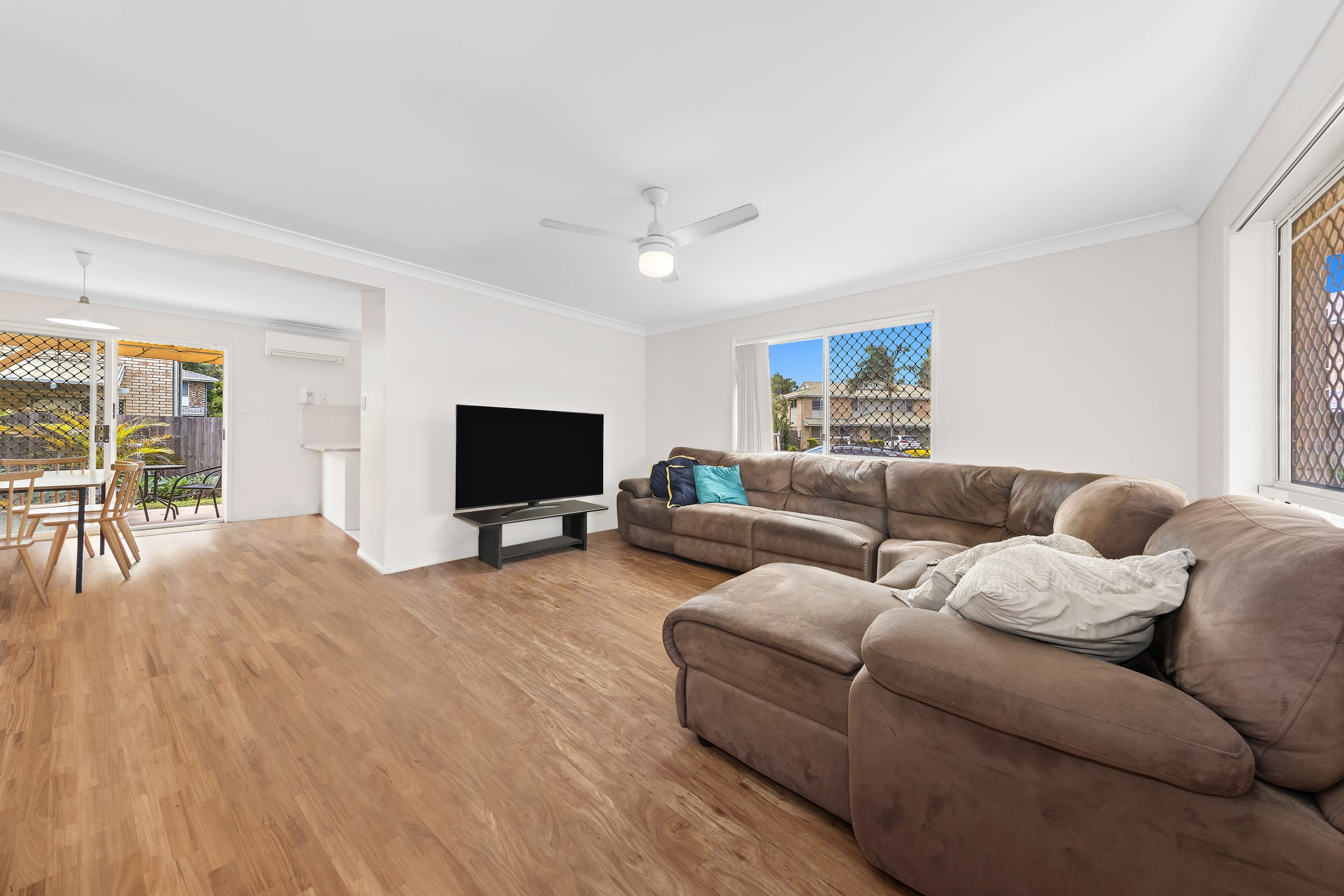 Step inside and be greeted by a very spacious open plan living dining area covered by low maintenance wood-panelled flooring which creates an inviting ambiance.