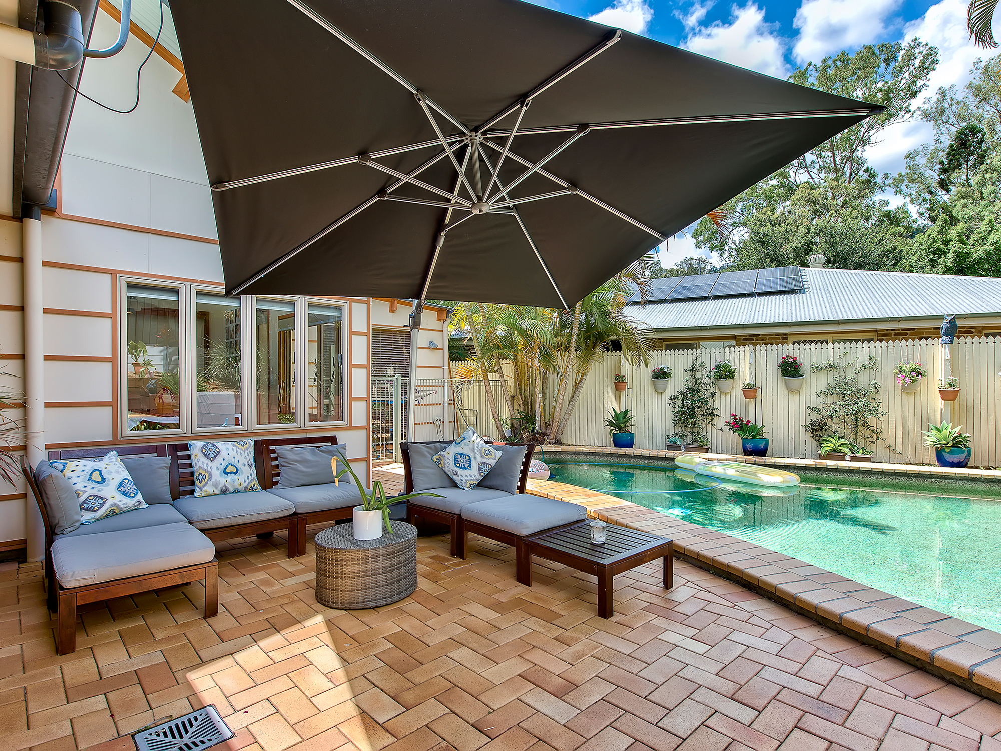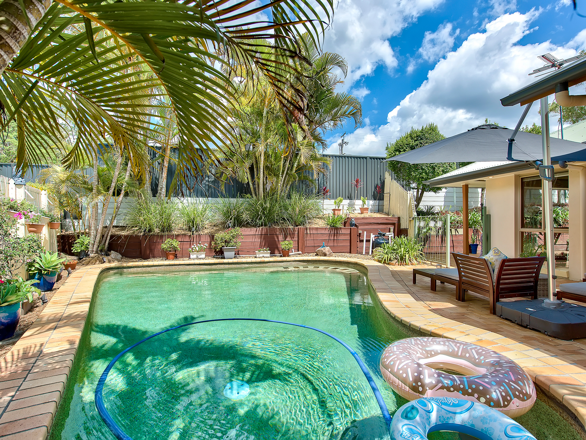 • Sparkling inground swimming pool with landscaped surrounds