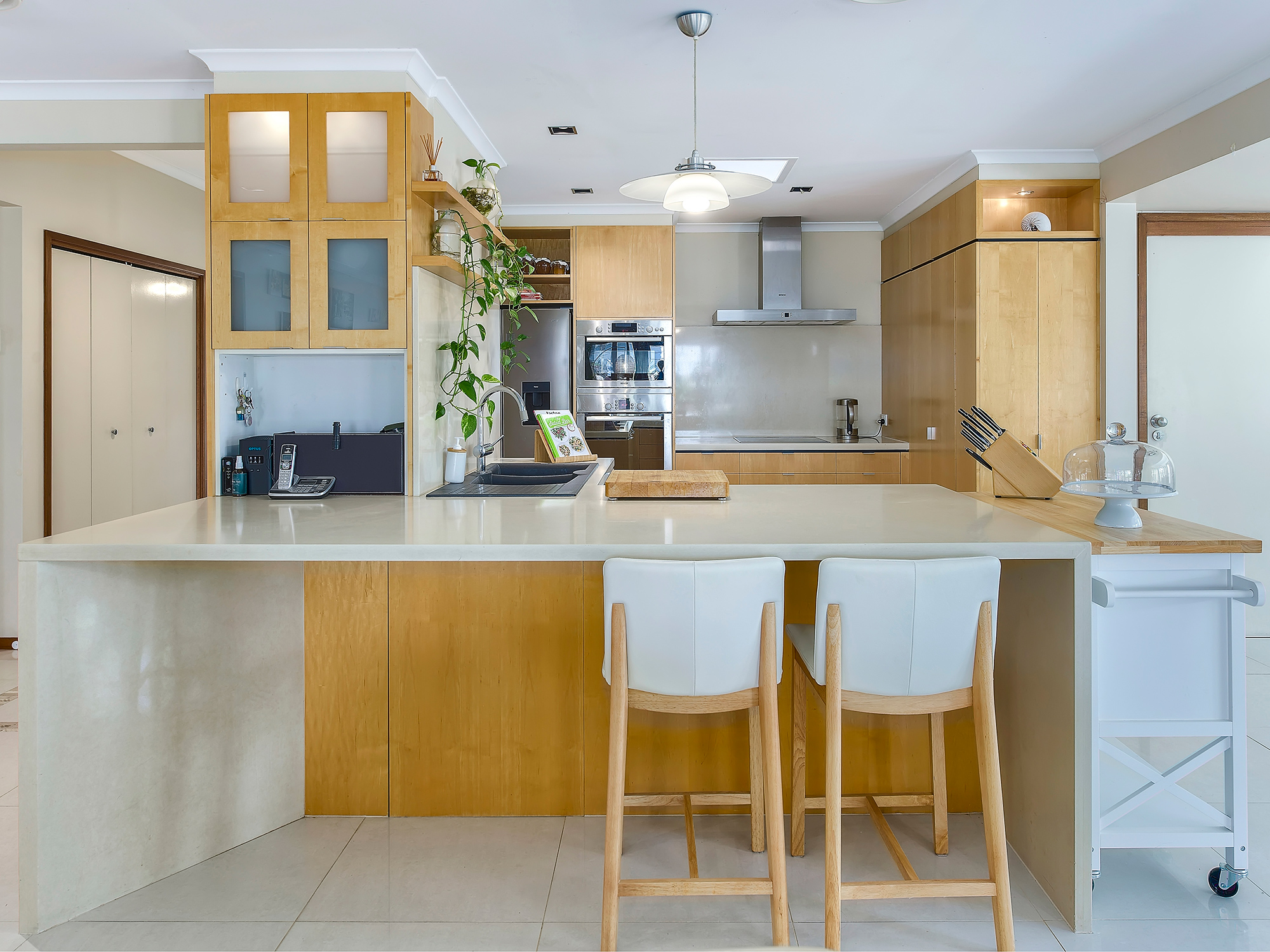 • Modern kitchen with stone benchtops, abundant storage, and integrated dishwasher