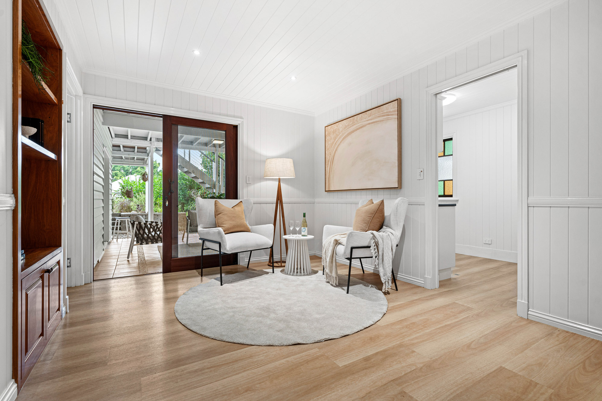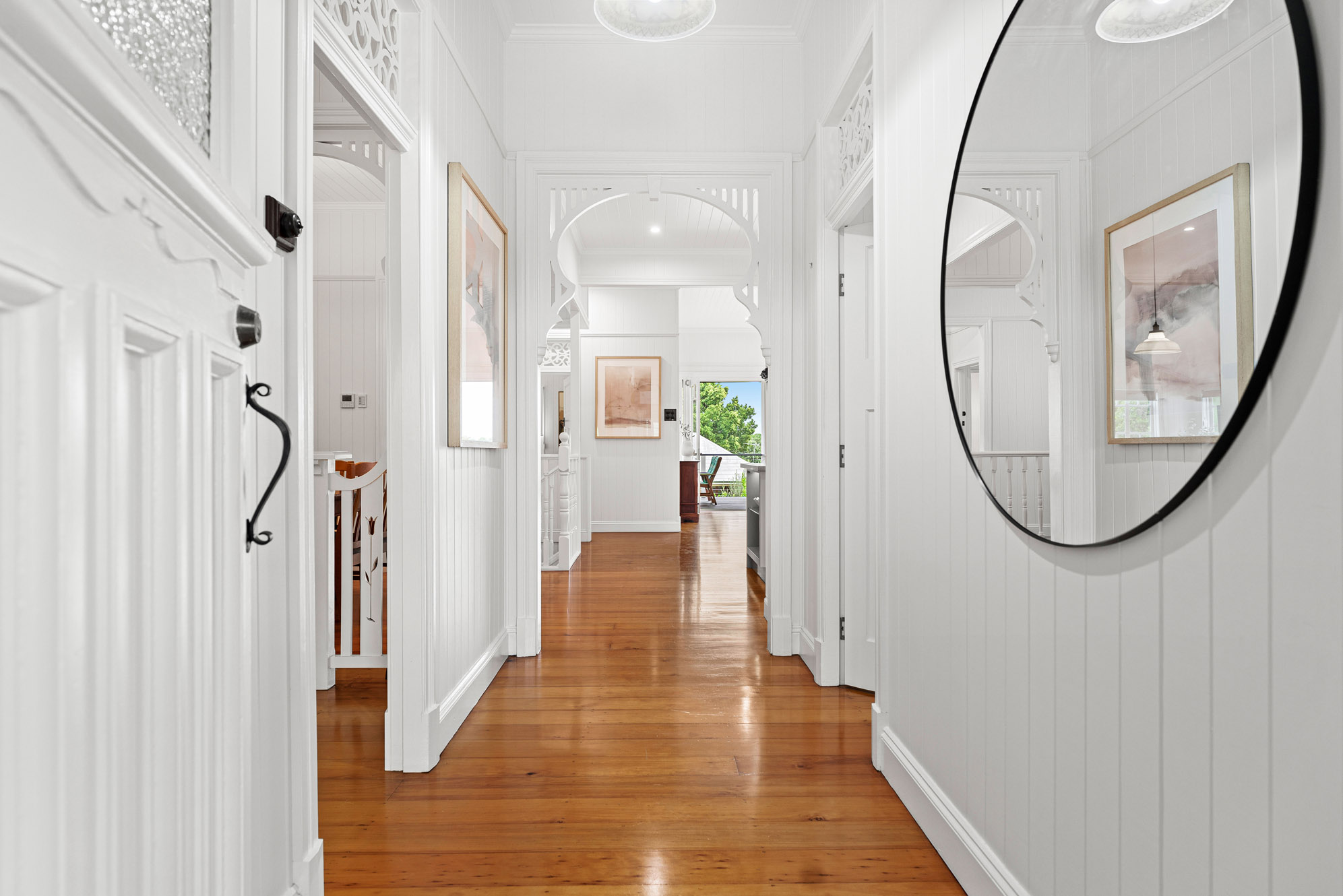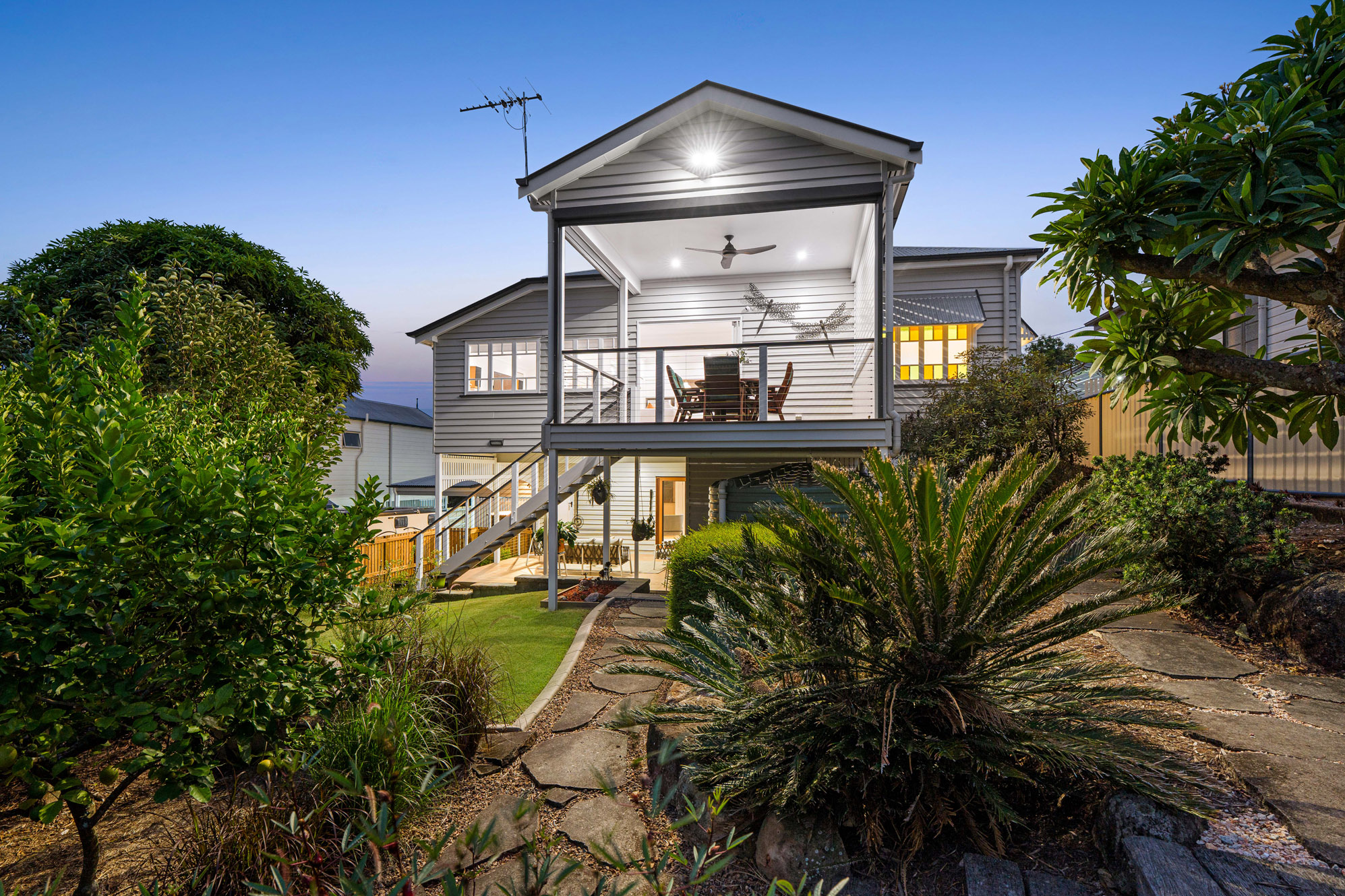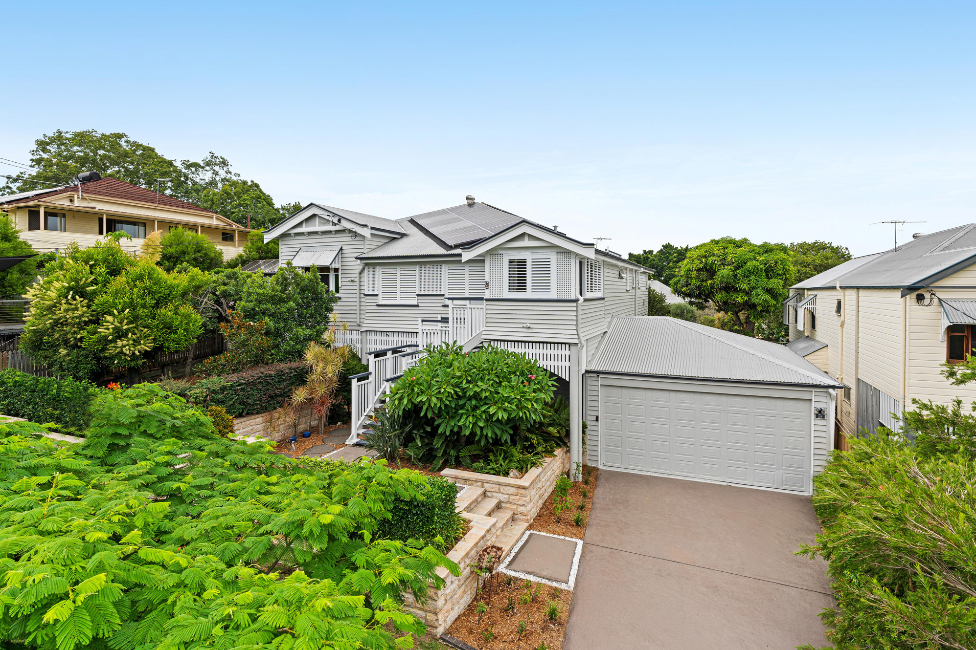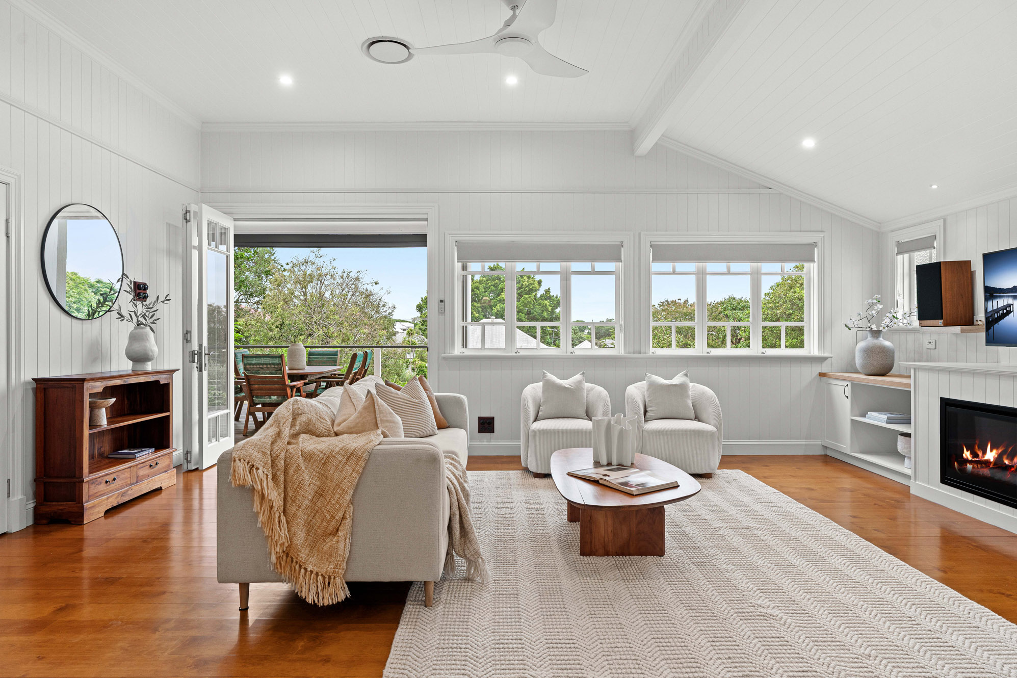 • Restored 1920s legacy featuring VJ walls, ornate breezeways, and French doors leading to a front deck with commanding views over the city, The Gabba, and Mt Coot-tha